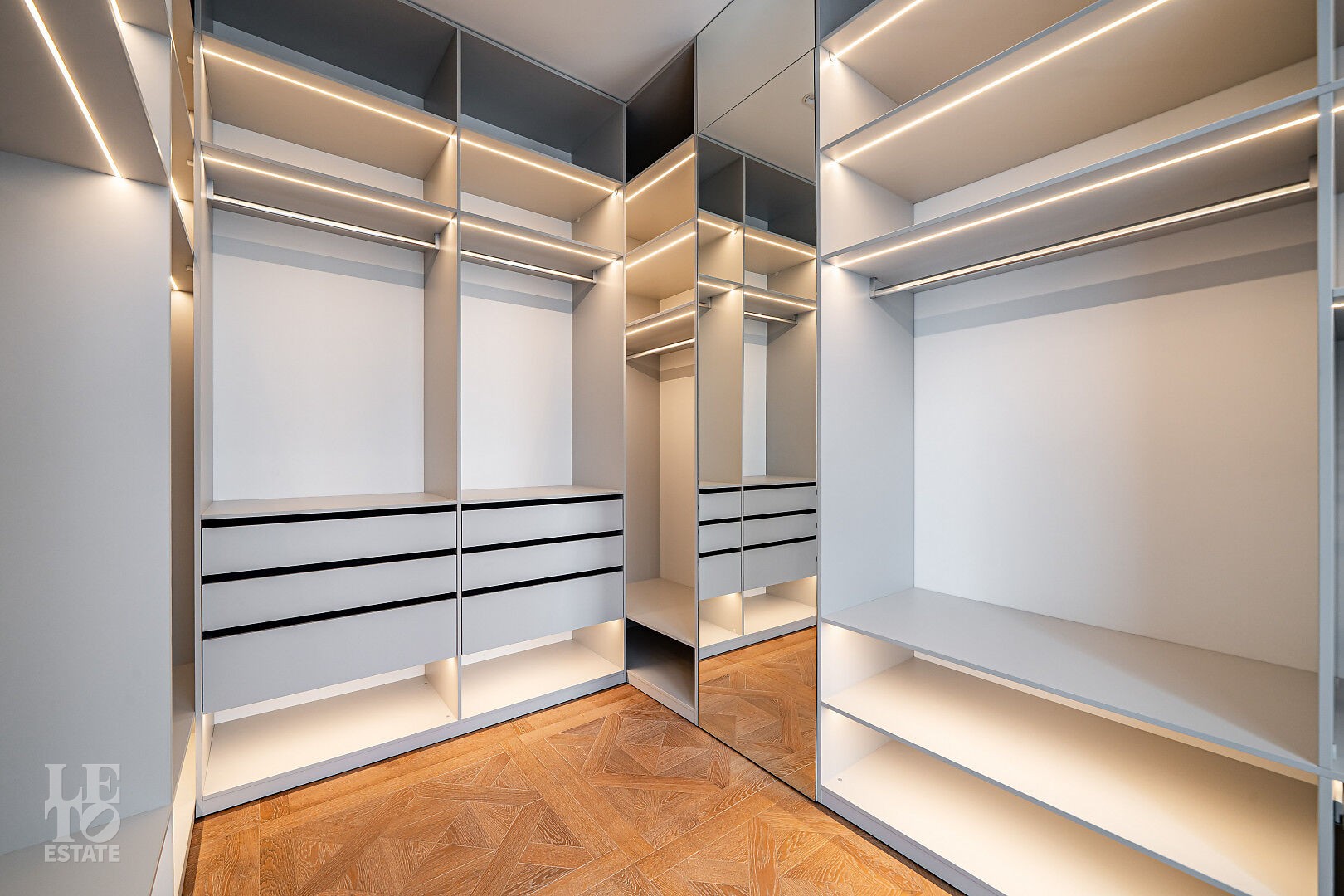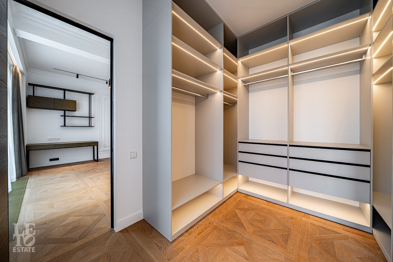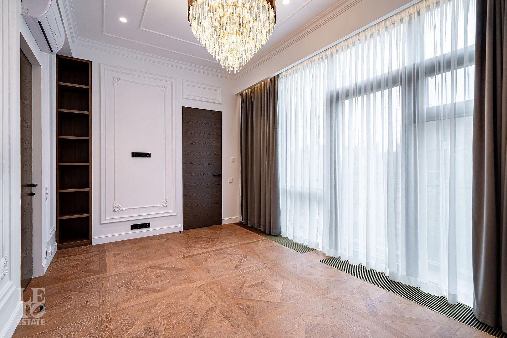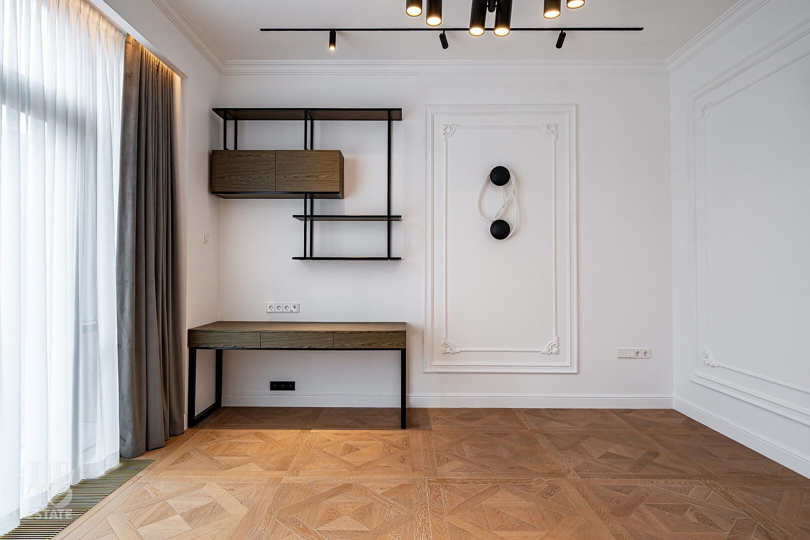создающий атмосферу уюта. Также здесь уложена паркетная доска, добавляющая тепла и элегантности пространству.