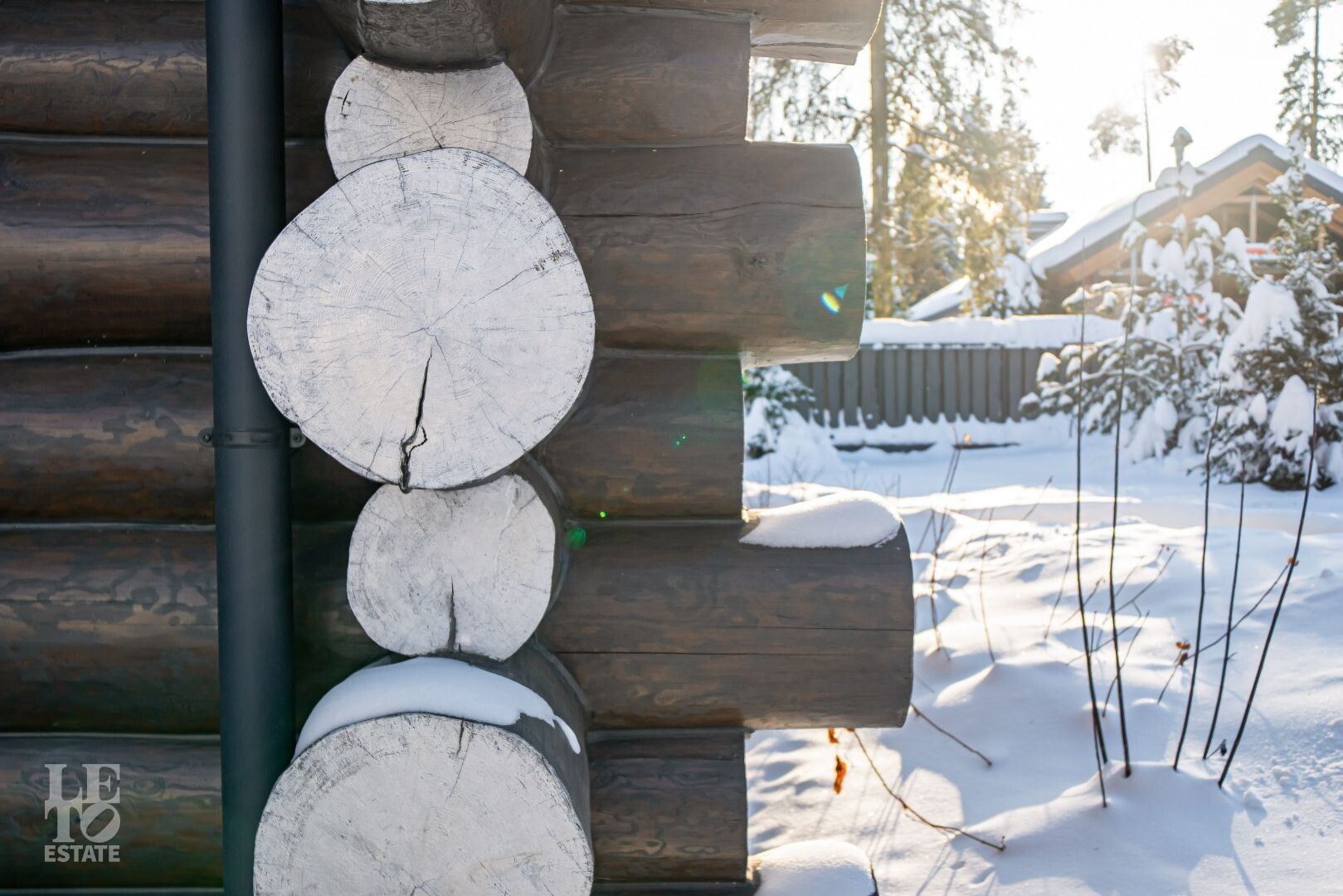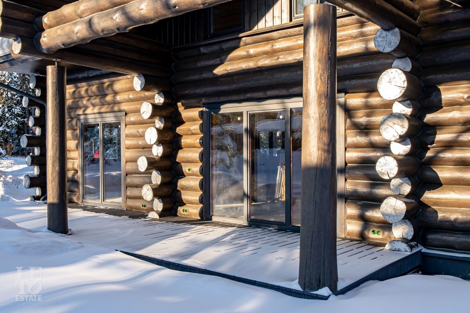 Дом возведён на свайно-ростверковом фундаменте с использованием качественных материалов, после сборки дом устоялся согласно правилам строительства домов из бревна. Для обработки и пропитки бревна использовались премиальные масла- Osmo, GNature. Бревно архангельской сосны ещё называют "железным деревом" за то, что оно имеет наиболее крепкую структуру и высокую эластичность, что обеспечивает этой древесине прочность и долговечность.