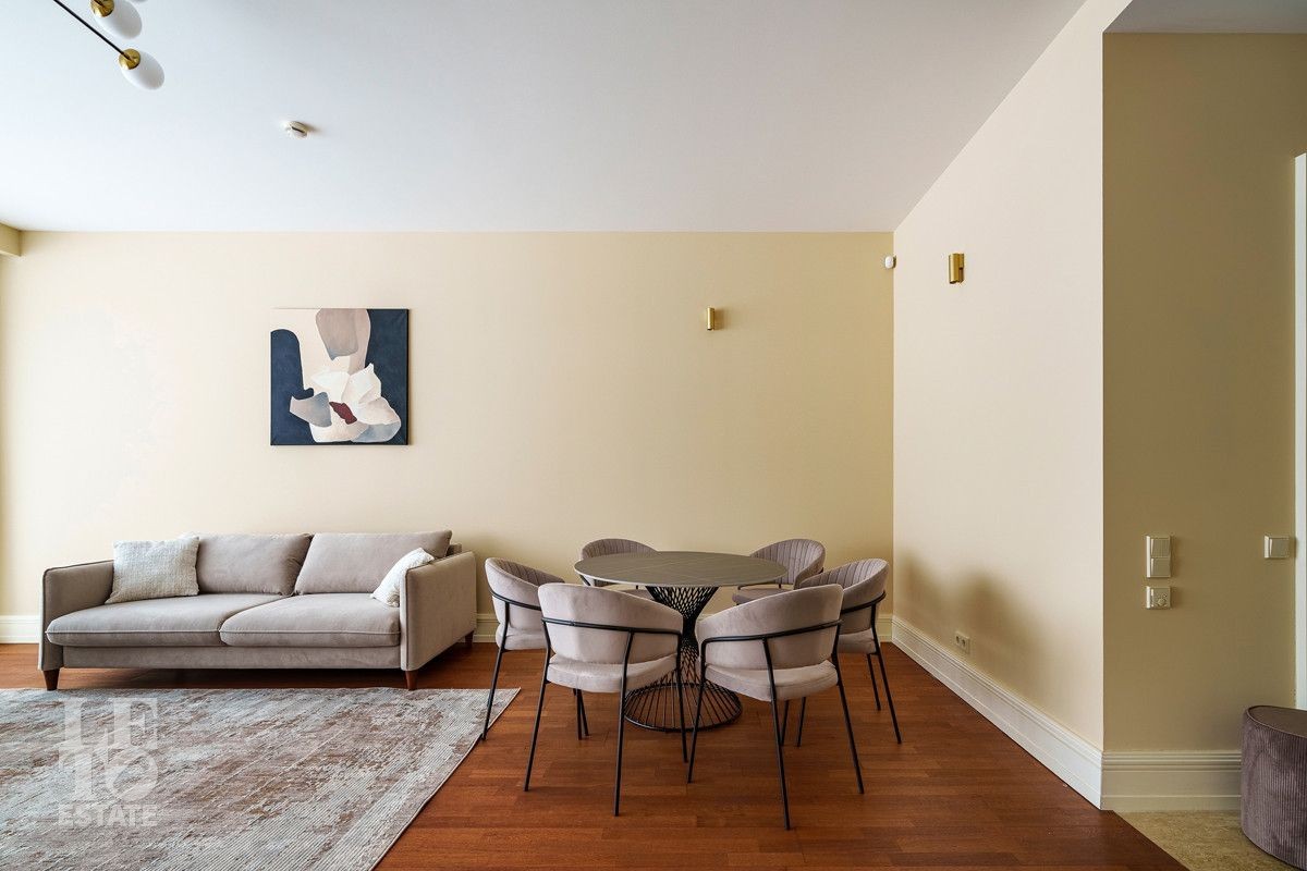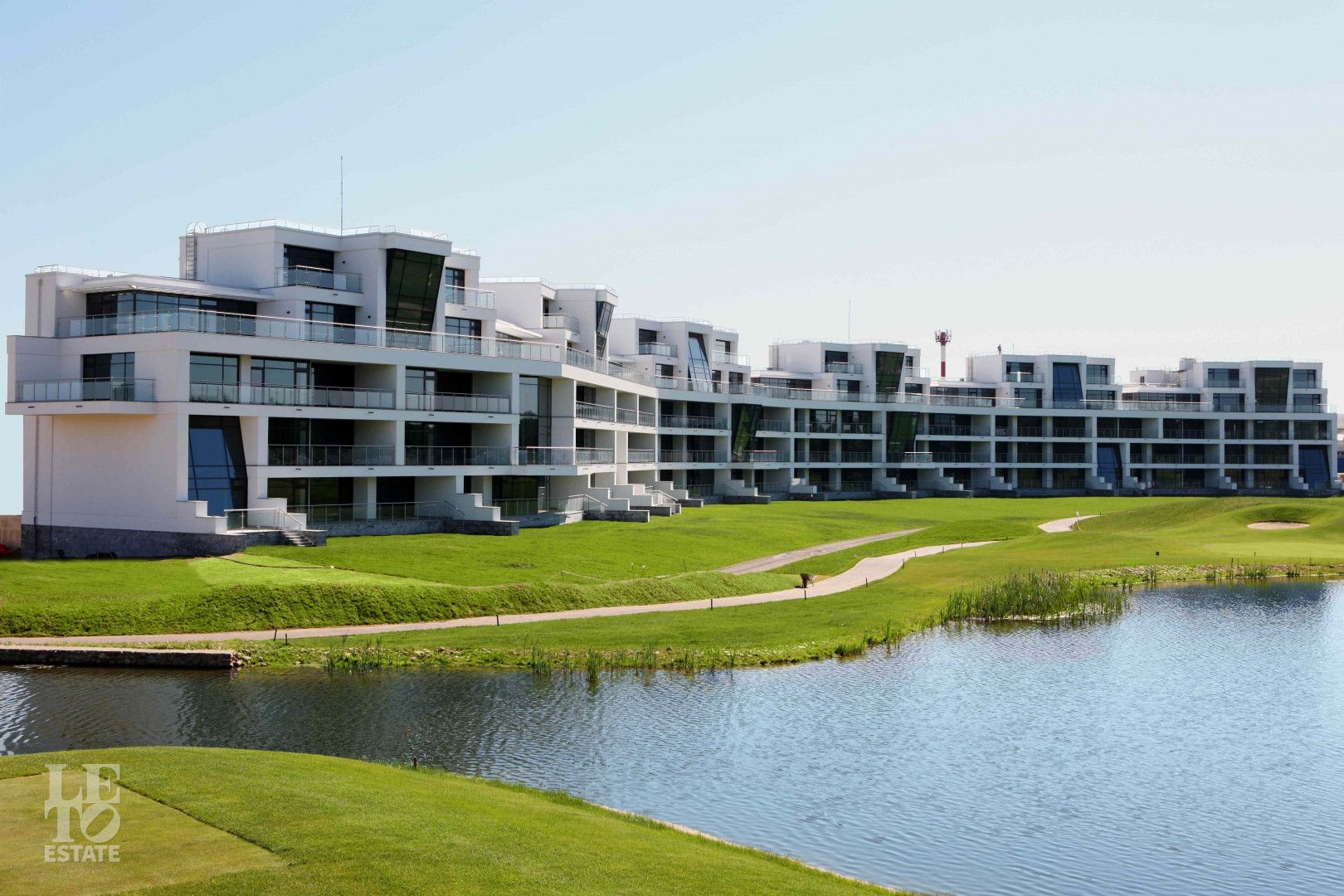 Квартира площадью 88.4 кв.м. с просторной террасой 25 кв.м., расположена на первом этаже пятиэтажного дома, все окна которого обращены в сторону красивого поля для игры в гольф. В стоимость входит парковочное место на подземной автостоянке. В квартире выполнен дизайнерский ремонт с использованием дорогих отделочных материалов. Квартира продается полностью с мебелью и техникой.