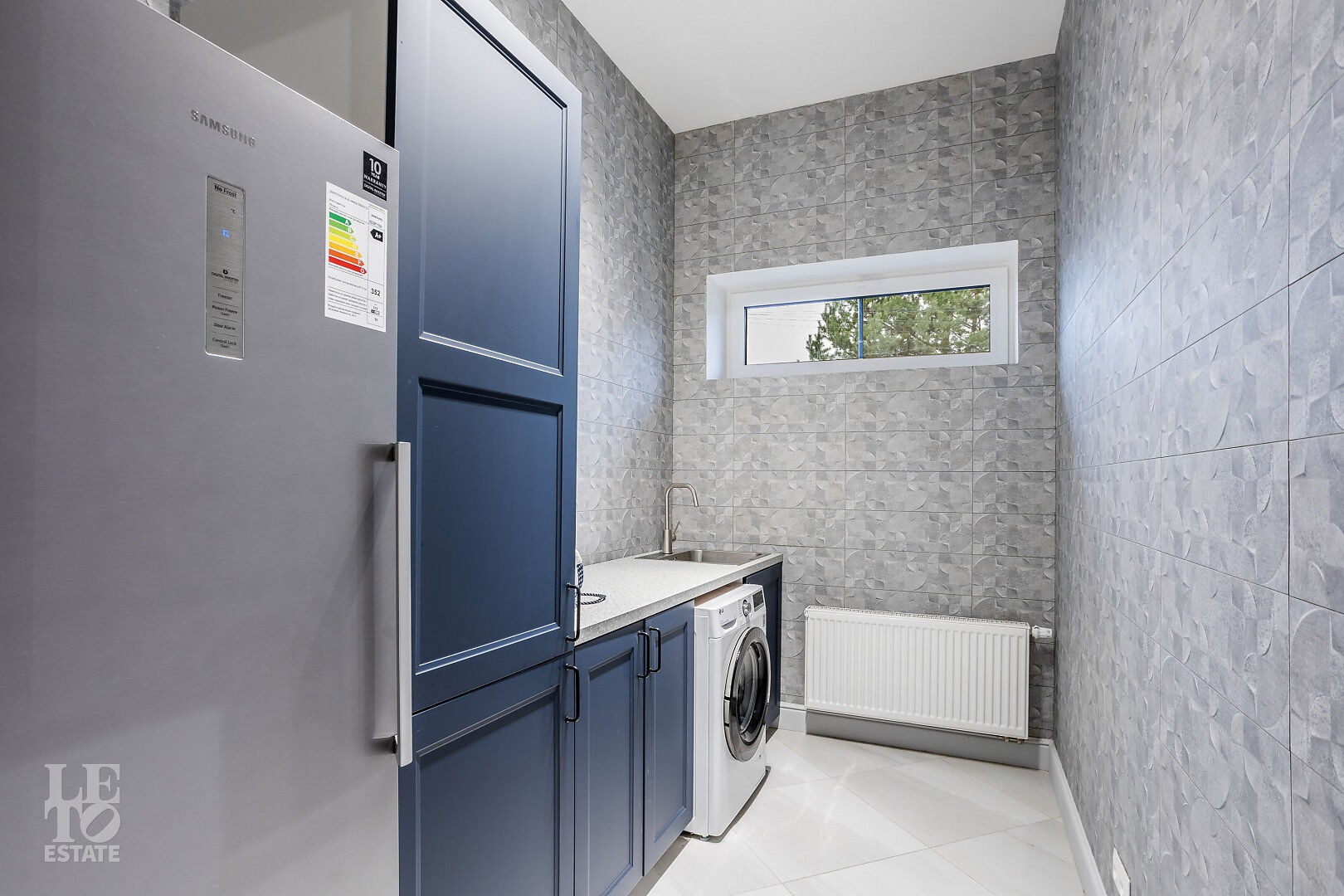 Есть все необходимое для постоянного проживания. Вся мебель остается. Центральные коммуникации - электричество. Газ по границе участка. Канализация - септик Топас. Водоснабжение - скважина 24 метра. Организована котельная, установлена водоочистка и водоподготовка, видеонаблюдение и домофон.