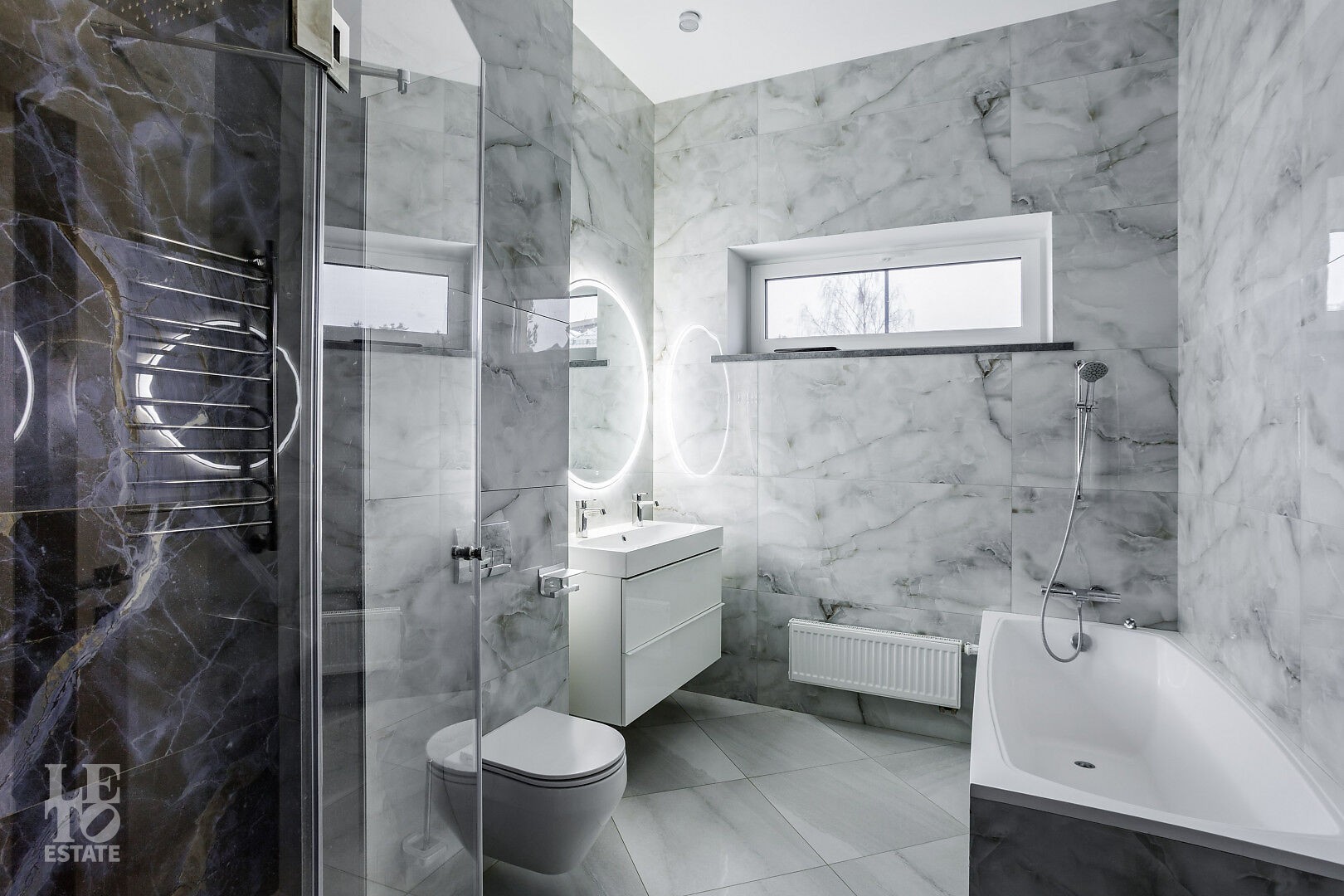 По дому разведены водяные теплые полы. Установлено остекление GEАLAN.