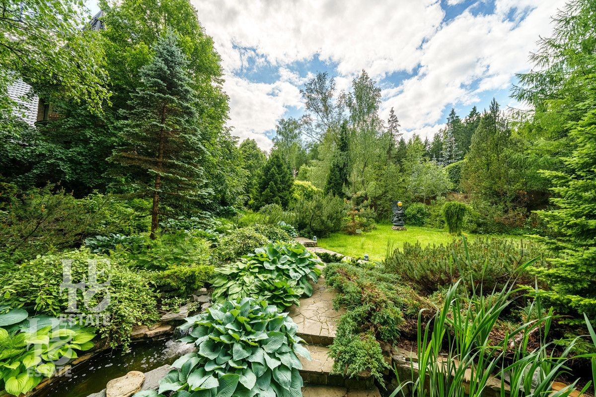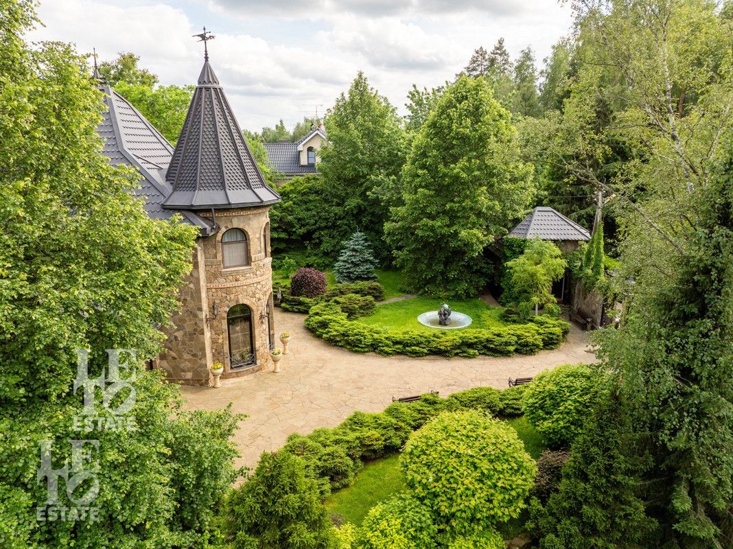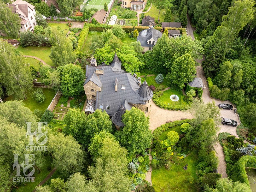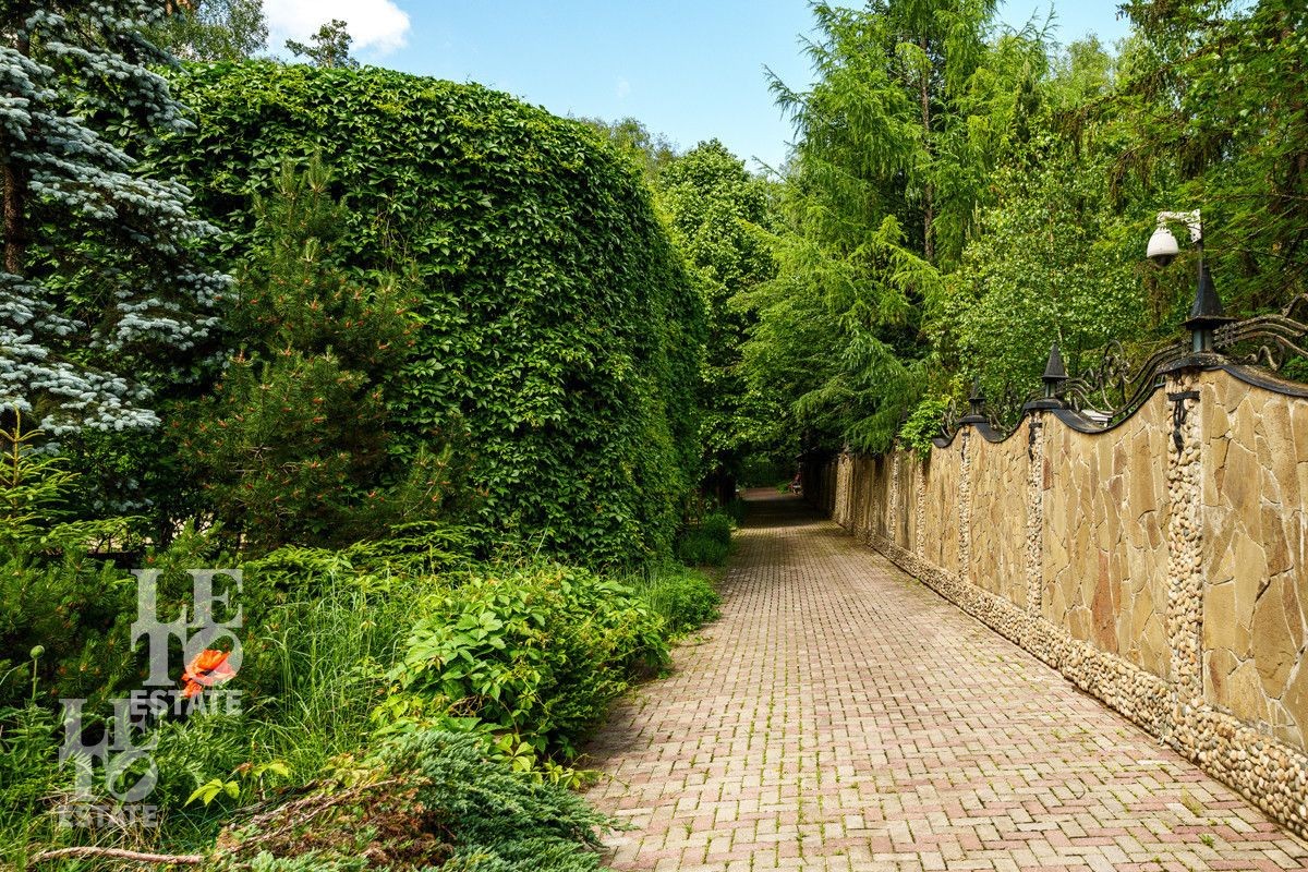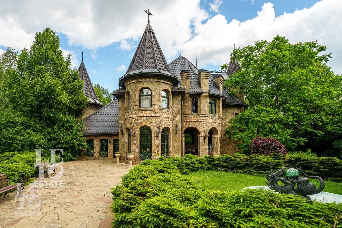 Этот роскошный особняк, расположен на лесном тихом участке в 1,15 гектара. На территории сделан ландшафтный дизайн: перед домом установлен великолепный фонтан в форме дракона, также 9 бронзовых скульптур от Александра Шенгелия, расположеные по всему периметру участка, вымощенные дорожки, освещаемые 270 фонарями - создают неповторимую атмосферу. Нижний сад украшает большой пруд, водопады и мозаичная беседка с итальянской мозаикой, отделанная мрамором Verda Laponia. Вторая беседка и зона барбекю расположена чуть дальше и выполнена по отдельному проекту из мрамора и кованных элементов, которая вмещает в себя до 20 человек.