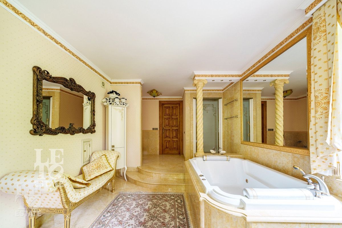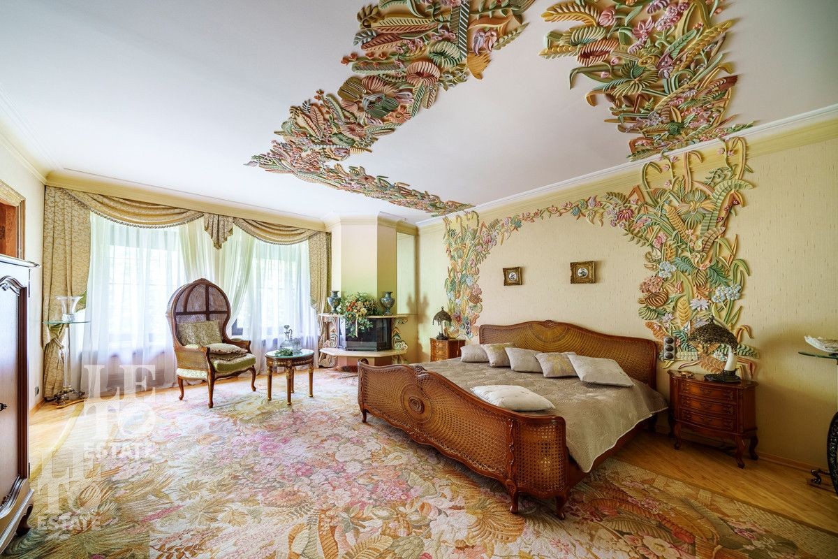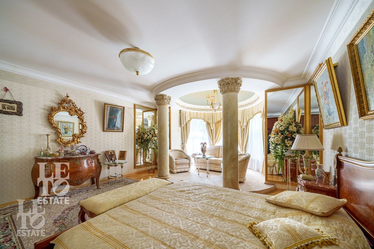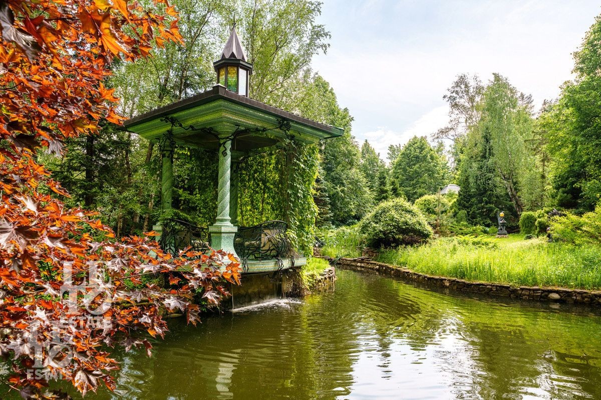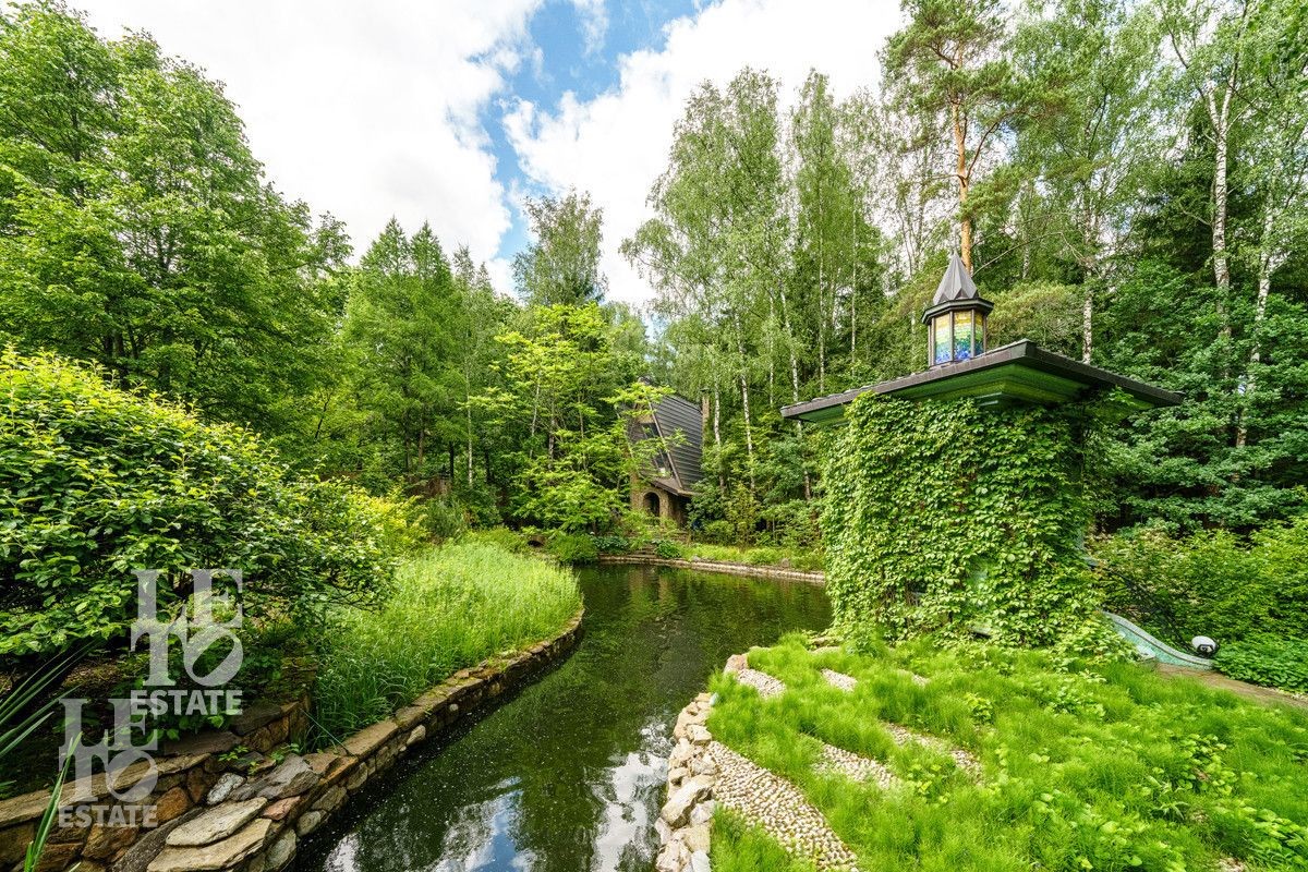 Этот роскошный особняк, расположен на лесном тихом участке в 1,15 гектара. На территории сделан ландшафтный дизайн: перед домом установлен великолепный фонтан в форме дракона, также 9 бронзовых скульптур от Александра Шенгелия, расположеные по всему периметру участка, вымощенные дорожки, освещаемые 270 фонарями - создают неповторимую атмосферу. Нижний сад украшает большой пруд, водопады и мозаичная беседка с итальянской мозаикой, отделанная мрамором Verda Laponia. Вторая беседка и зона барбекю расположена чуть дальше и выполнена по отдельному проекту из мрамора и кованных элементов, которая вмещает в себя до 20 человек.