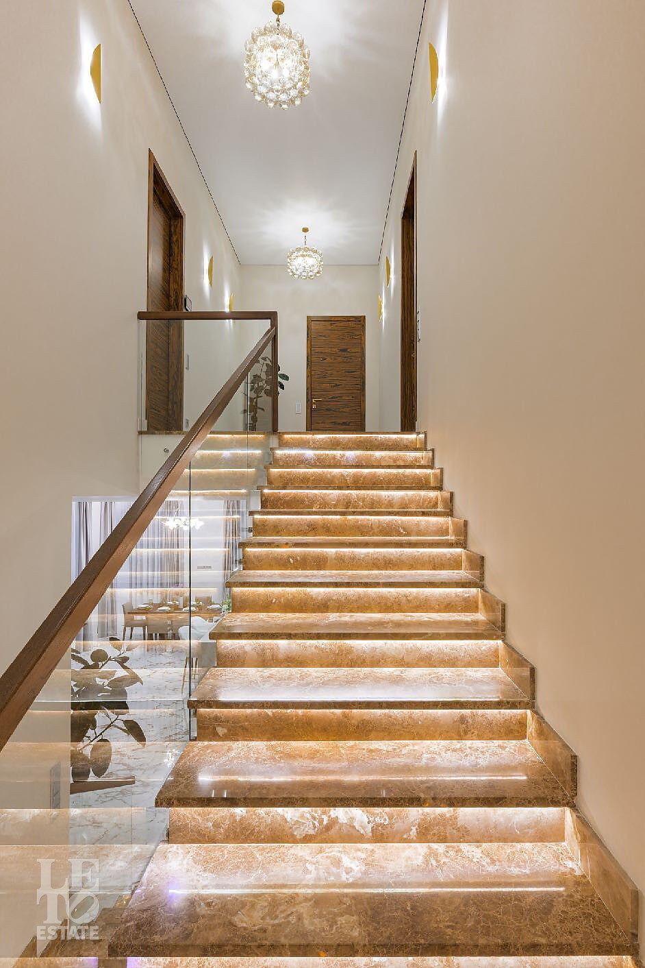 Второй этаж: холл, мастер-спальня с с ванной комнатой и гардеробной, 2 спальни с ванными комнатами и гардеробными.