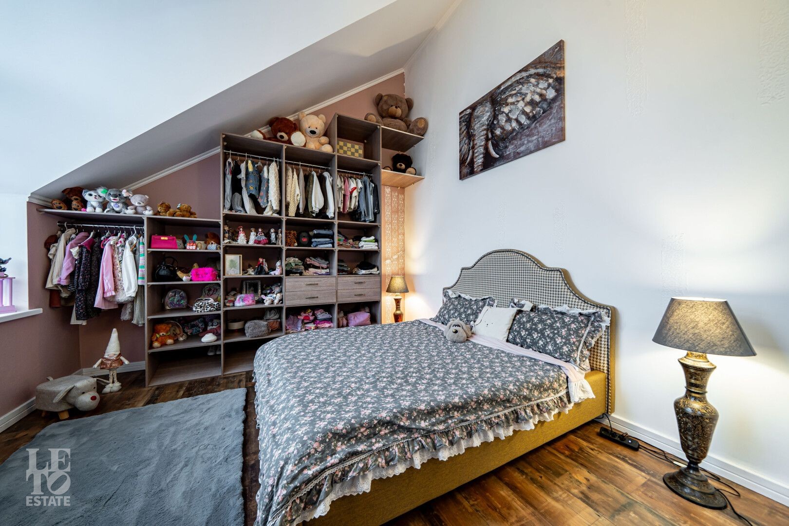 Второй этаж: мастер-спальня со своим санузлом и гардеробом, две детские комнаты, санузел.