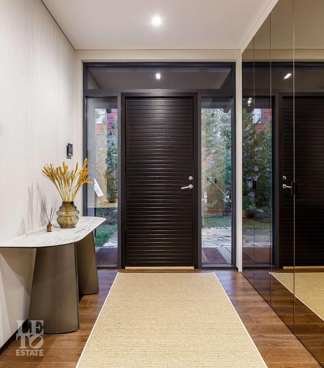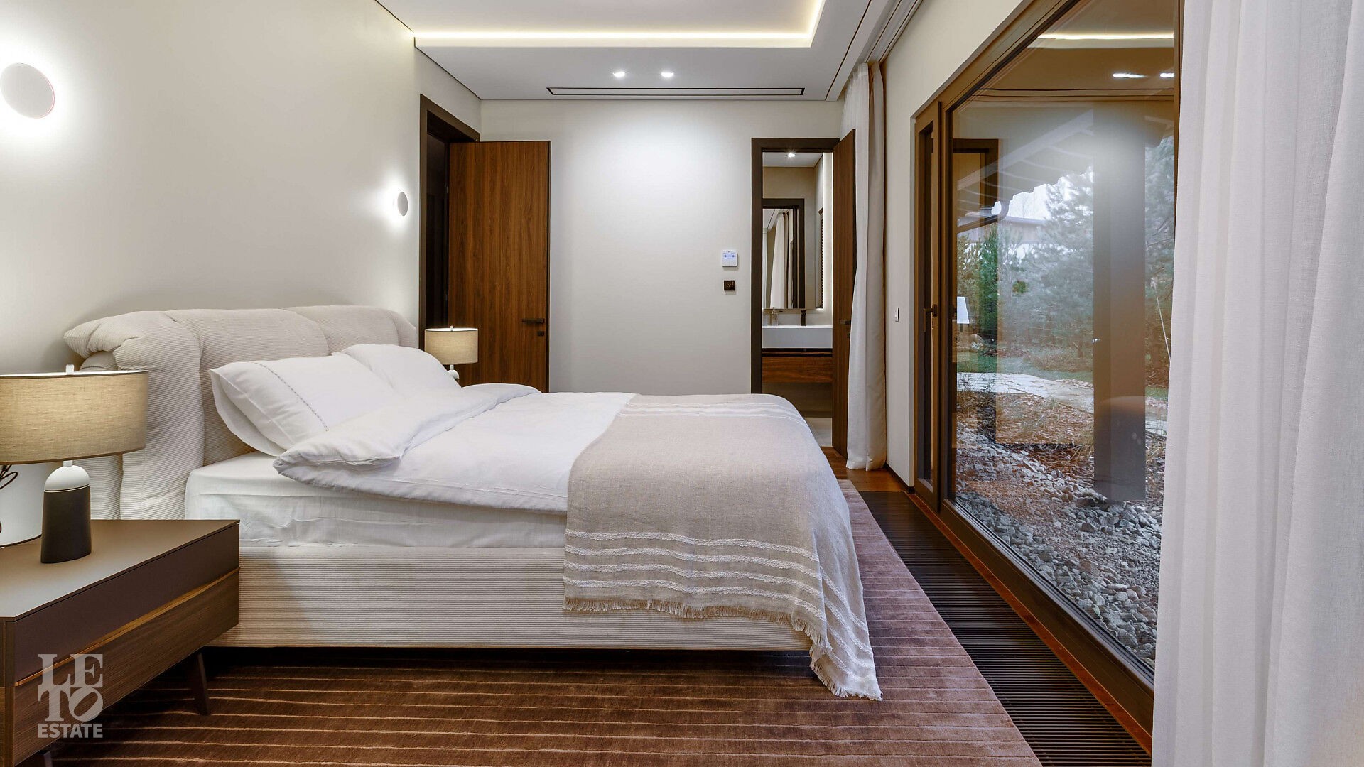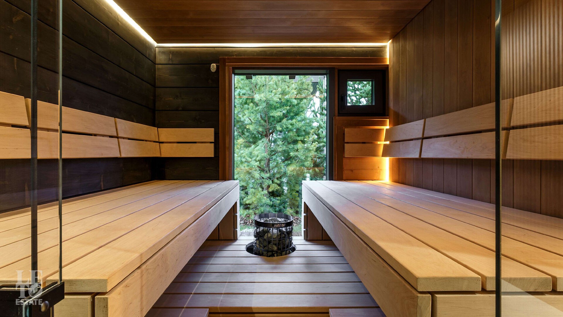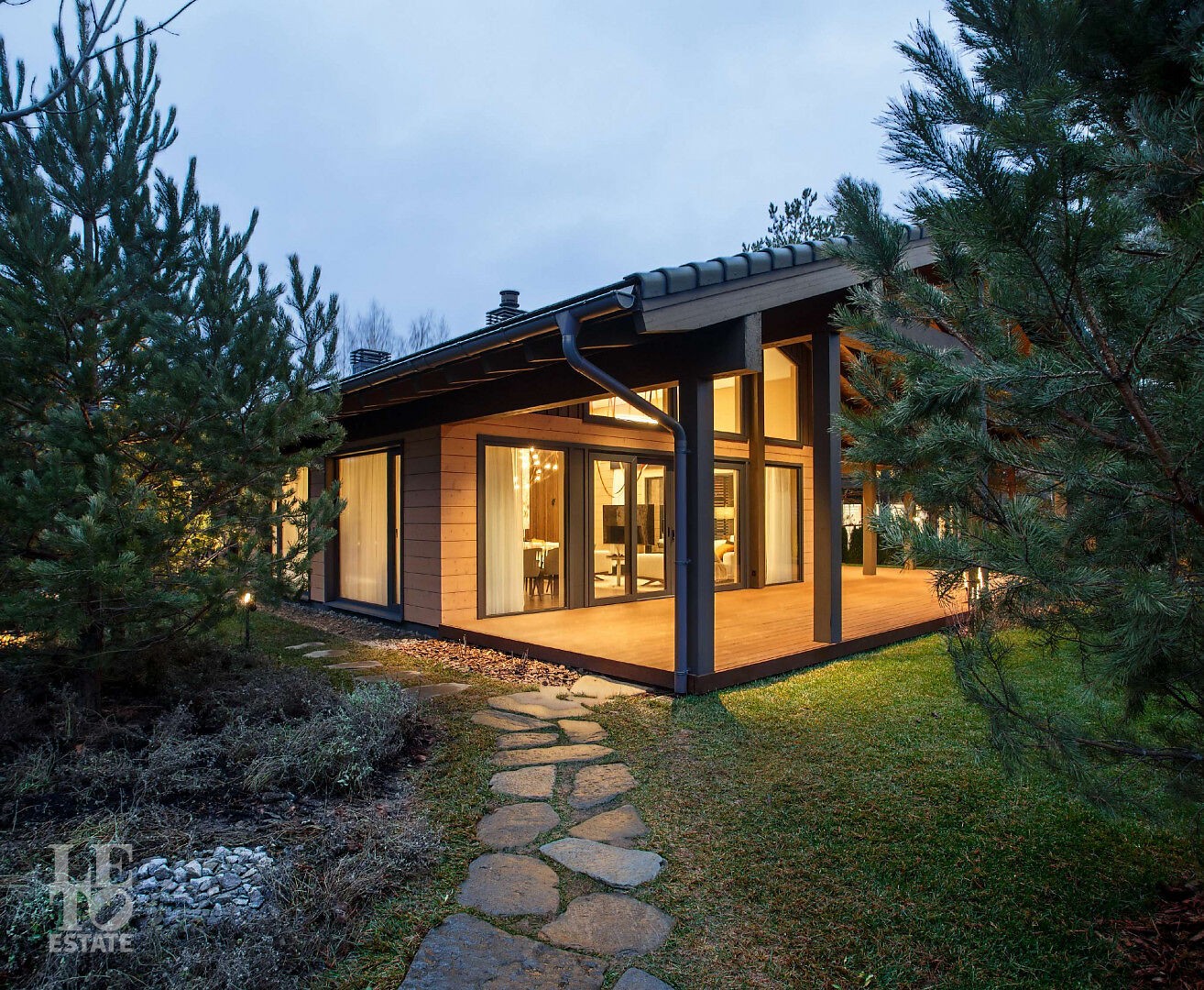 Панорамные двухкамерные алюминиевые энергоэффективные окна и деревянные финские двери Kaski с системой климат-контроля. Профессиональная архитектурная подсветка, разработанная