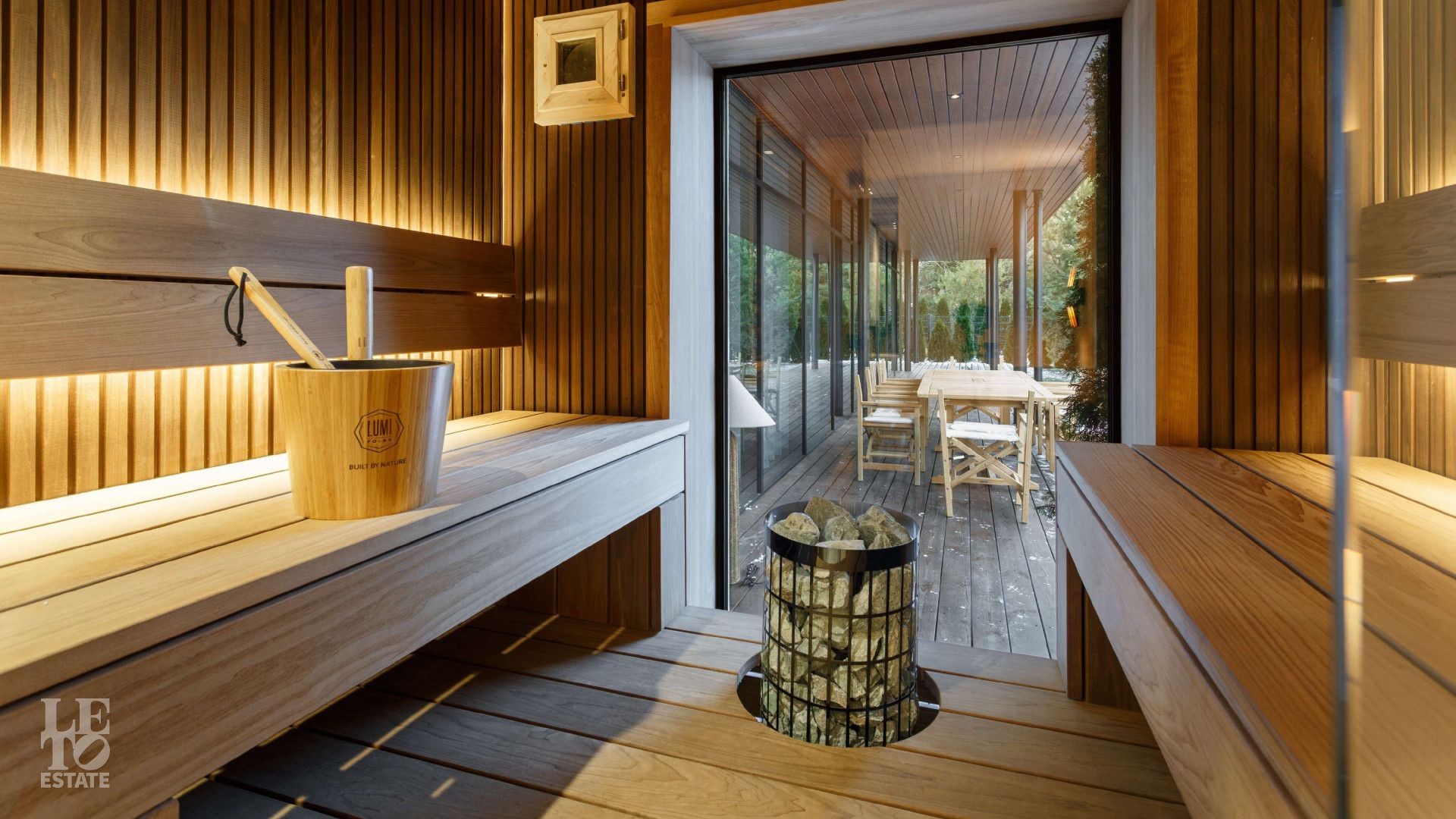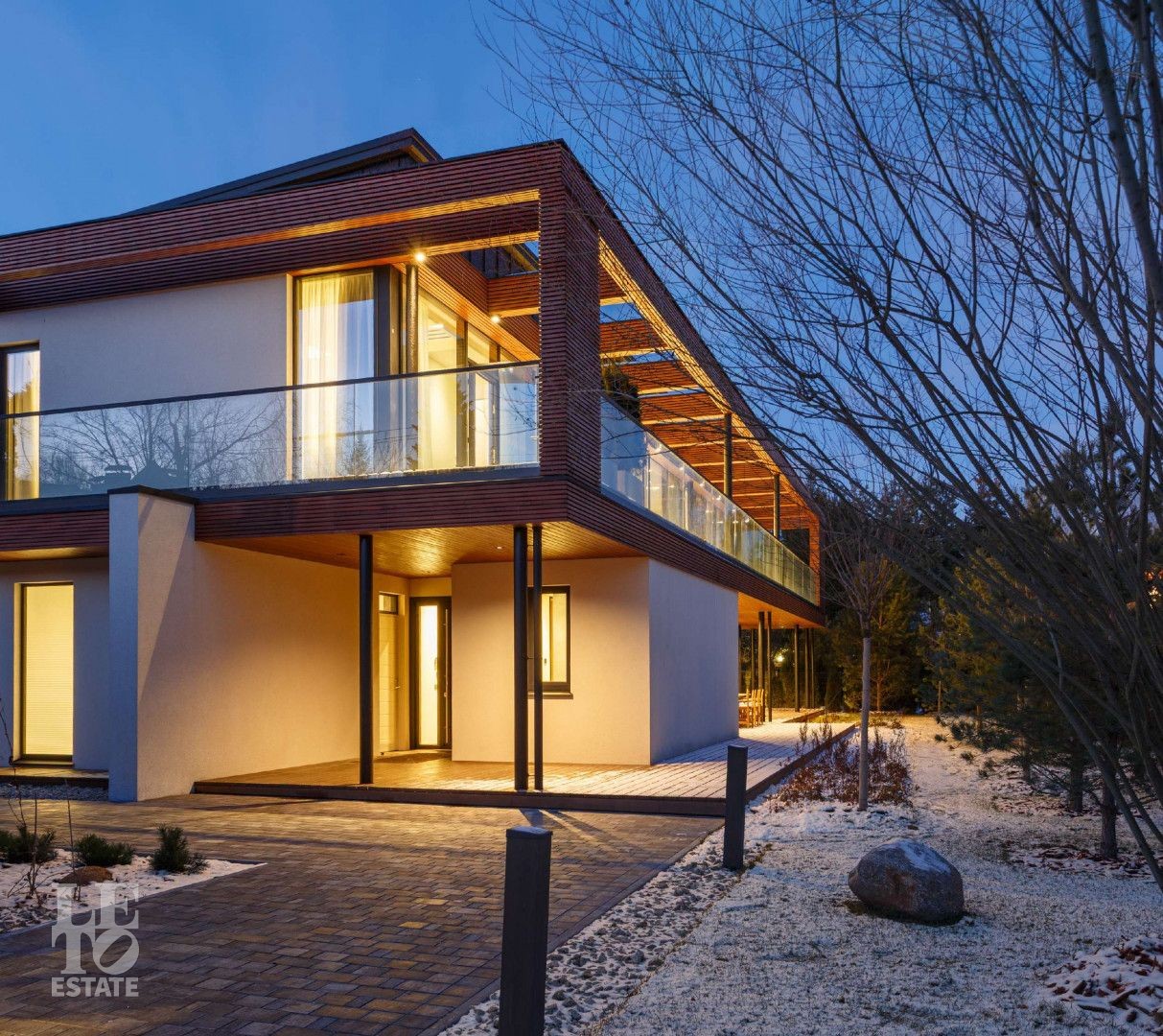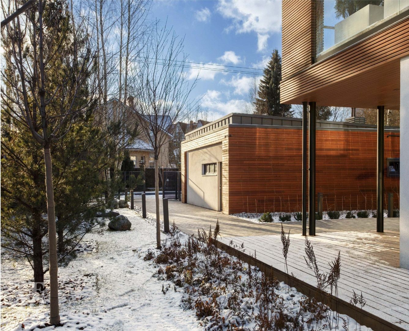 Дорожки к дому оснащены автоматической системой снеготаяния - никакого льда, сугробов и лишних хлопот. Идеальные условия круглый год без усилий.