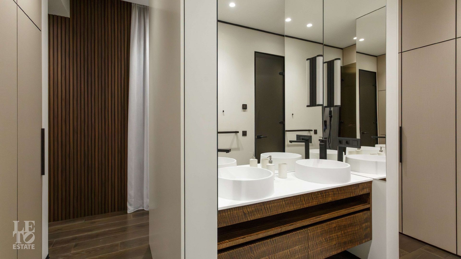 Первый этаж: две спальни с собственными санузлами, кабинет с санузлом, СПА-зона с сауной, постирочная, техническое помещение, комната хранения, две гардеробной, санузел;