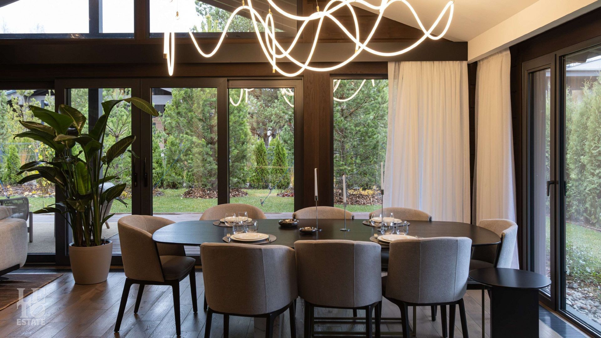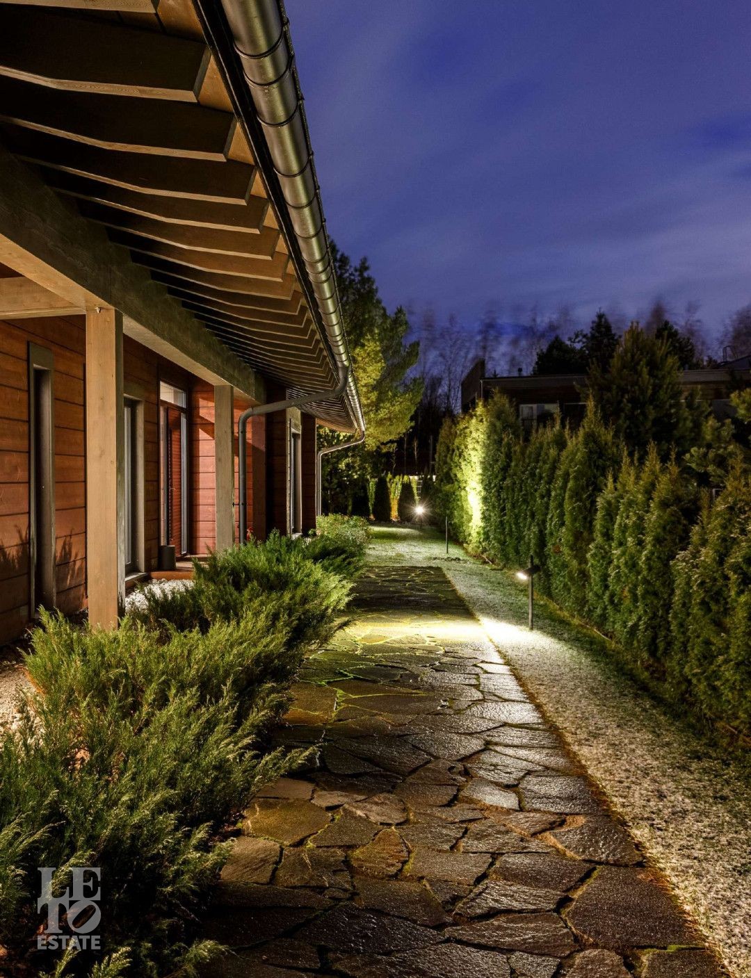 Дорожки к дому оснащены автоматической системой снеготаяния - никакого льда, сугробов и лишних хлопот. Идеальные условия круглый год без усилий.
