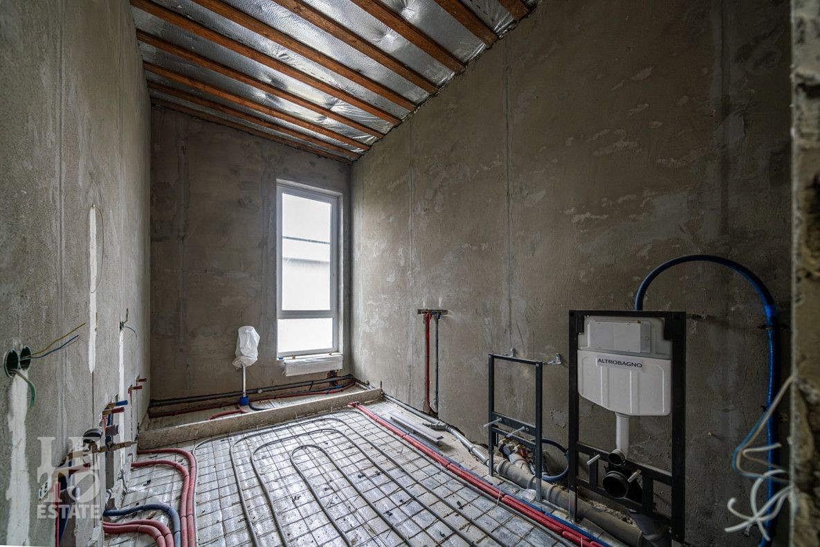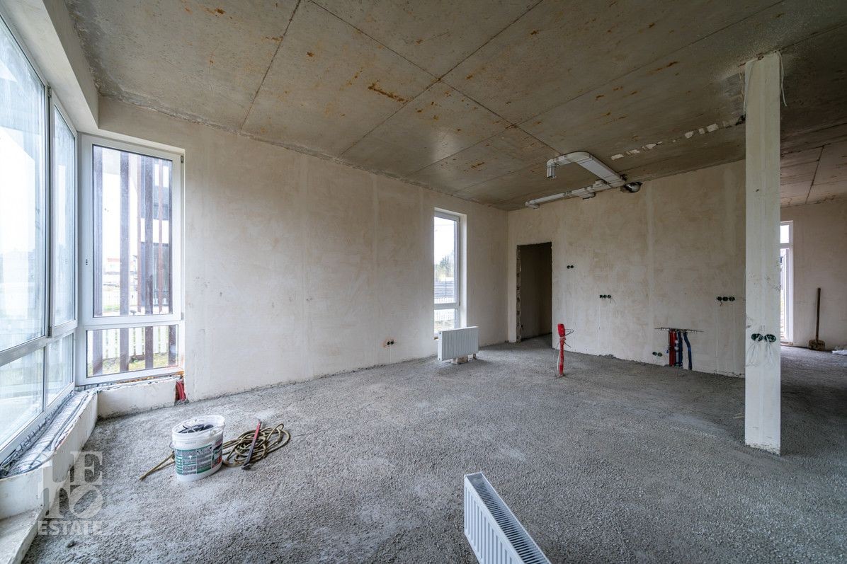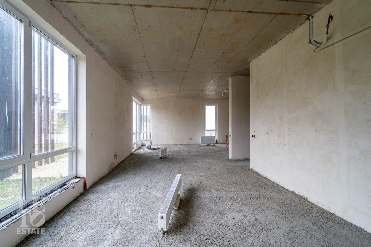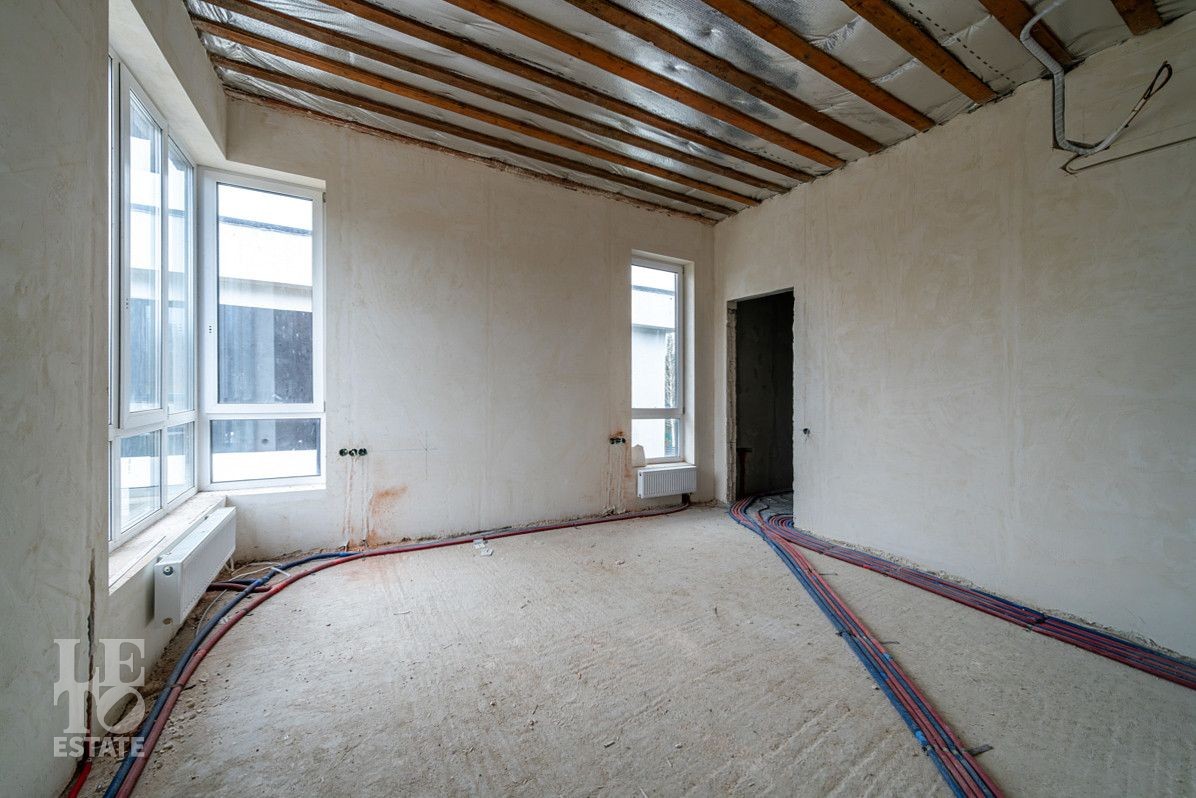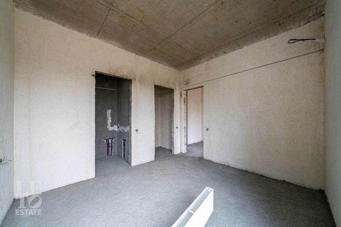В процессе завершения отделки "White Box". Возведены перегородки, выровнены и отштукатурены стены. Сделаны выводы труб под сантехнические приборы (раковины, унитаз, ванную), а также выводы под кондиционеры в гостиной и спальнях, заложен теплый пол. Проведена полная разводка кабелей по всем помещениям, установлены подрозетники. Все скрытые коммуникации уже проложены профессионалами, что минимизирует риск ошибок при разводке труб или электрики.