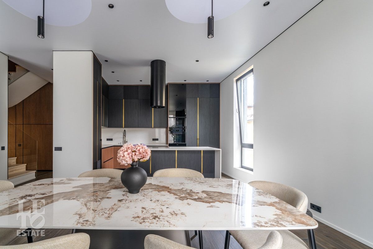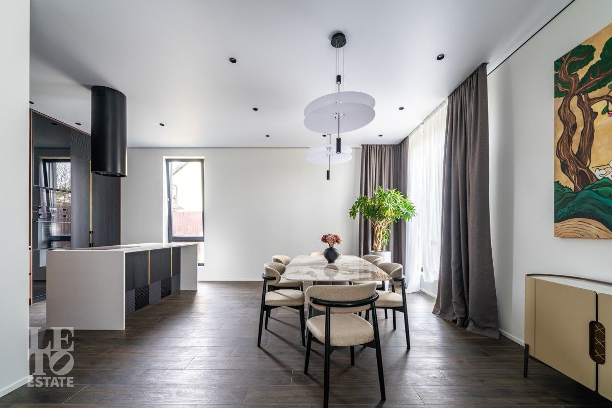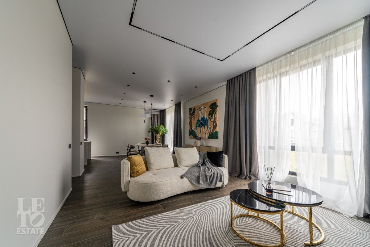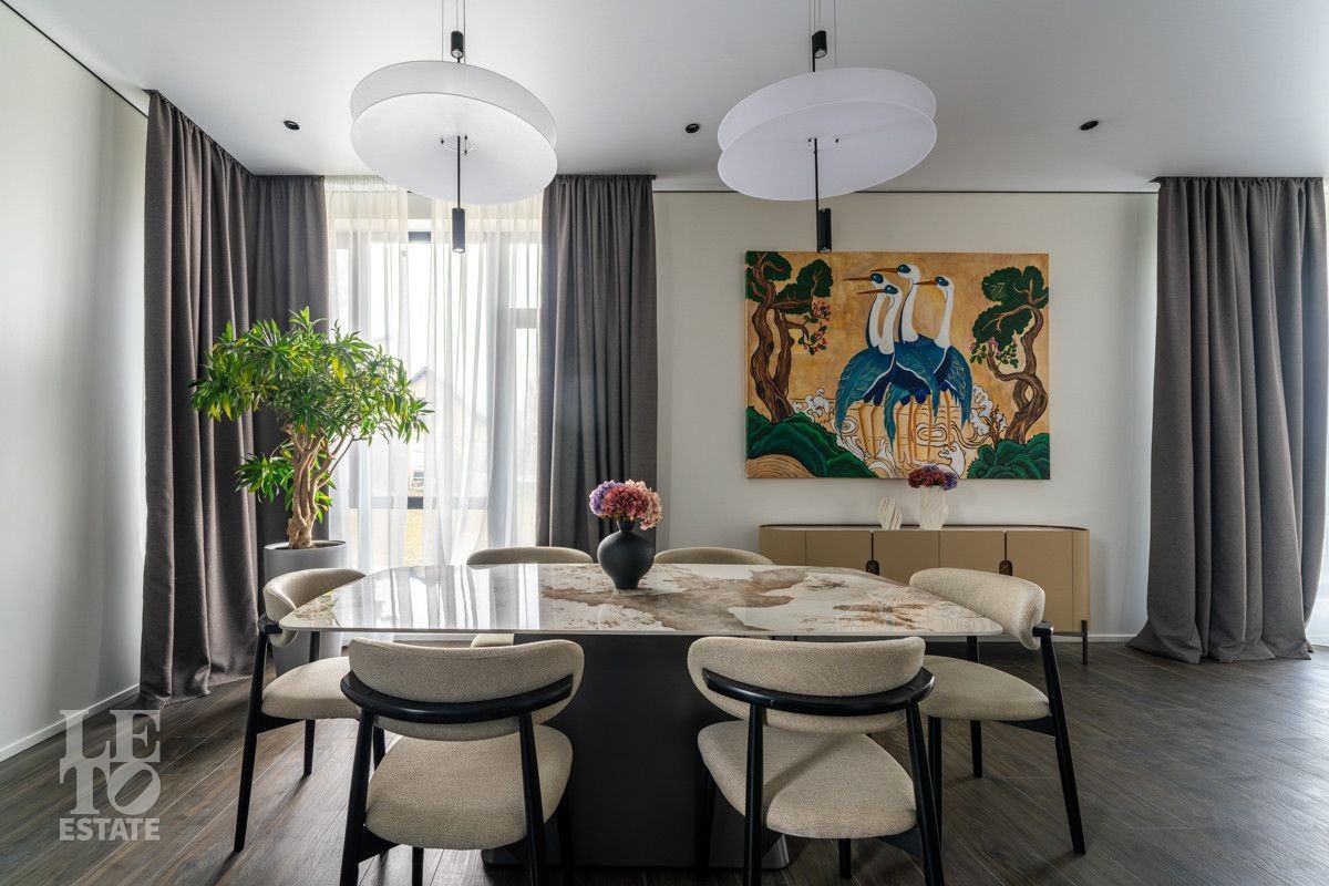 Интерьер оформлен с использованием мебели и световых решений в стилистике Poliform, Minotti и Vibia, авторской живописи, что обеспечивает гармоничное сочетание элегантности, функциональности и актуальных дизайнерских трендов.