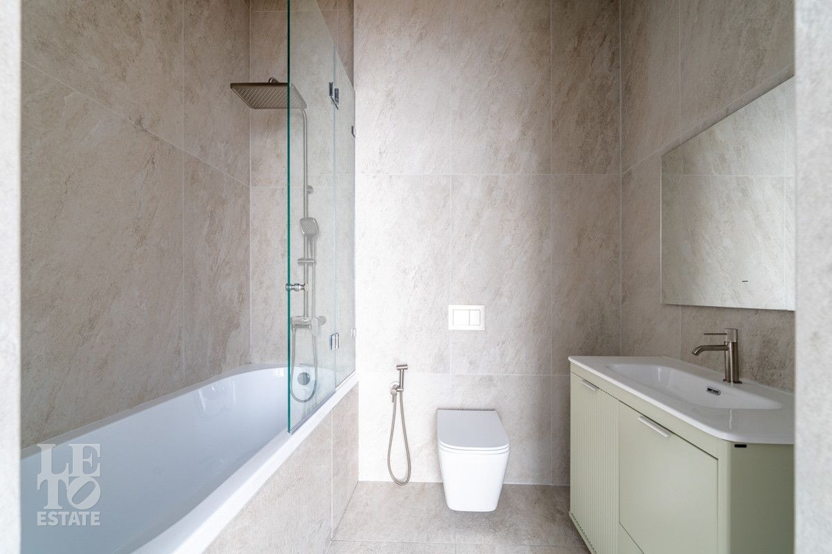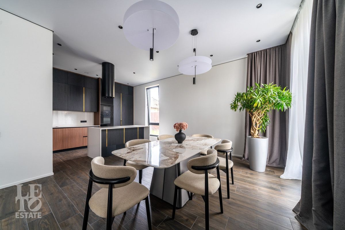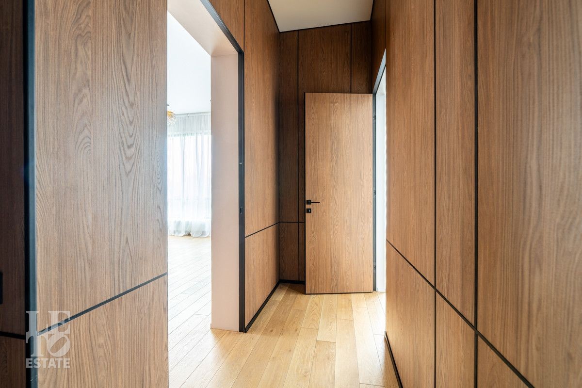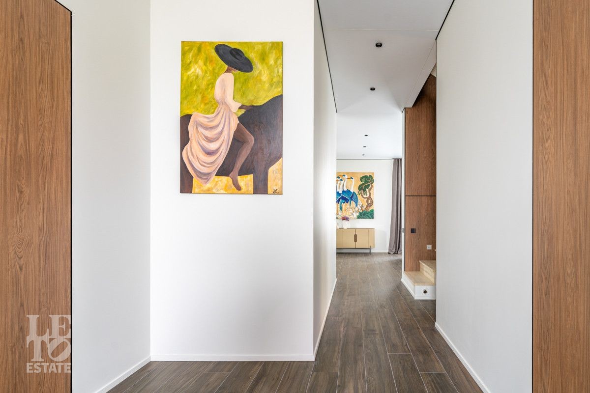 Выполнена современная отделка, выдержанная в стиле современной классики с выразительными акцентами и деликатными элементами артдэко и минимализма. Интерьер продуман до мелочей: элегантные формы сочетаются с выверенными решениями, создавая гармоничное и комфортное пространство для жизни.