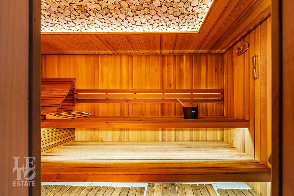 Четыре уровня, включая цокольный этаж и мансарду, представляют неограниченные возможности для зонирования. Крытый бассейн с сауной и застекленной верандой станет центром притяжения для близких и друзей.