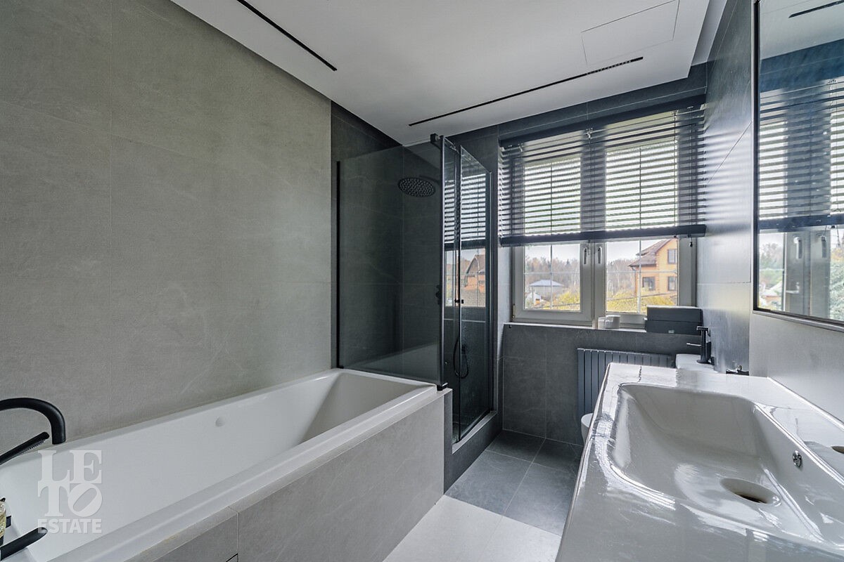 Комфортный мастер-блок, включающий спальню, вместительную гардеробную, кабинет, санузел с ванной и душевой кабиной;