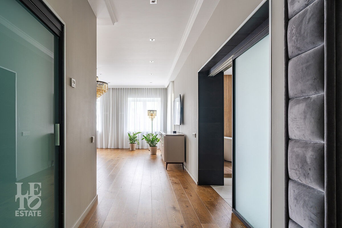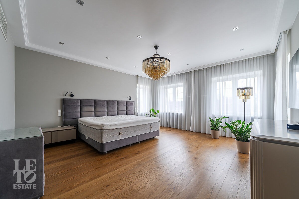 Мастер-спальня с кабинетом, гардеробной и ванной комнатой, две спальни, санузел с ванной и душевой кабиной, спальня с ванной комнатой;