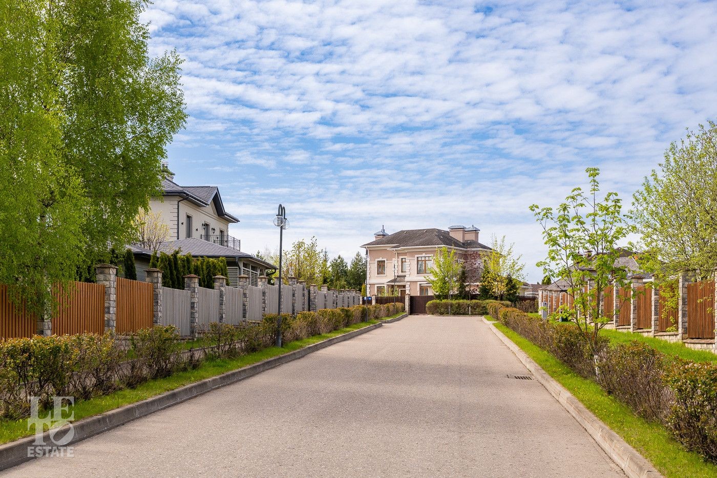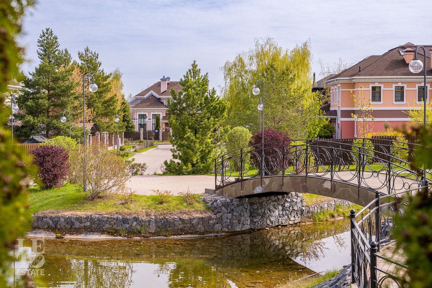 Архитектура выдержана в единой концепции, которая объединяет элементы классического и современного стиля. Особняки возведены из кирпича и дерева. Планировка продумана до мелочей. Дома с высокими потолками и большими окнами, просторными террасами. Фасады отделаны полимерной штукатуркой, которая со временем не теряет привлекательный вид.