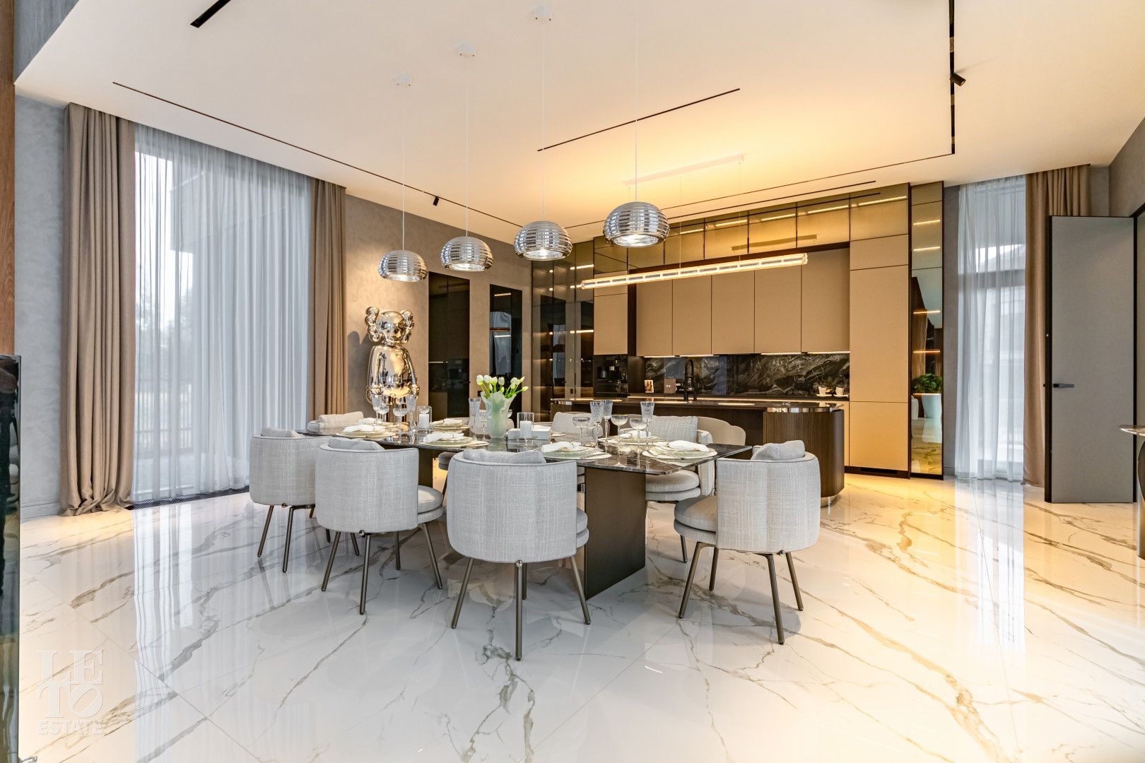 дорогое». От топовой линейки техники Miele на кухне, до последних моделей мебели Minotti и B&B ITALIA, а также люкс сантехники от Cielo и Gessi.