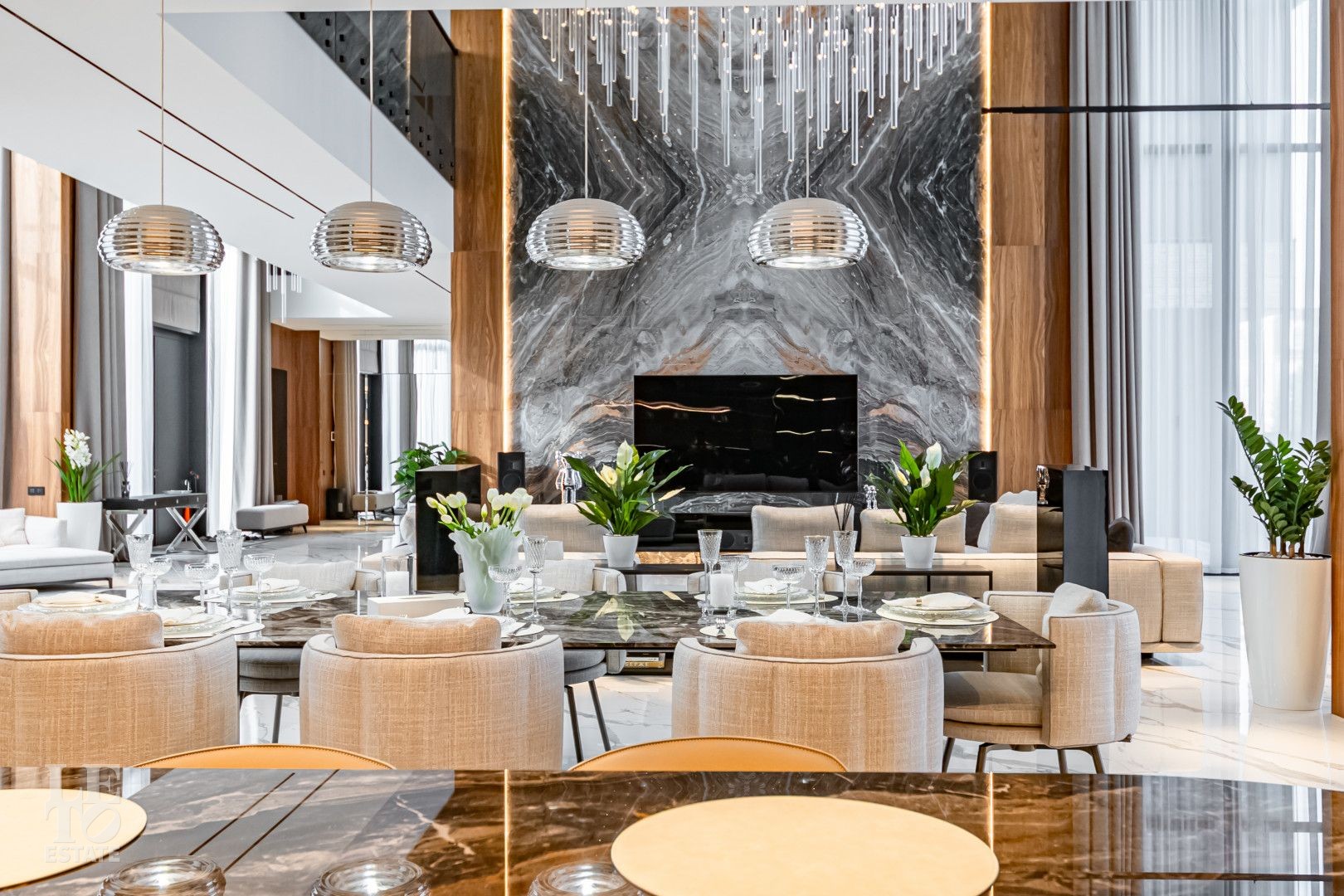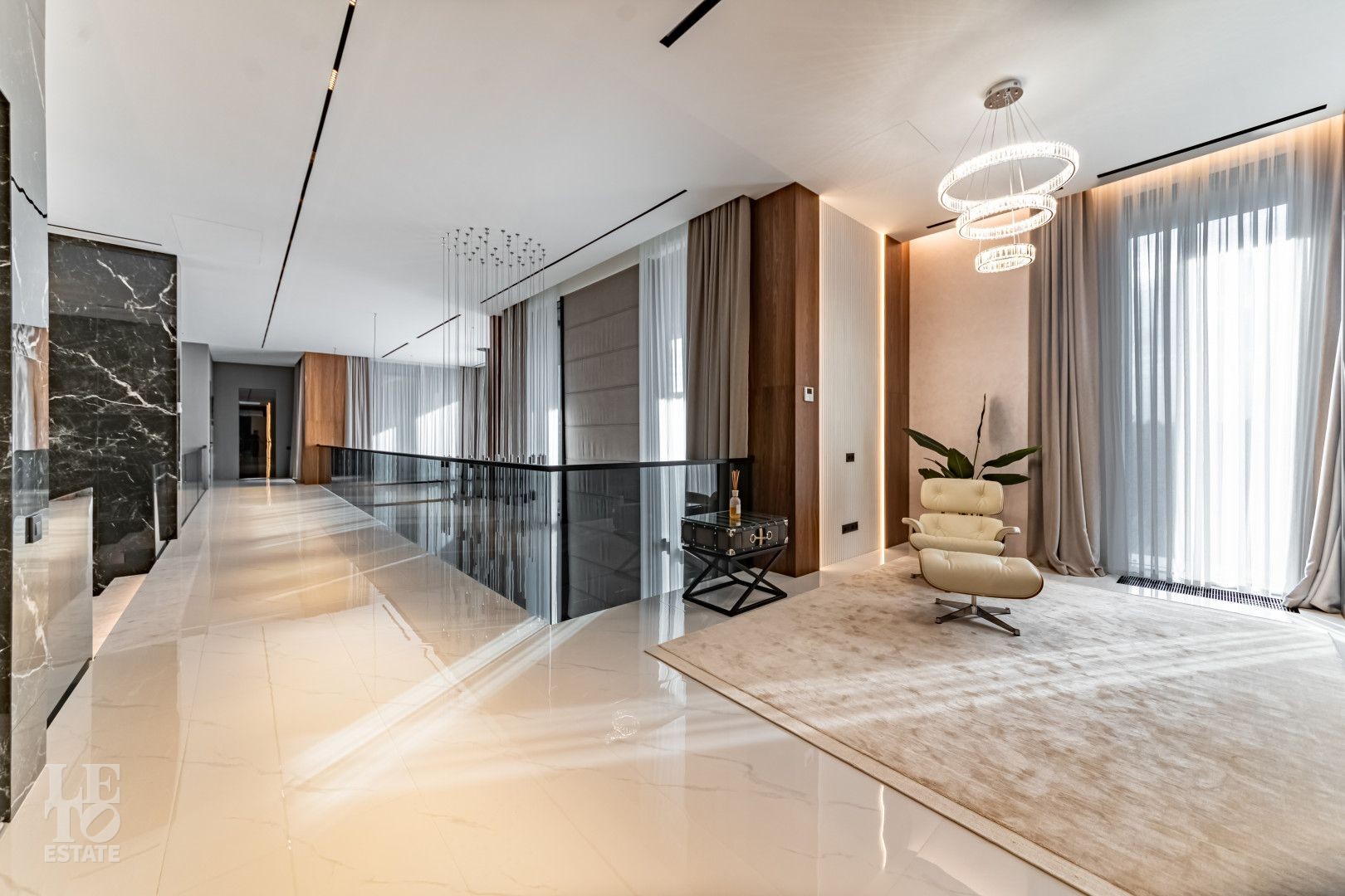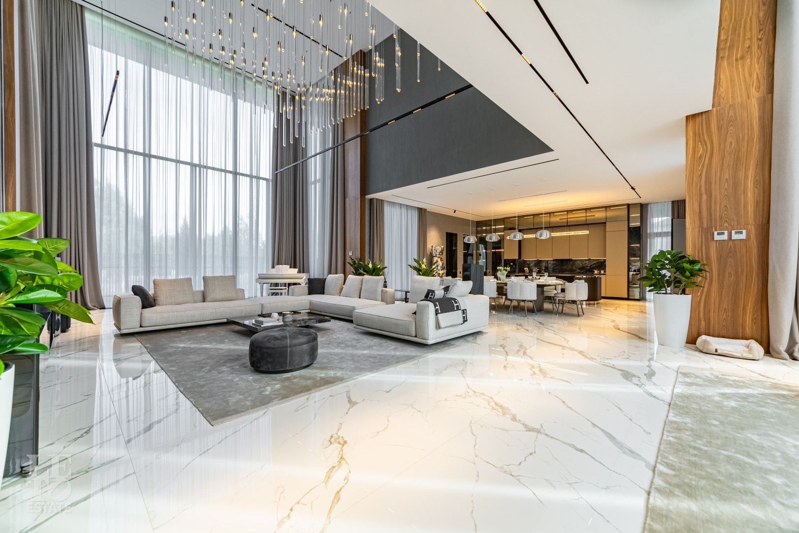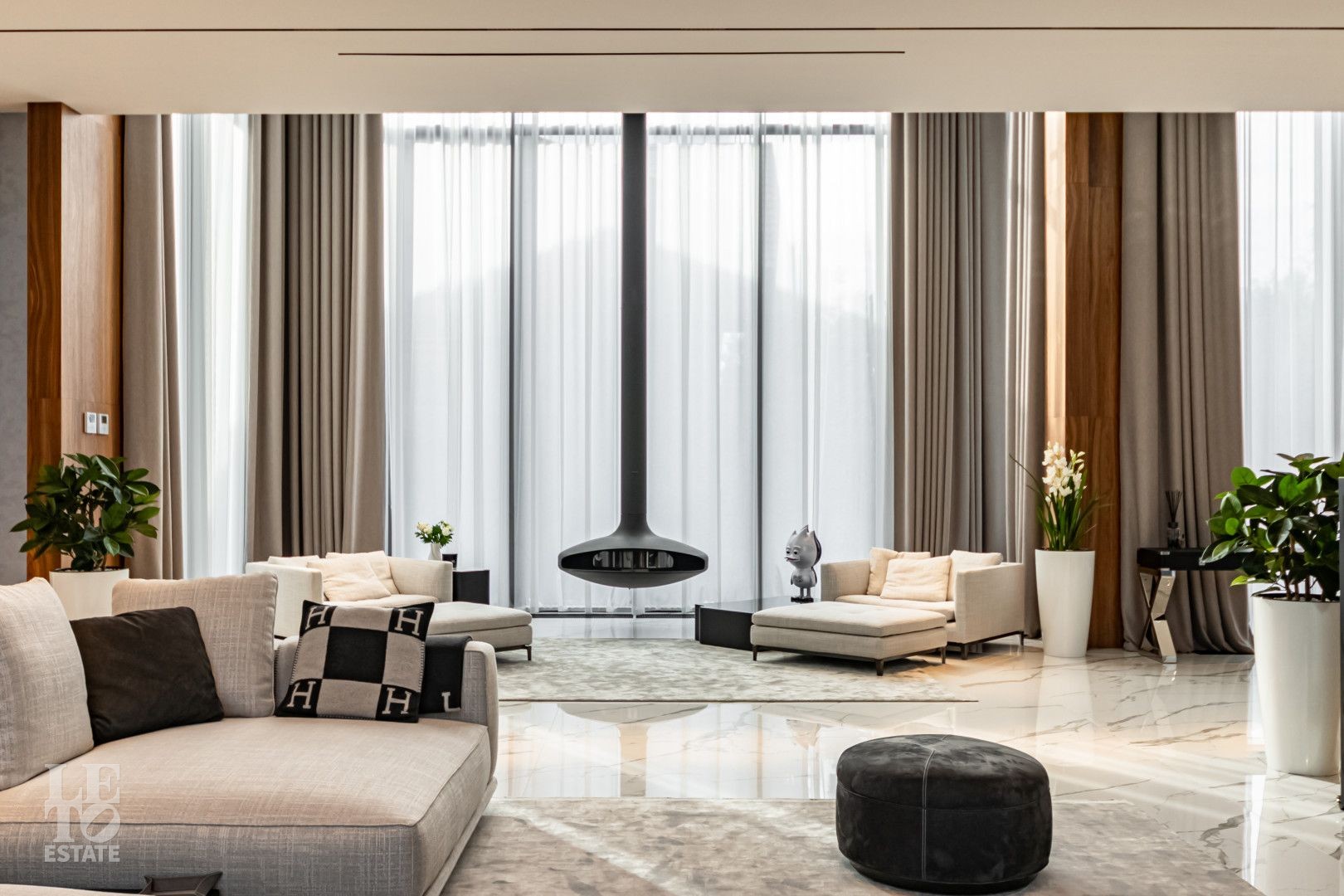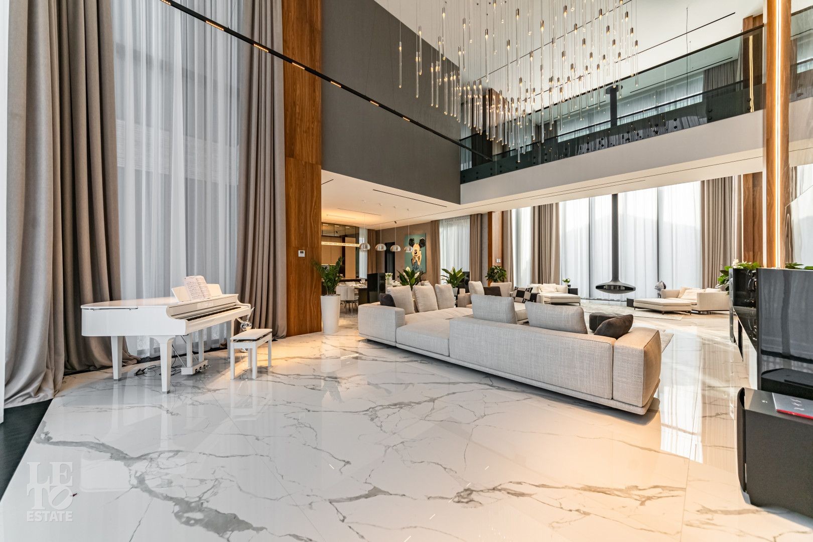 Сердце дома - не один, а ТРИ вторых света: в холле первого этажа, в лаундж зоне с камином и в гостиной с белоснежным роялем. Огромные панорамные окна с обеих сторон, в ответ друг другу,
