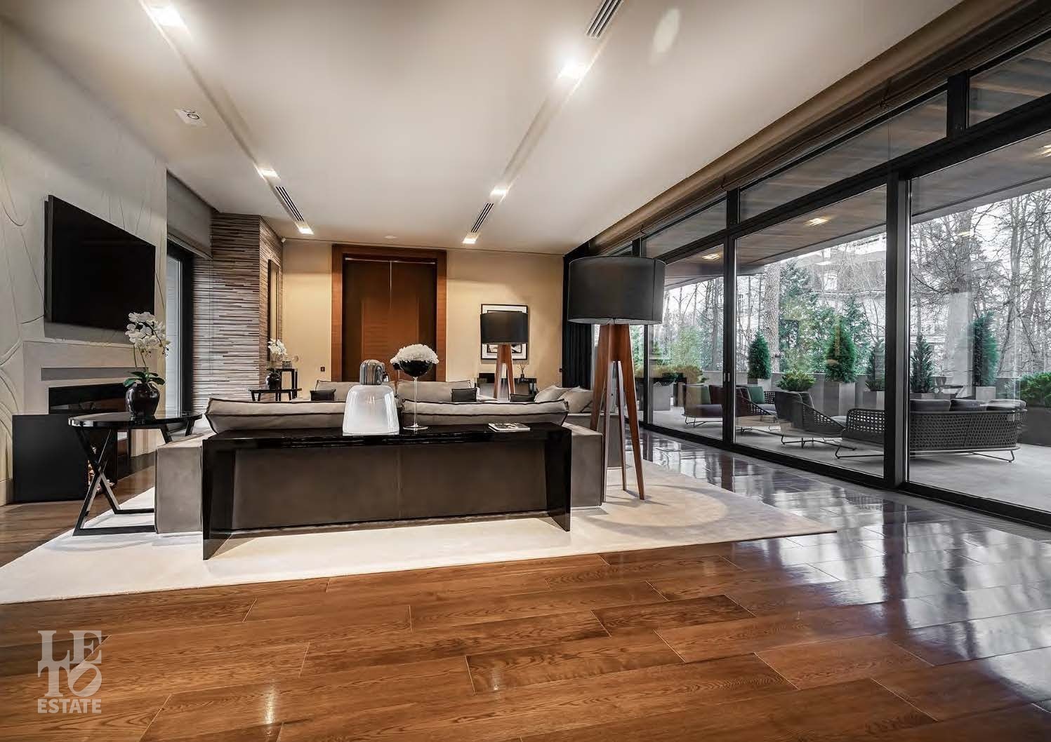 Благодаря раздвижным панорамным окнам с уникальными механизмами гостиная образует