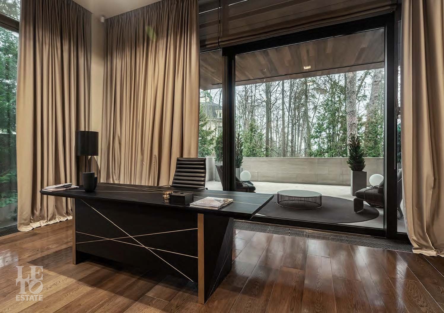 Второй этаж: кабинет, кухня, гостиная с панорамным видом и выходом на террасу, столовая с камином;