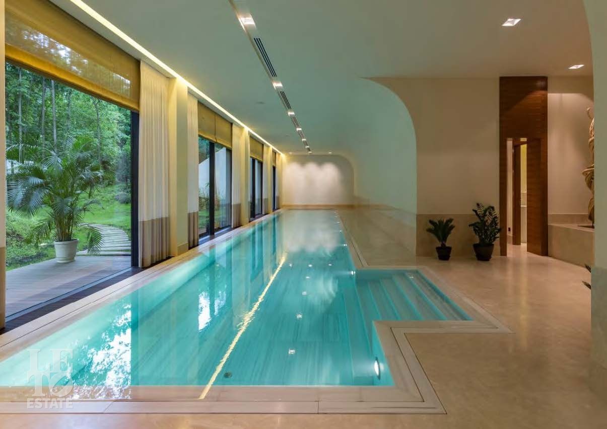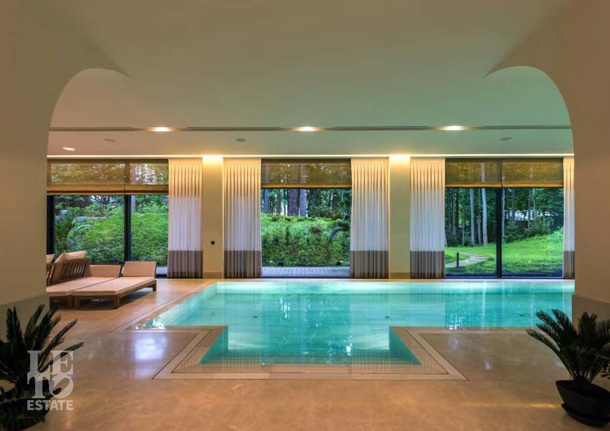 Первый этаж: СПА-центр с бассейном длиной 22,5 м, сауна, хамам, зона отдыха с выходом на участок;
