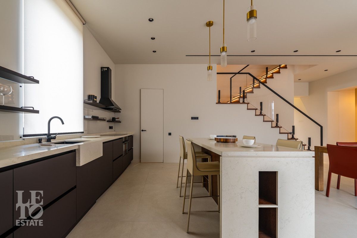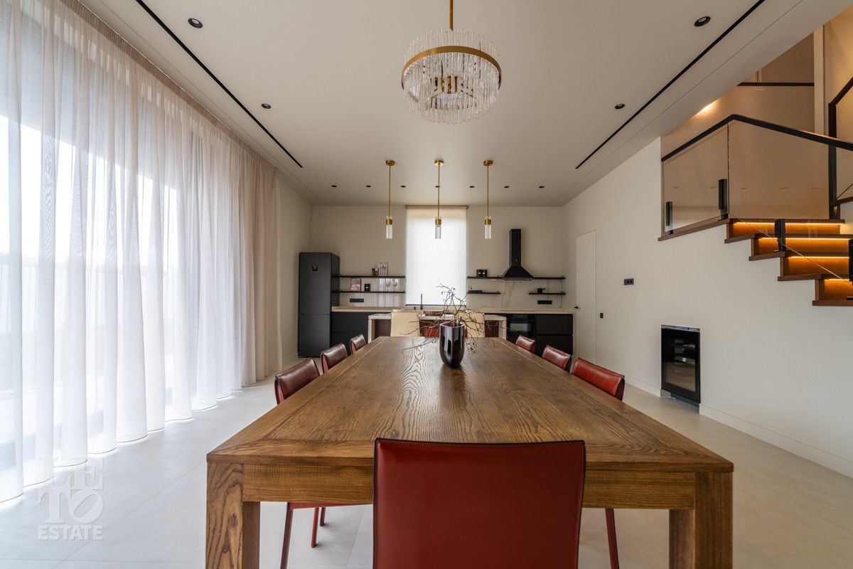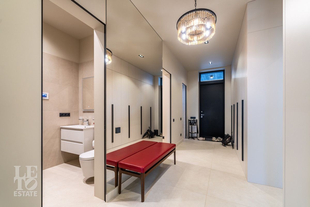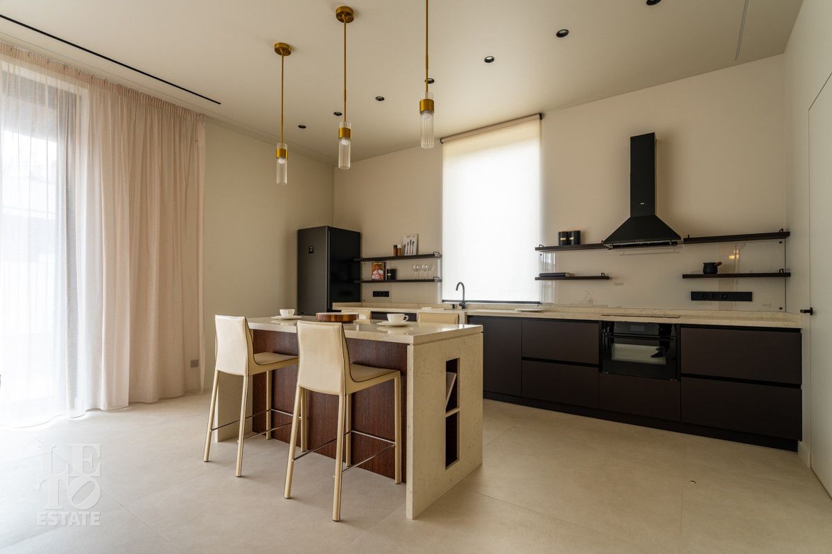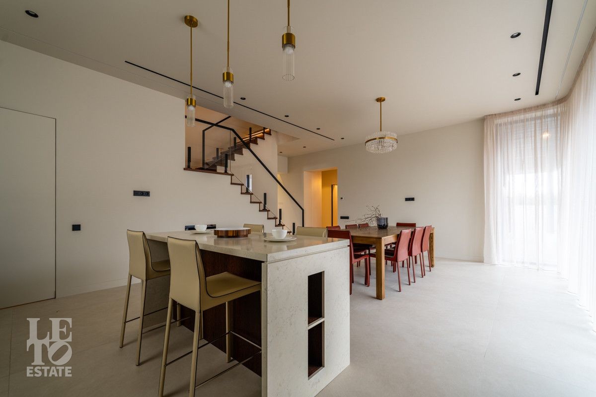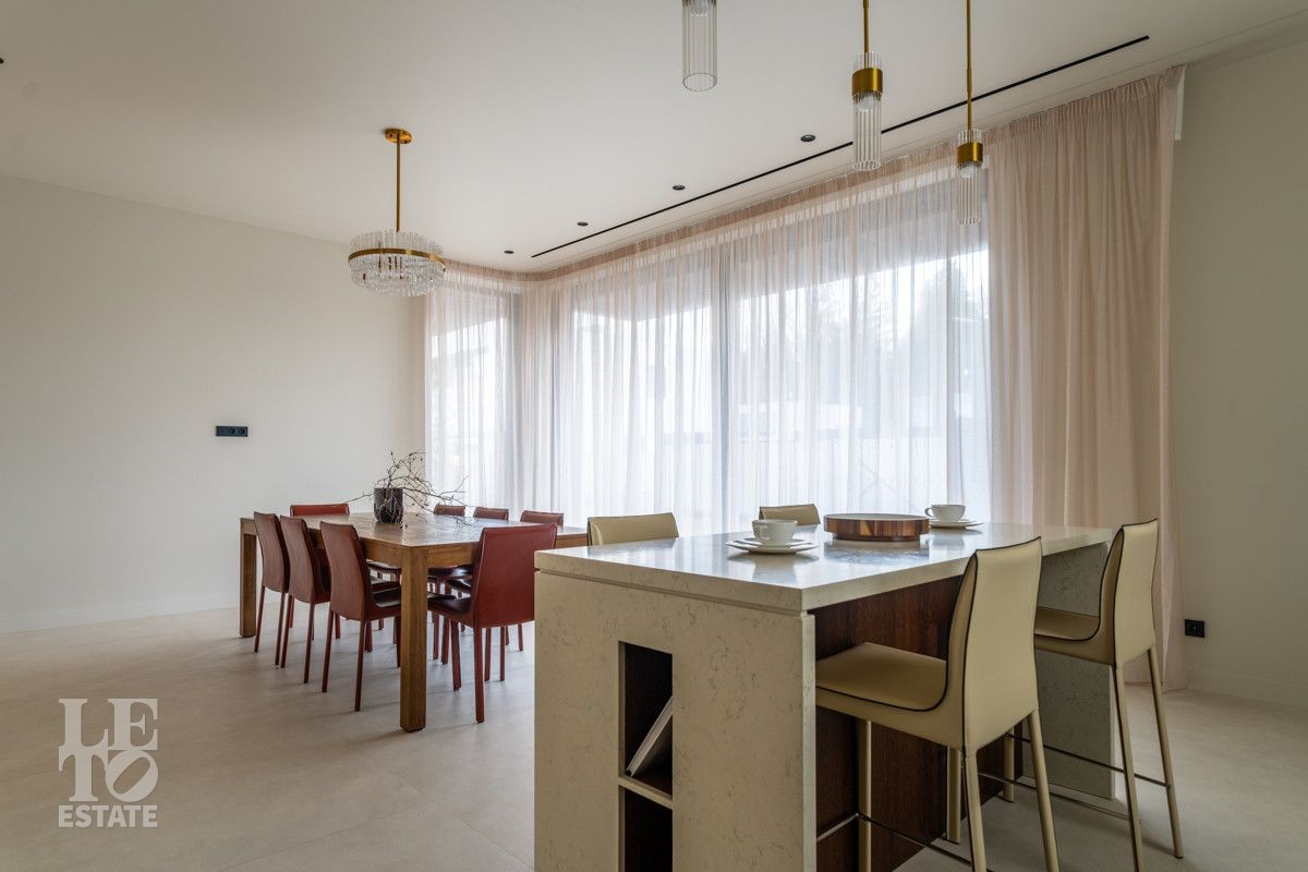 В доме невероятное открытое пространство гостиной с дровяным камином и столовой на первом этаже с выходом на террасу. Выполнена качественная отделка "под ключ", использовались дорогие материалы, установлена кухонная мебель с мраморной столешницей, оборудованны санузлы. Дом полностью меблирован и готов к проживанию. На первом этаже располагается SPA-зона с хаммамом.