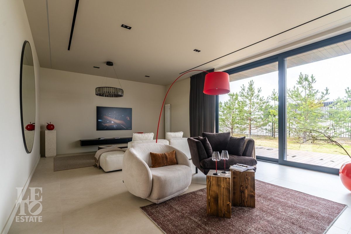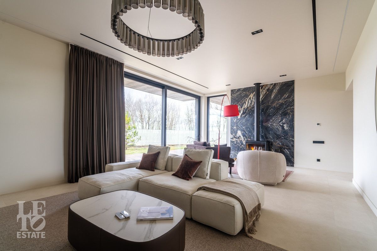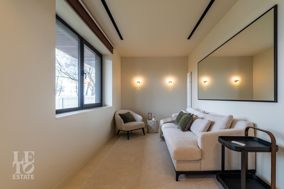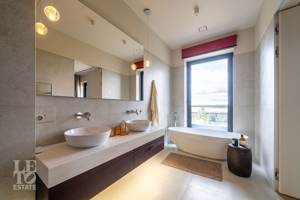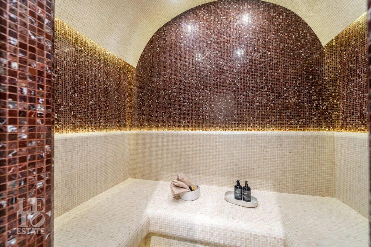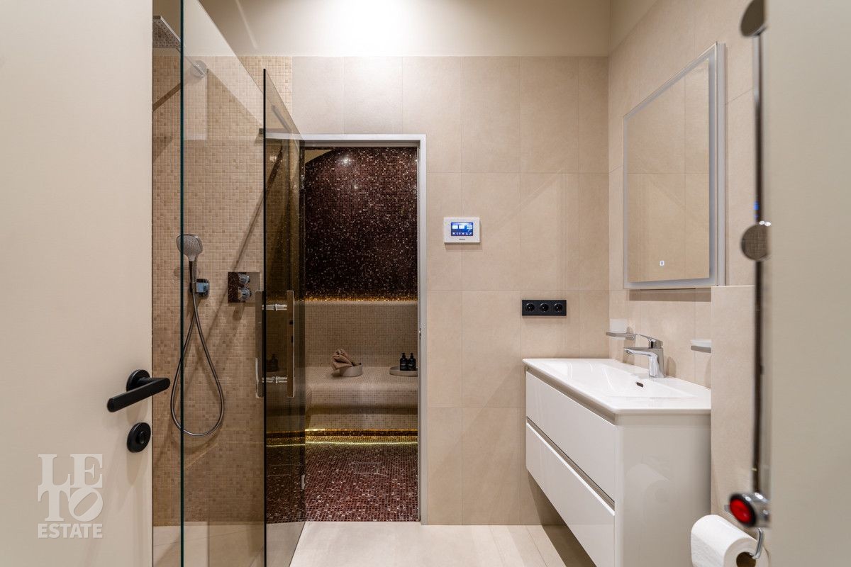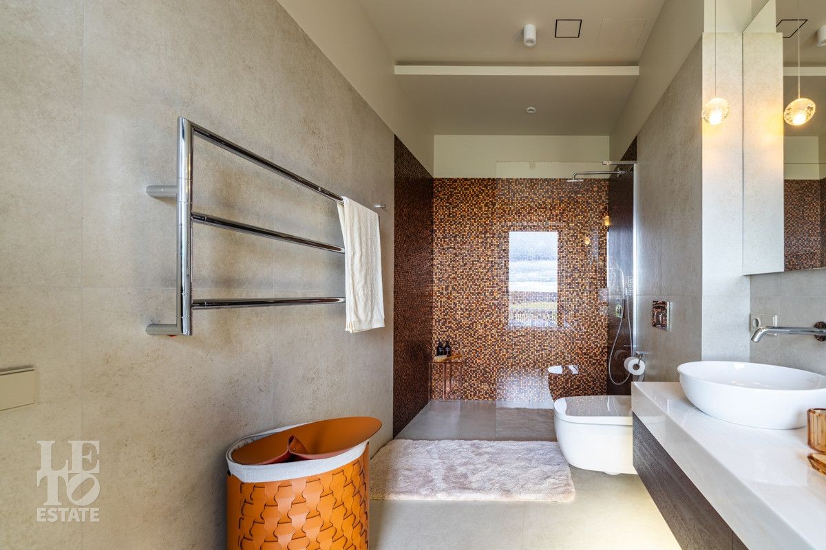 В доме невероятное открытое пространство гостиной с дровяным камином и столовой на первом этаже с выходом на террасу. Выполнена качественная отделка "под ключ", использовались дорогие материалы, установлена кухонная мебель с мраморной столешницей, оборудованны санузлы. Дом полностью меблирован и готов к проживанию. На первом этаже располагается SPA-зона с хаммамом.