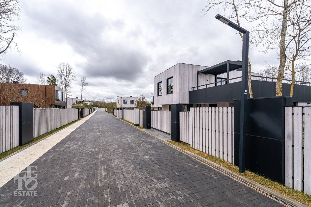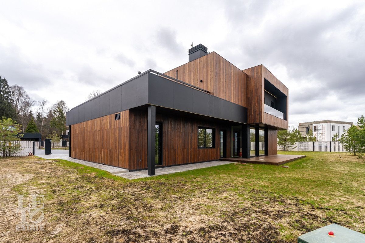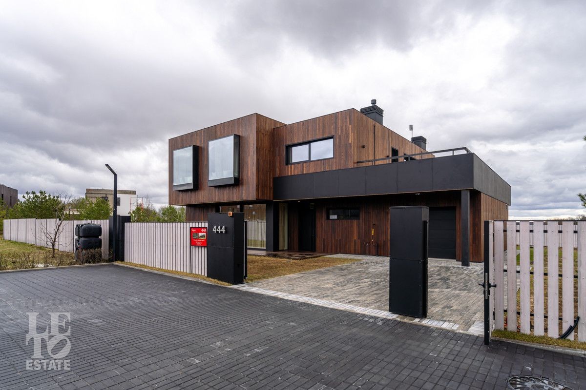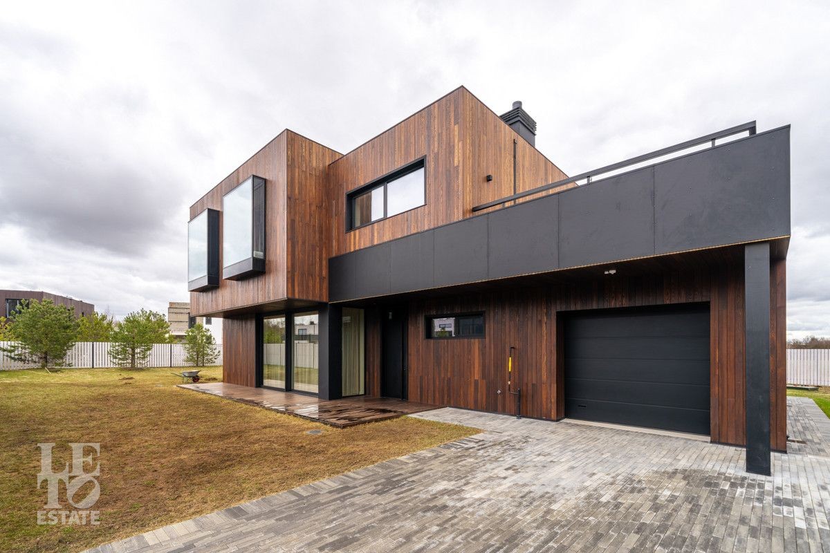 Особенностью дома является портальная раздвижная оконная система в гостиной и кухне-столовой, и панорамные окна на втором этаже в нескольких спальнях. Дом построен в стиле современного минимализма. Конструктив дома – монолитный каркас, фундамент – утепленная шведская плита, стены - газобетон. Котельная оснащена газовым и электрическим (резервным) котлом, датчиками протечки воды. Установлена приточно-вытяжная вентиляция.