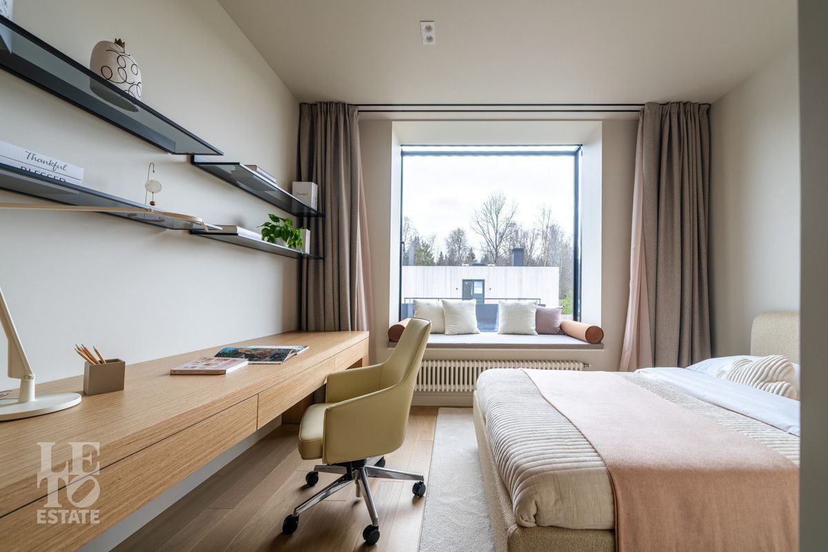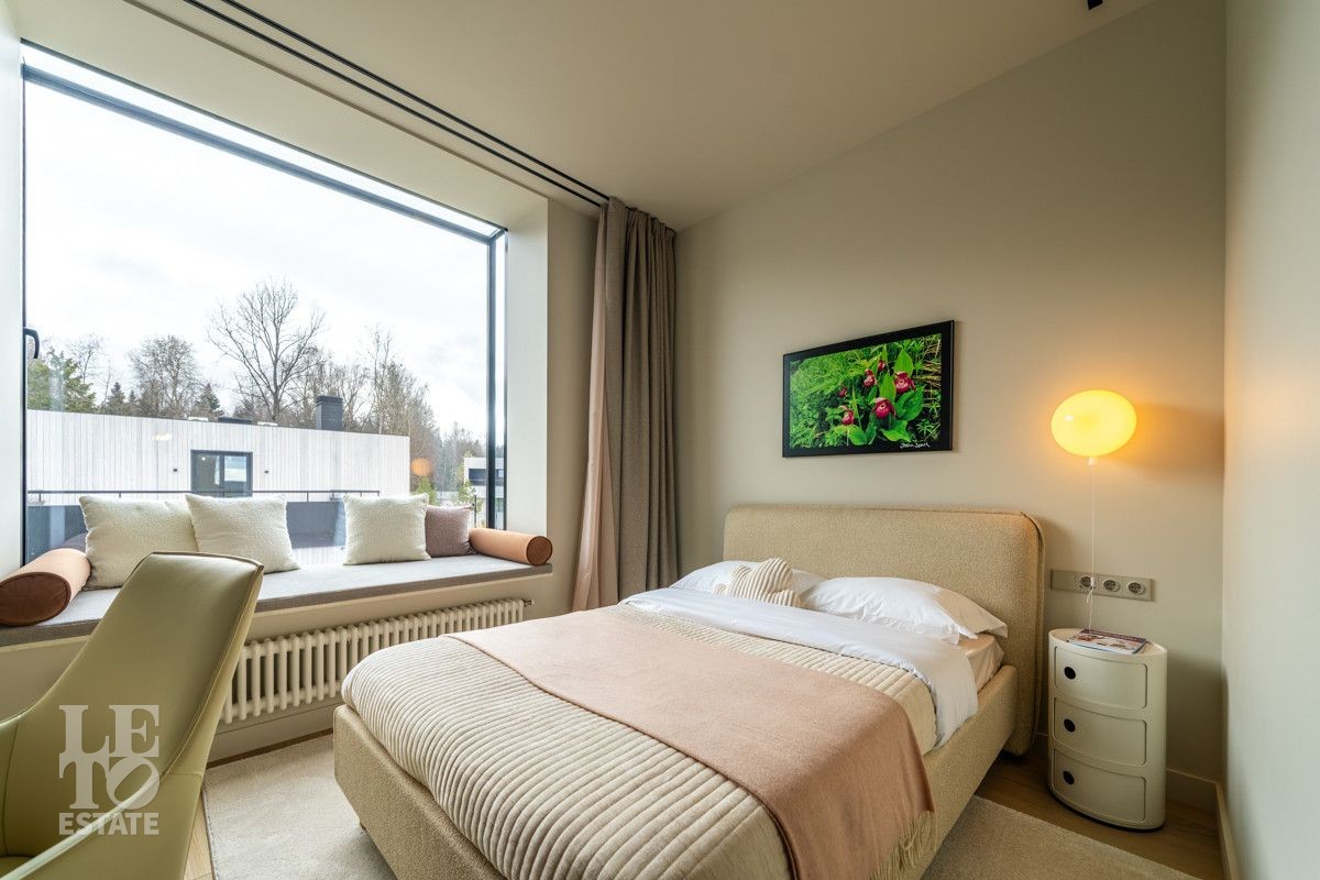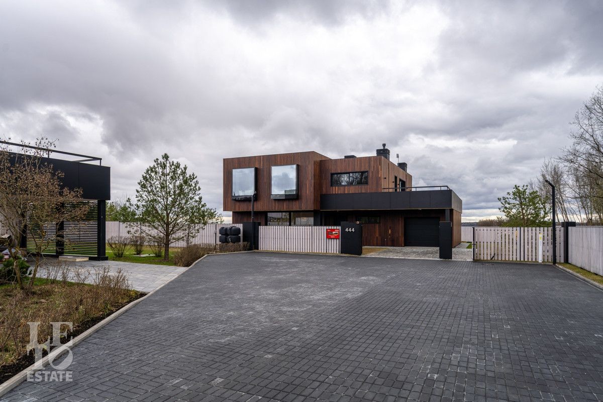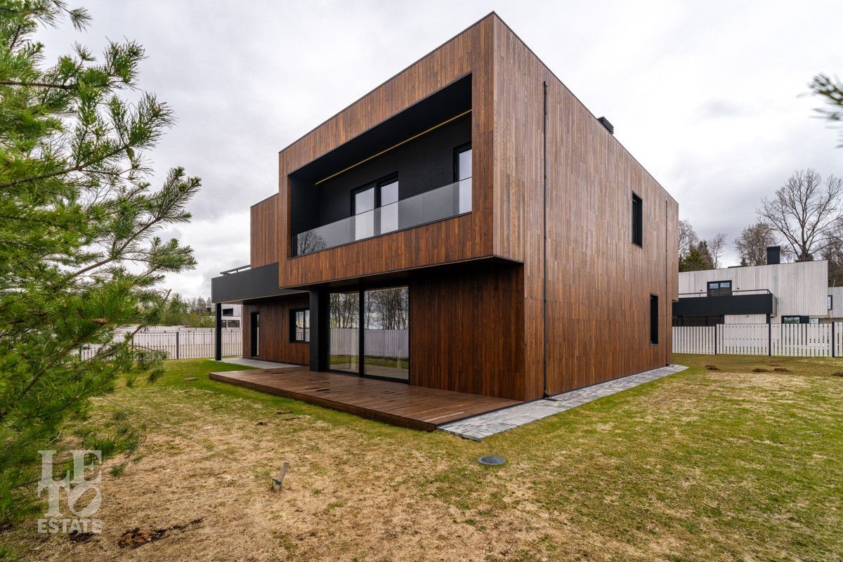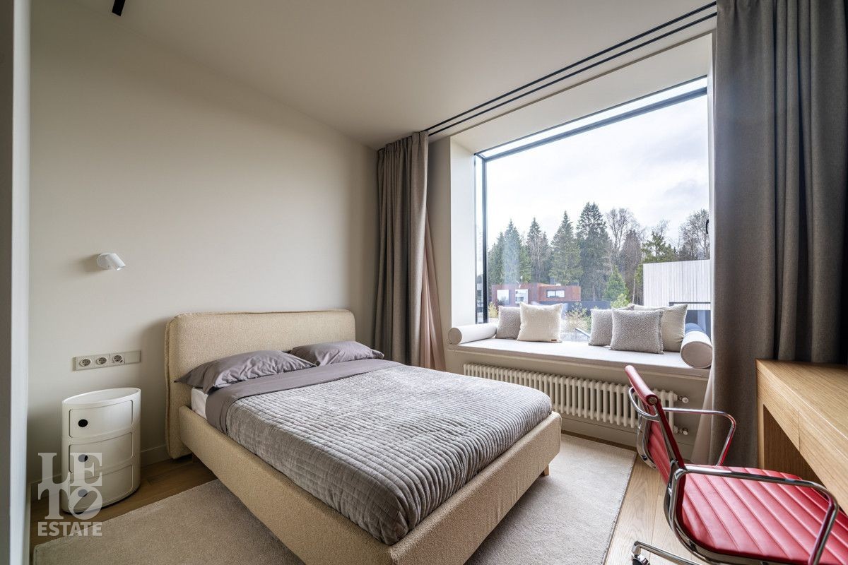 Особенностью дома является портальная раздвижная оконная система в гостиной и кухне-столовой, и панорамные окна на втором этаже в нескольких спальнях. Дом построен в стиле современного минимализма. Конструктив дома – монолитный каркас, фундамент – утепленная шведская плита, стены - газобетон. Котельная оснащена газовым и электрическим (резервным) котлом, датчиками протечки воды. Установлена приточно-вытяжная вентиляция.