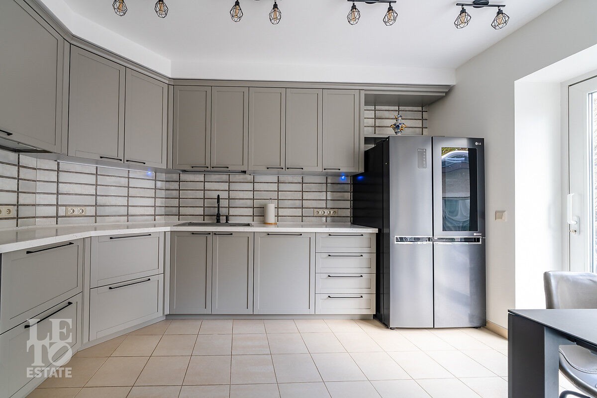 Просторная и полностью оборудованная кухня с техникой.