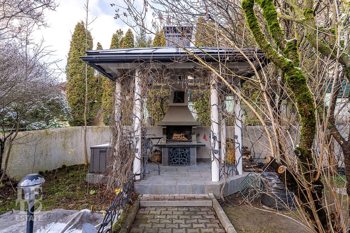 Зона Релаксации: Уютная беседка, оборудованная зона барбекю и живописный пруд с фонтаном.