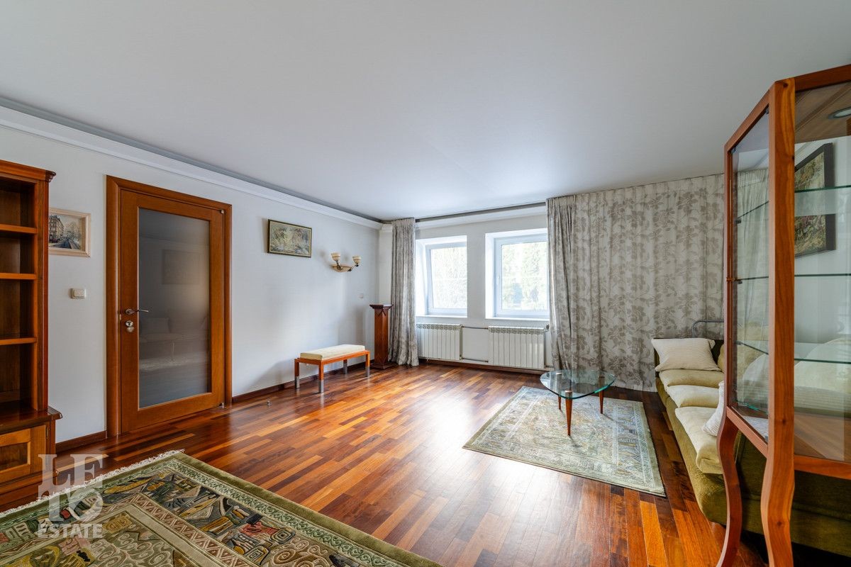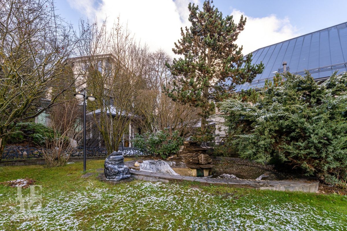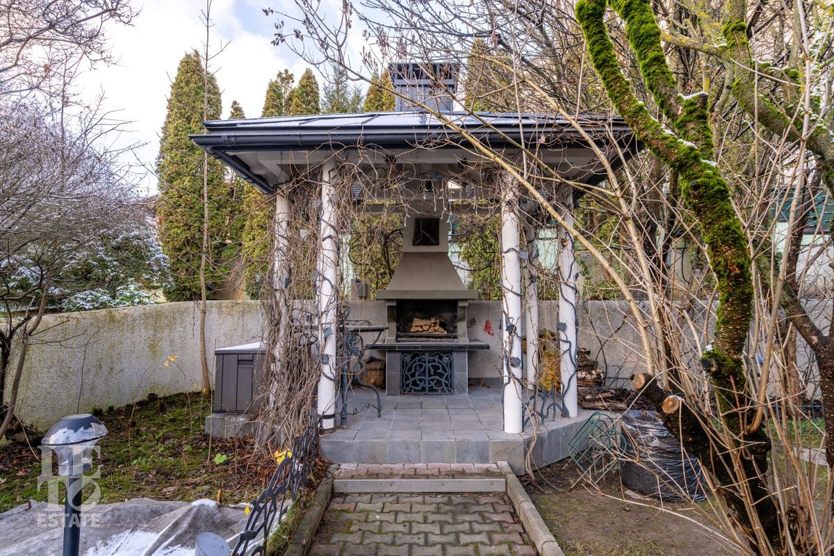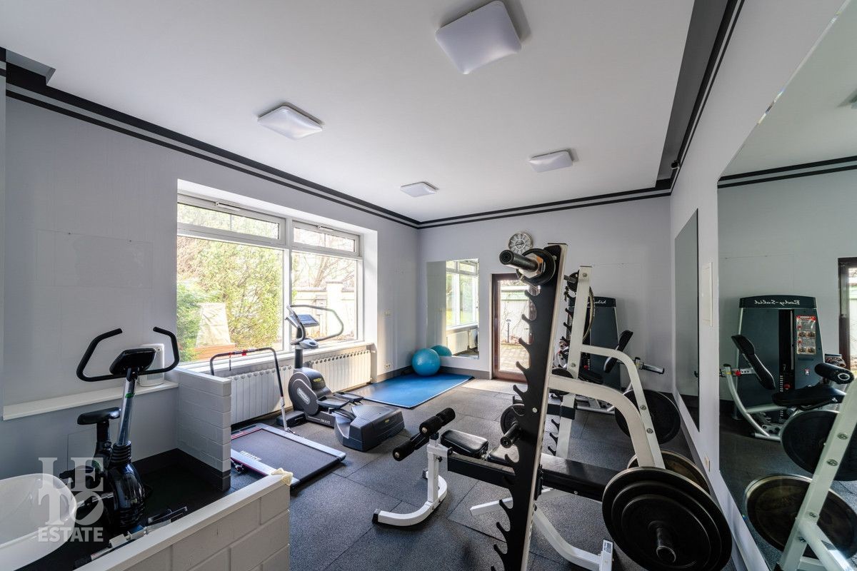 Участок площадью 29 соток – настоящий частный ботанический сад. Ландшафтный дизайн: продуманное, гармоничное озеленение с редкими растениями, привезенными из Московского Ботанического сада. Есть профессиональная площадка для игры в сквош прямо на территории. Уютная беседка, оборудованная зона барбекю и живописный пруд с фонтаном.