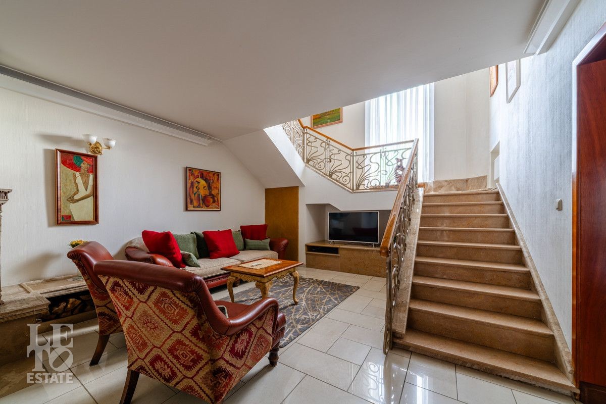 Погрузитесь в атмосферу уюта и безупречного качества в двухэтажном доме площадью 585 кв. м, который готов к немедленному заселению. В доме сделана потрясающая отделка. На крыше надежная фальцевая металлическая кровля. Использованы только лучшие материалы: окна от Schuco и черепица Braas на гостевом доме. Настоящее пространство для жизни - изысканный каминный зал для теплых вечеров. Тихая библиотека для уединения. Просторная и полностью оборудованная кухня с техникой.