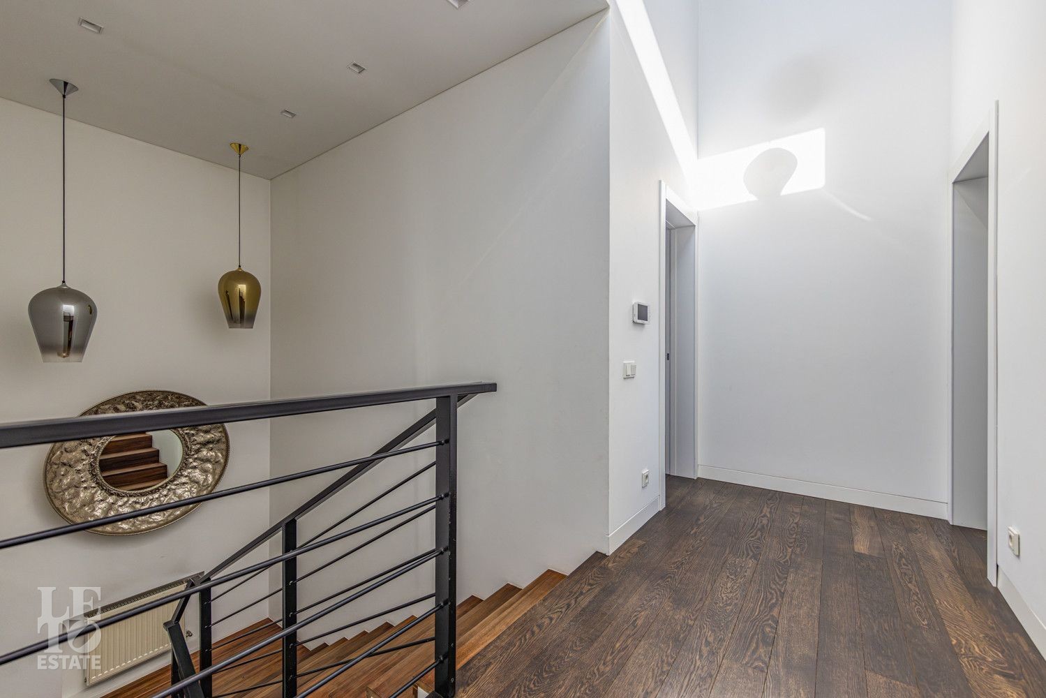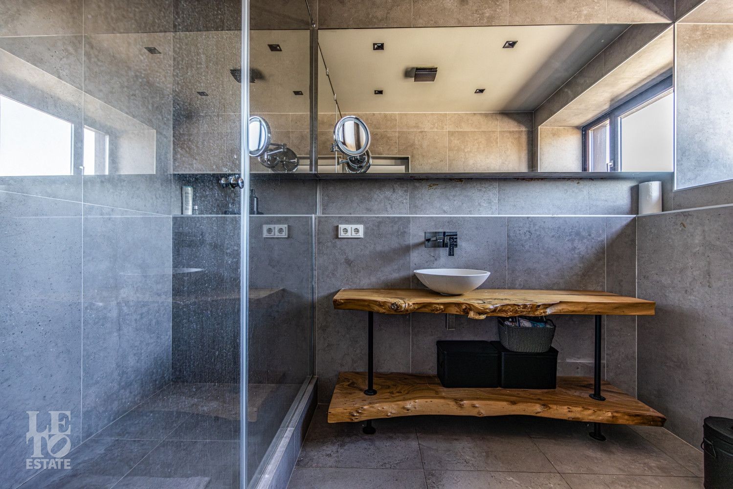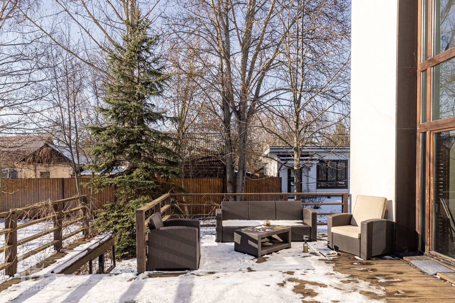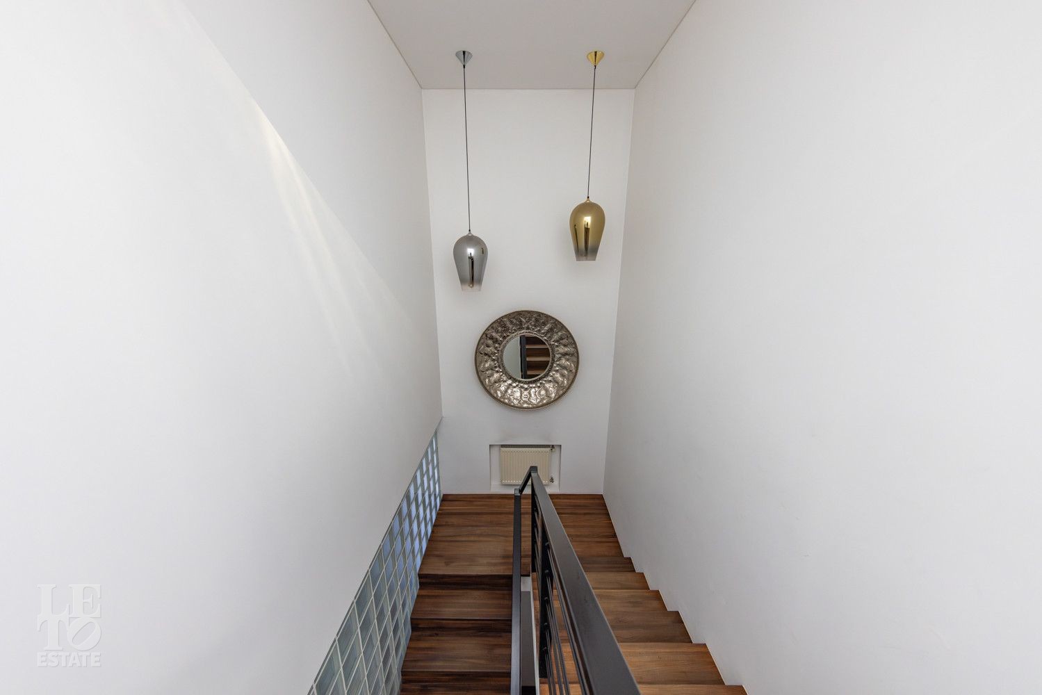 Выход на эксплуатируемую кровлю, которая застелена морской галькой. Так же на участке расположен гостевой дом под чистовую отделку , который легко можно переделать под спа зону и отдельный дом для персонала.