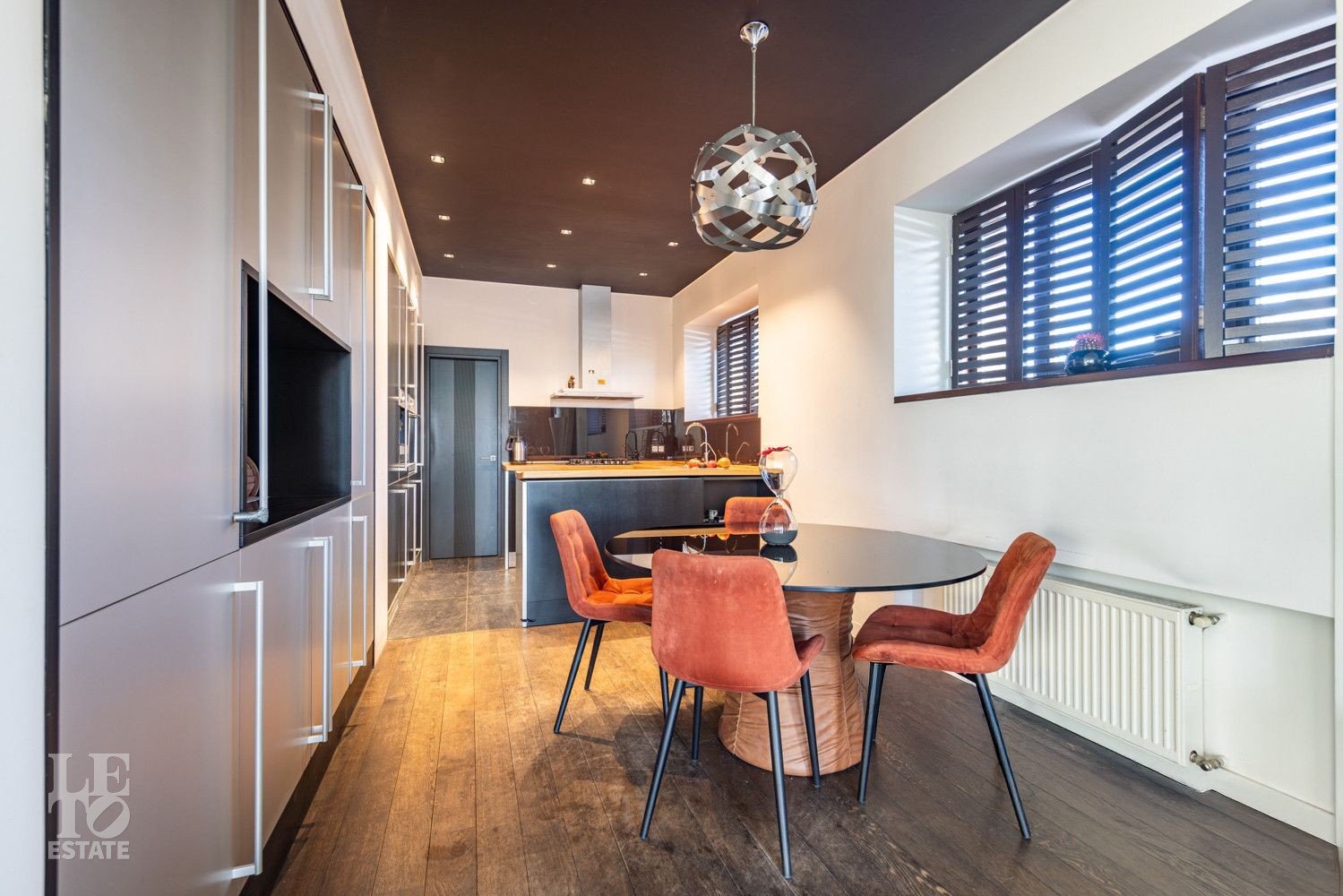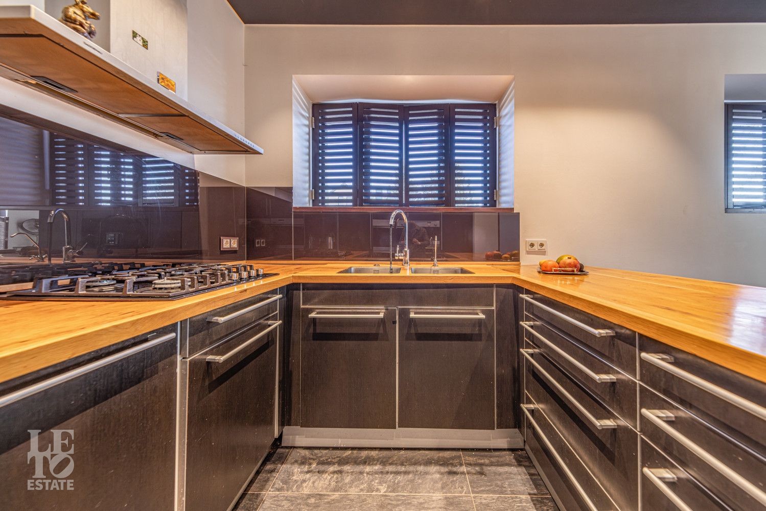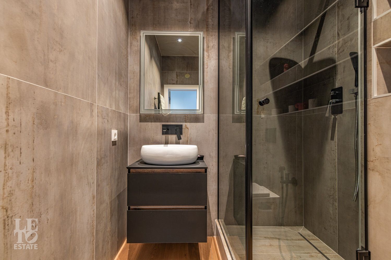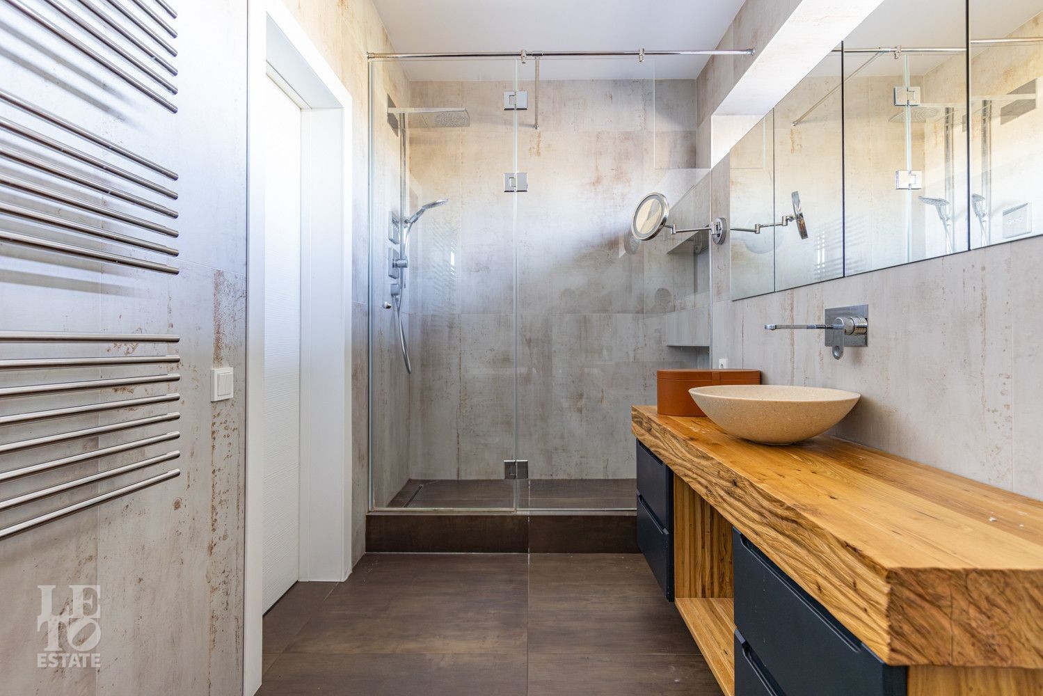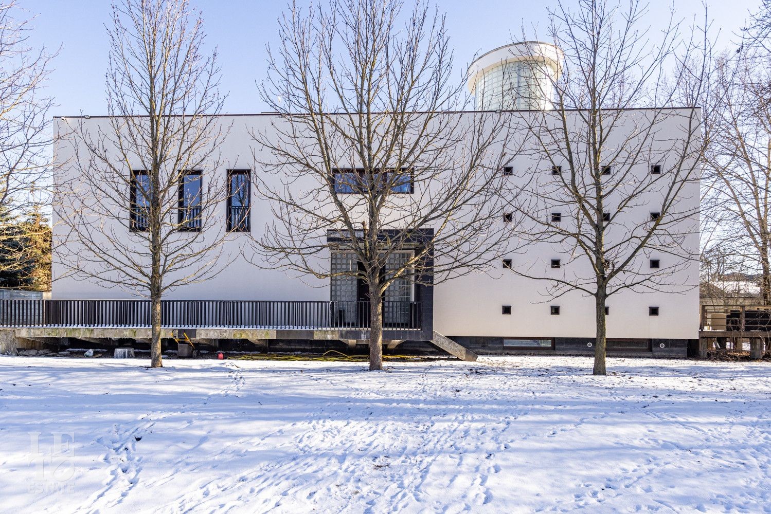 Выход на эксплуатируемую кровлю, которая застелена морской галькой. Так же на участке расположен гостевой дом под чистовую отделку , который легко можно переделать под спа зону и отдельный дом для персонала.