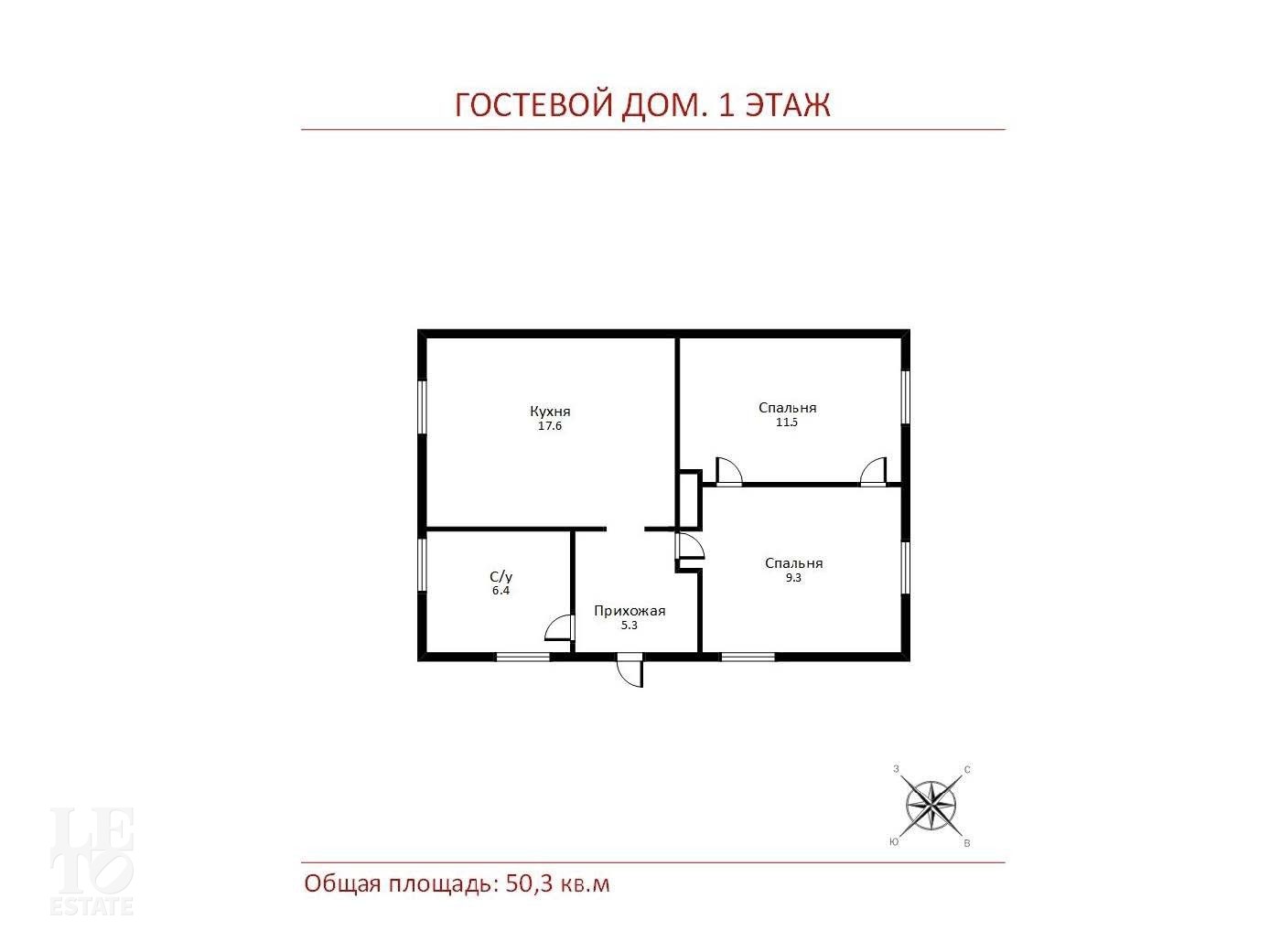 Гостевой дом: 2 спальни, кухня, санузел, прихожая.