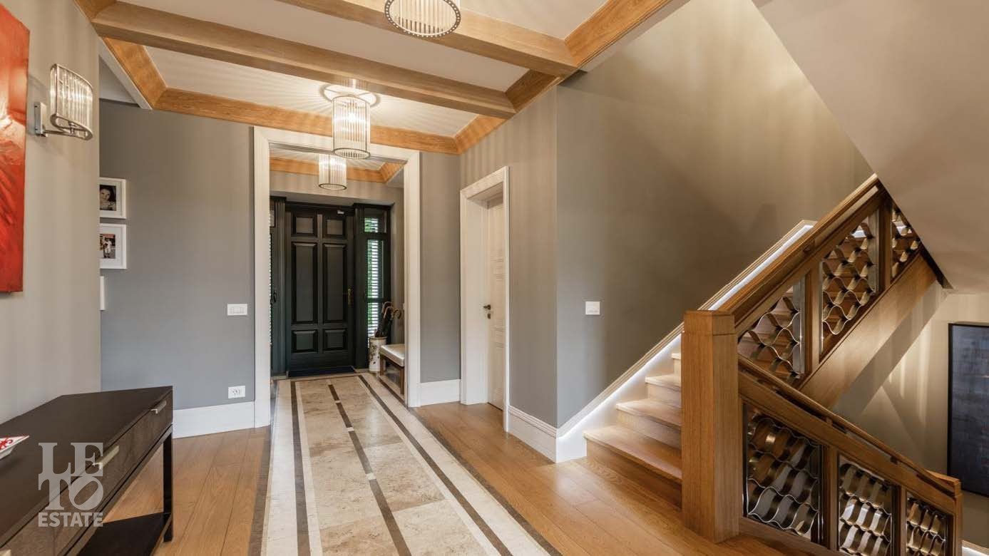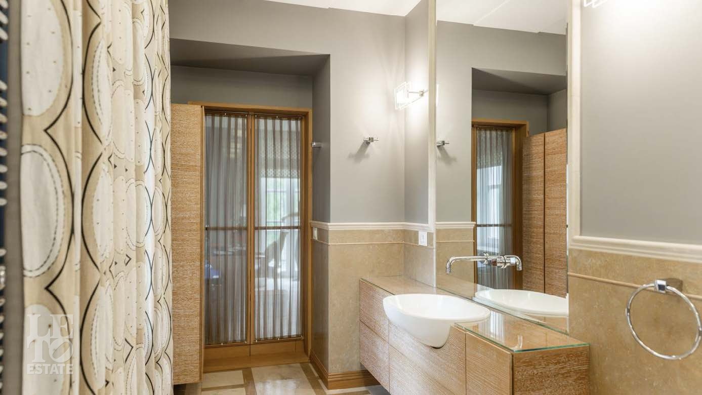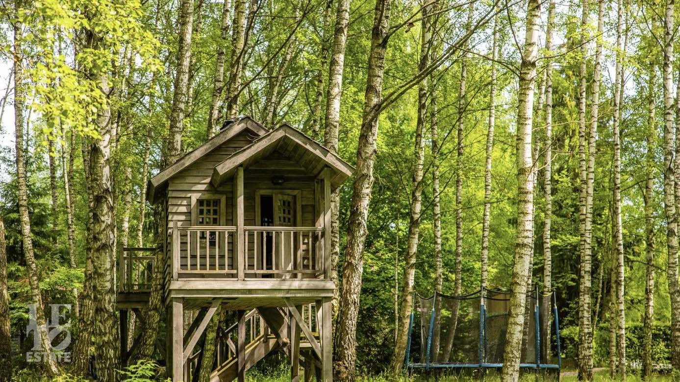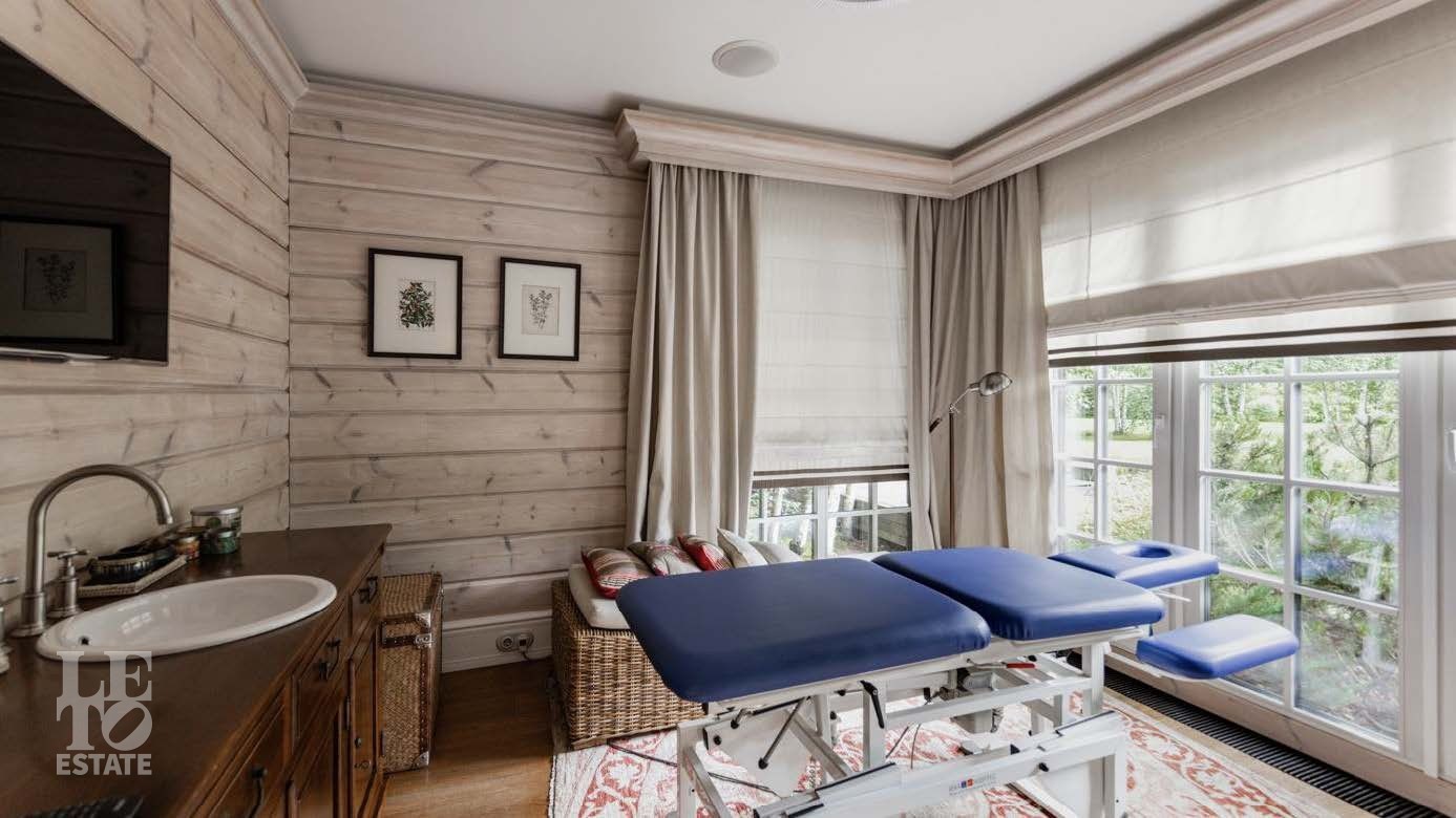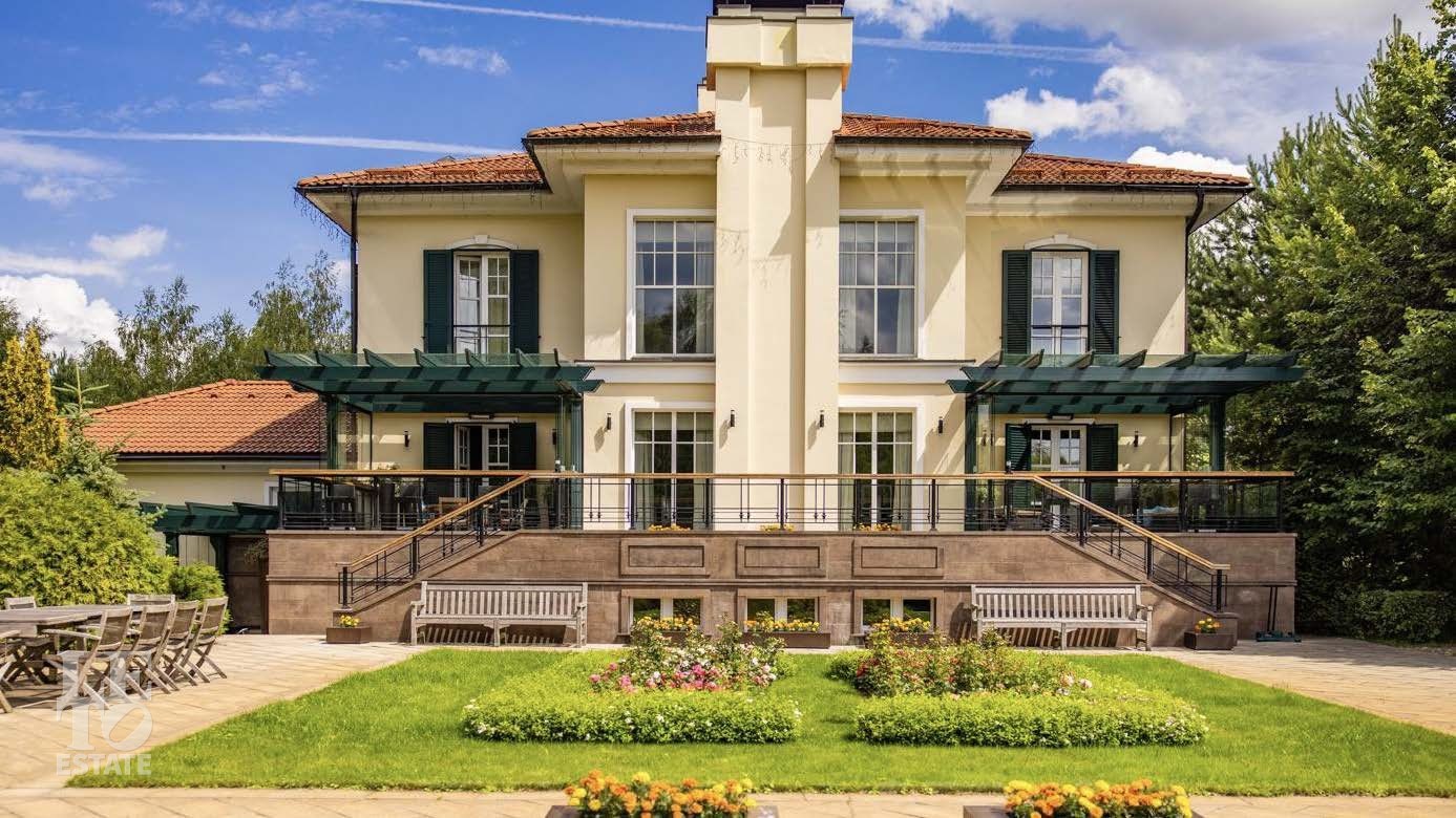 На территории в 2 гектара разбит полноценный парковый ансамбль с искусственными озерами, прогулочными аллеями и взрослыми хвойными деревьями. Аромат соснового леса и живописный ландшафт создают особую атмосферу. Здесь также находятся отдельно стоящий гаражный комплекс на 4 машино-места с блоком для персонала, гостевой дом и банный комплекс с дизайном в стиле альпийского шале.