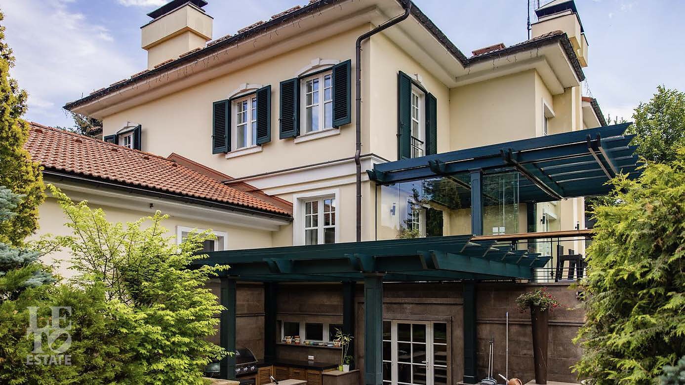 Архитектурный ансамбль включает два дома: один площадью 596 кв. м, другой — 480 кв. м. Они выполнены в стиле современной классики с использованием европейских материалов премиум-класса. Интерьеры отличаются лаконичным дизайном в спокойной палитре. Каждая деталь продумана до мелочей: от индивидуально спроектированной мебели до тщательно подобранных текстур.