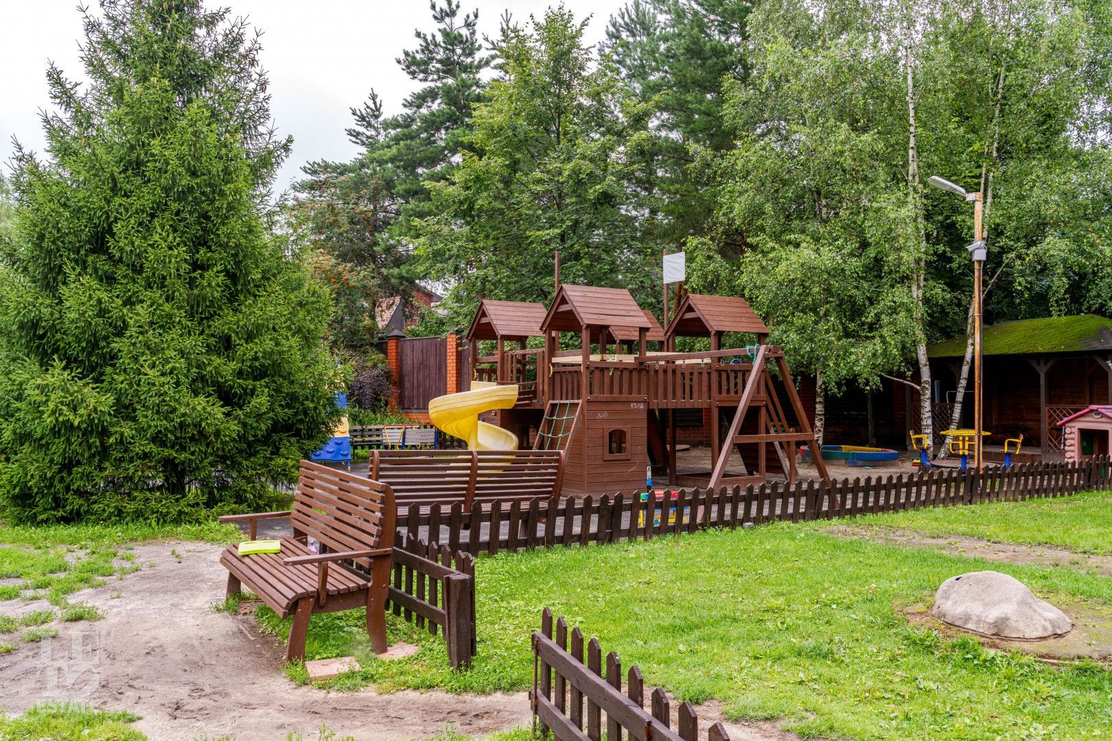 Красивый просторный участок площадью 34 сотки с ландшафтным дизайном, взрослыми деревьями и кустарниками. На участке сделаны дренаж и система автополива.