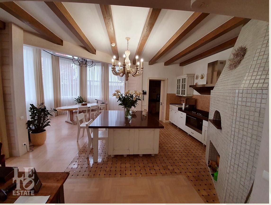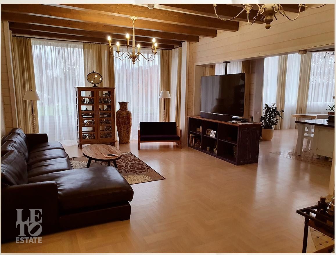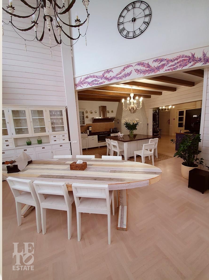 Площадь основного дома составляет 500 кв. м, а гостевого дома - 300 кв. м. Гараж на 4 автомашины.