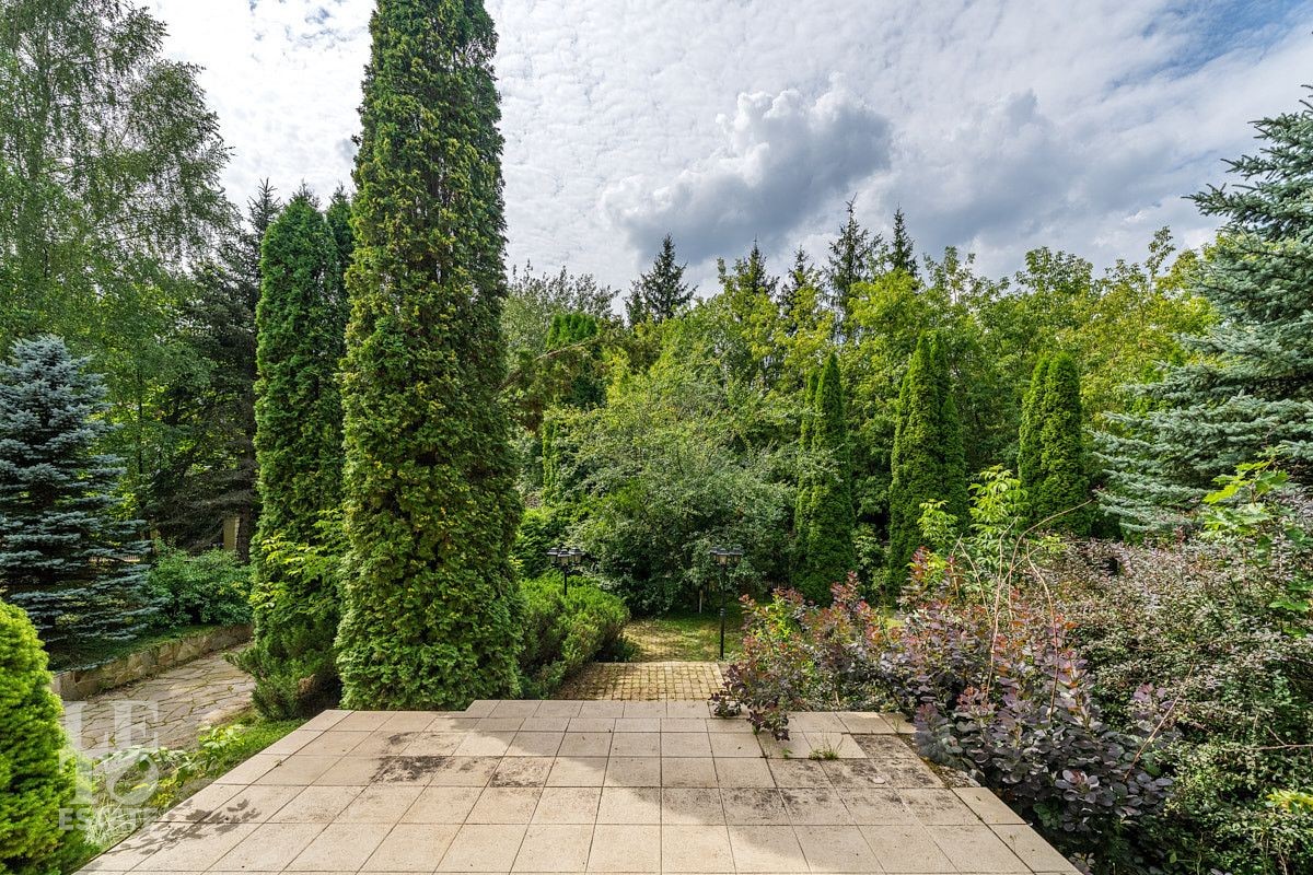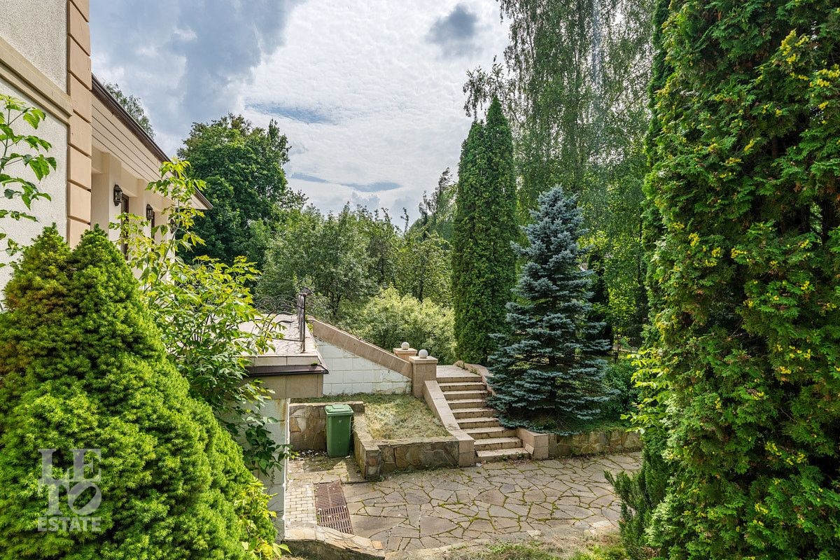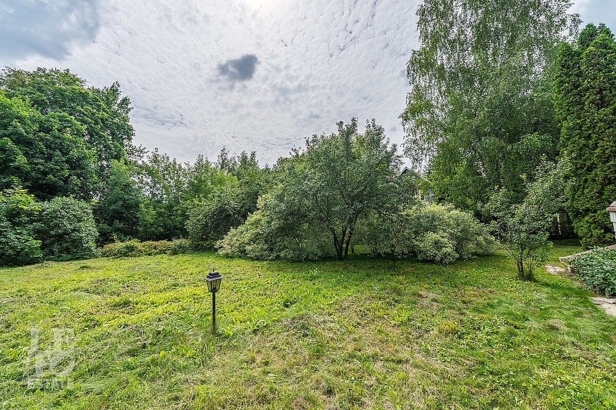 На участке правильной формы выполнен ландшафтный дизайн, вымощены дорожки, сделано освещение, растут плодовые деревья и кустарники, высажены голубые ели и туи. Перед домом организована площадка для стоянки трех автомобилей, а также напротив ворот участка имеется гостевая парковка на три авто.