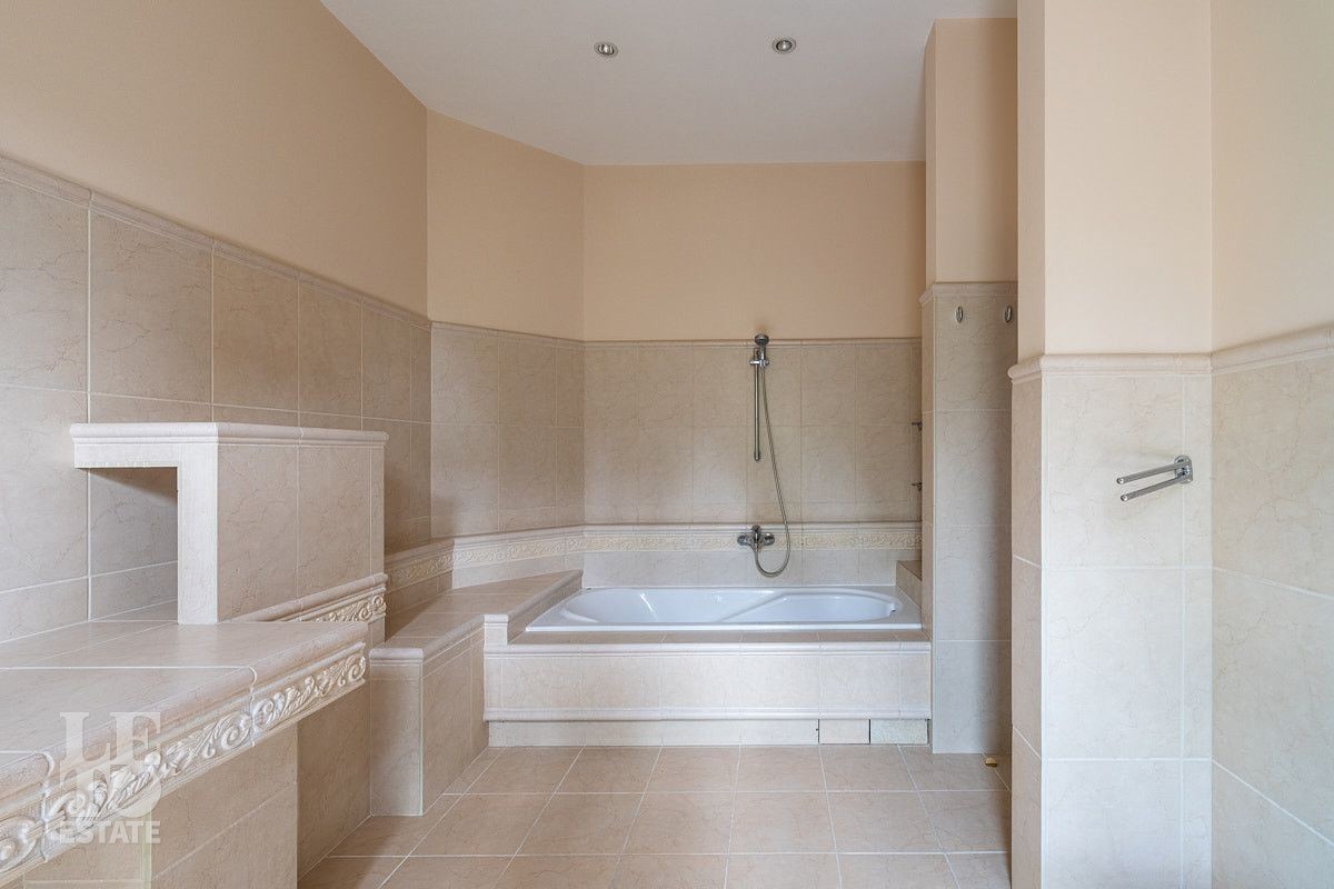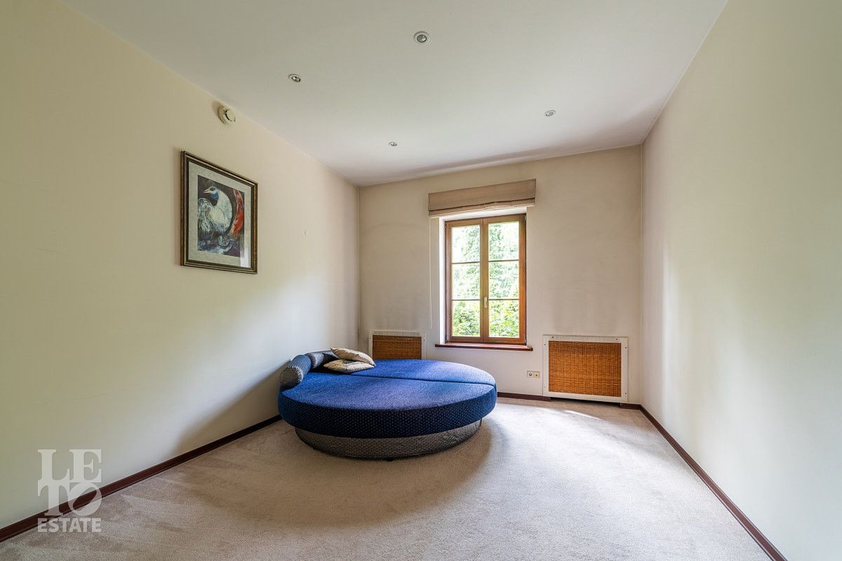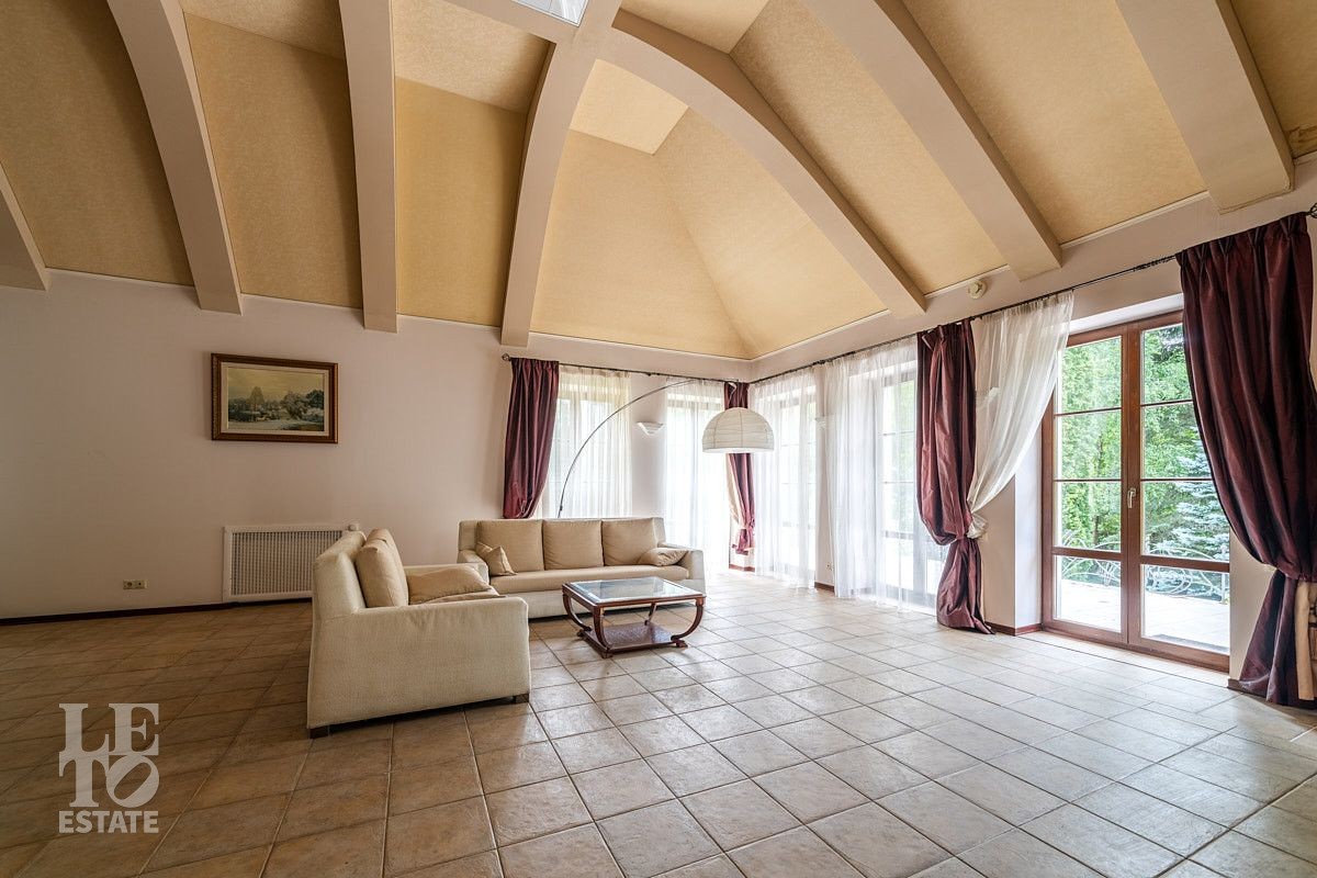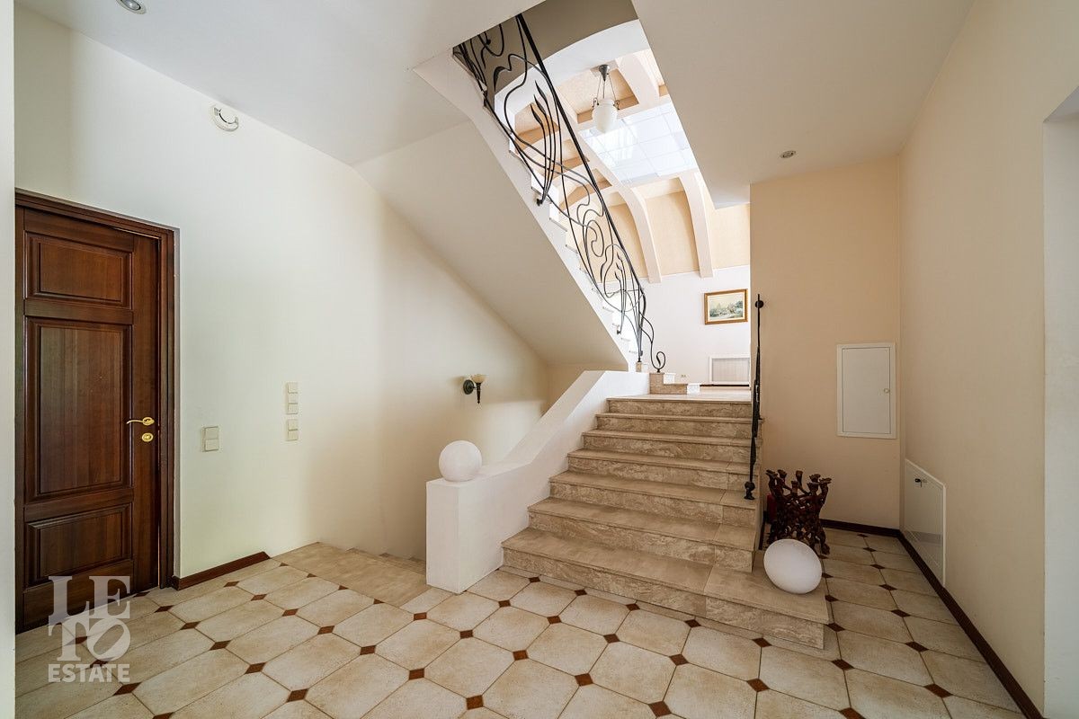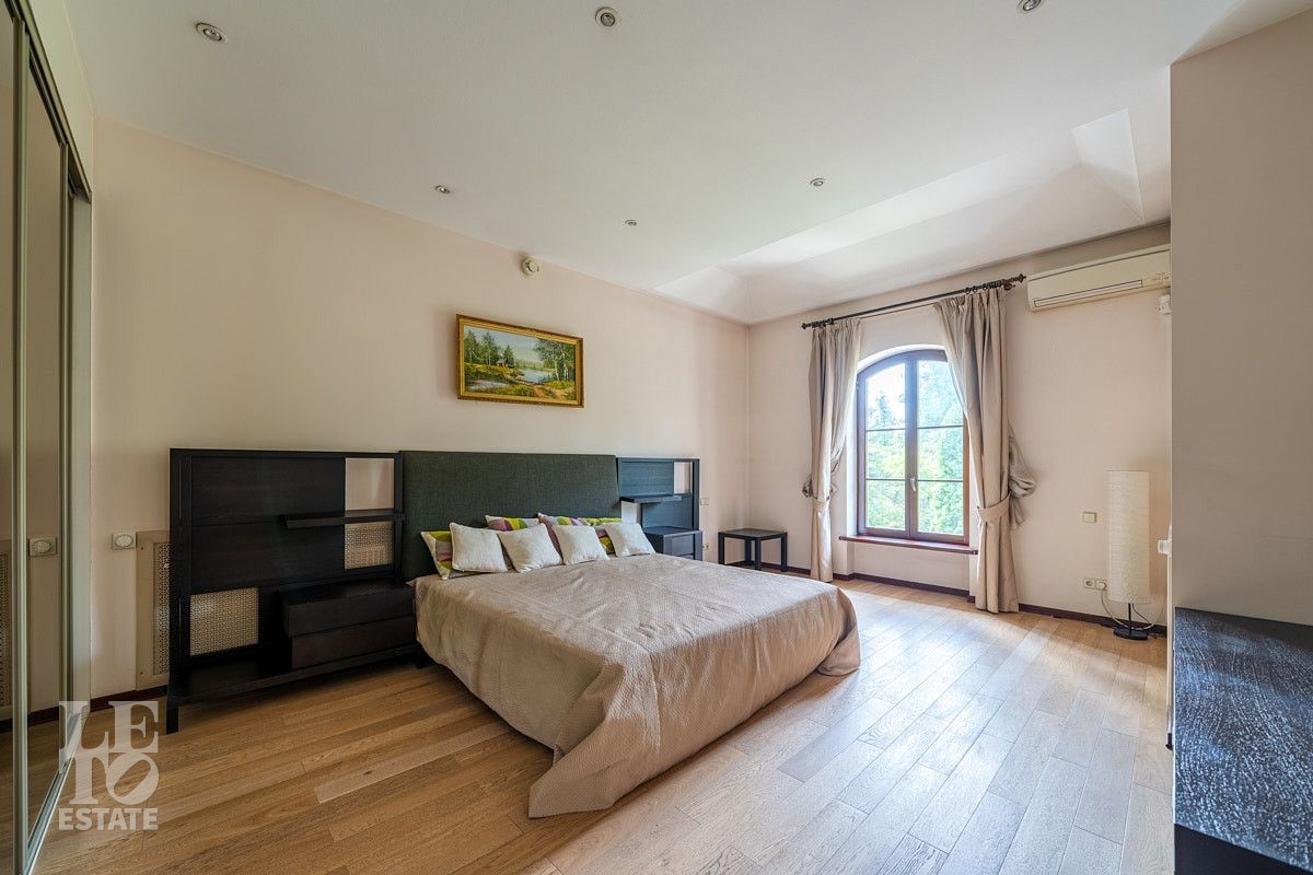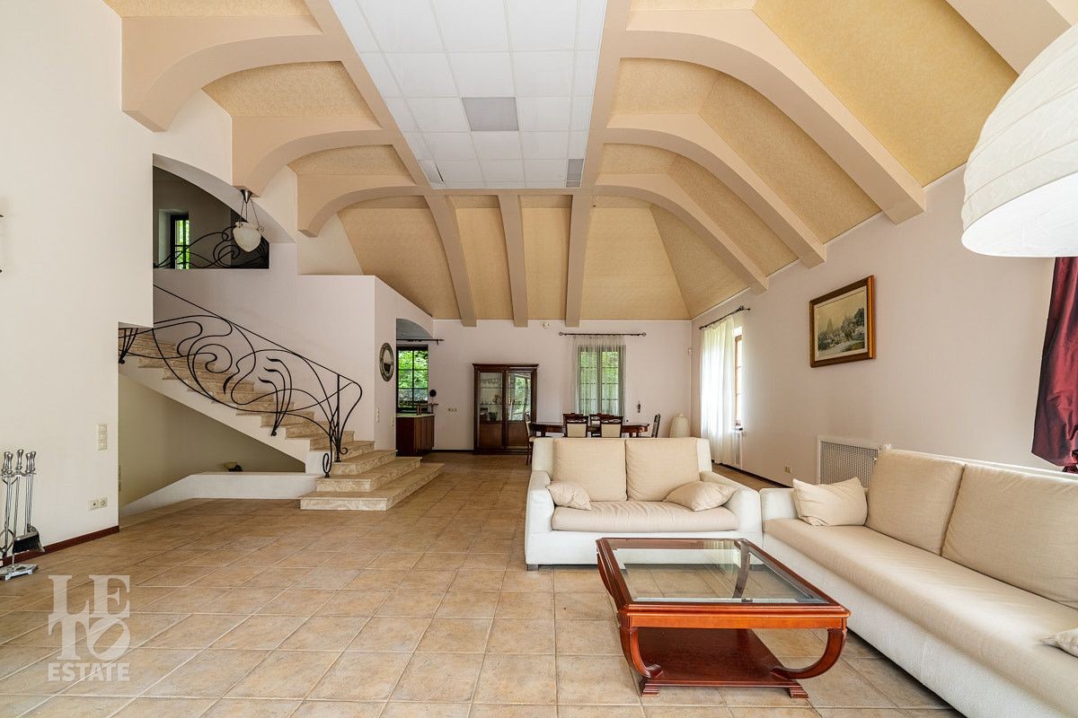 Во внутренней отделке использованы качественные дорогие материалы, ремонт выполнен в классическом стиле, дом продается полностью укомплектованным мебелью и техникой. Просторная гостиная с высоким потолком и дровяным камином, благодаря большим окнам, наполняется солнечным светом, а также имеет выход на террасу, где можно наслаждаться свежим воздухом. Также важно отметить наличие двух спален и кабинета на первом этаже дома.