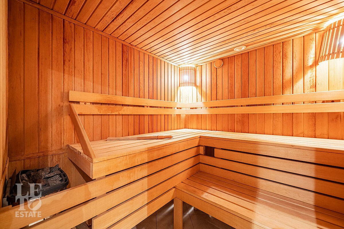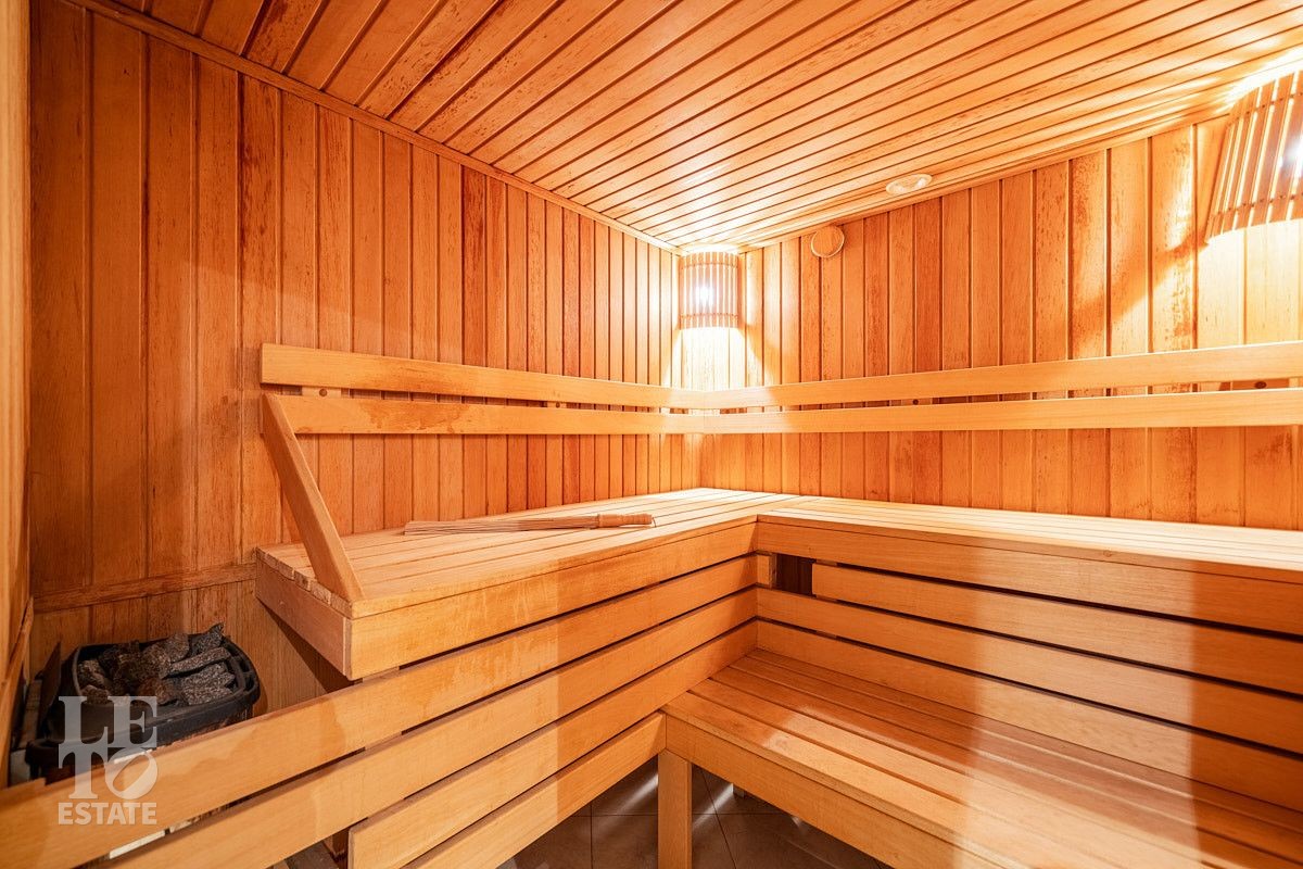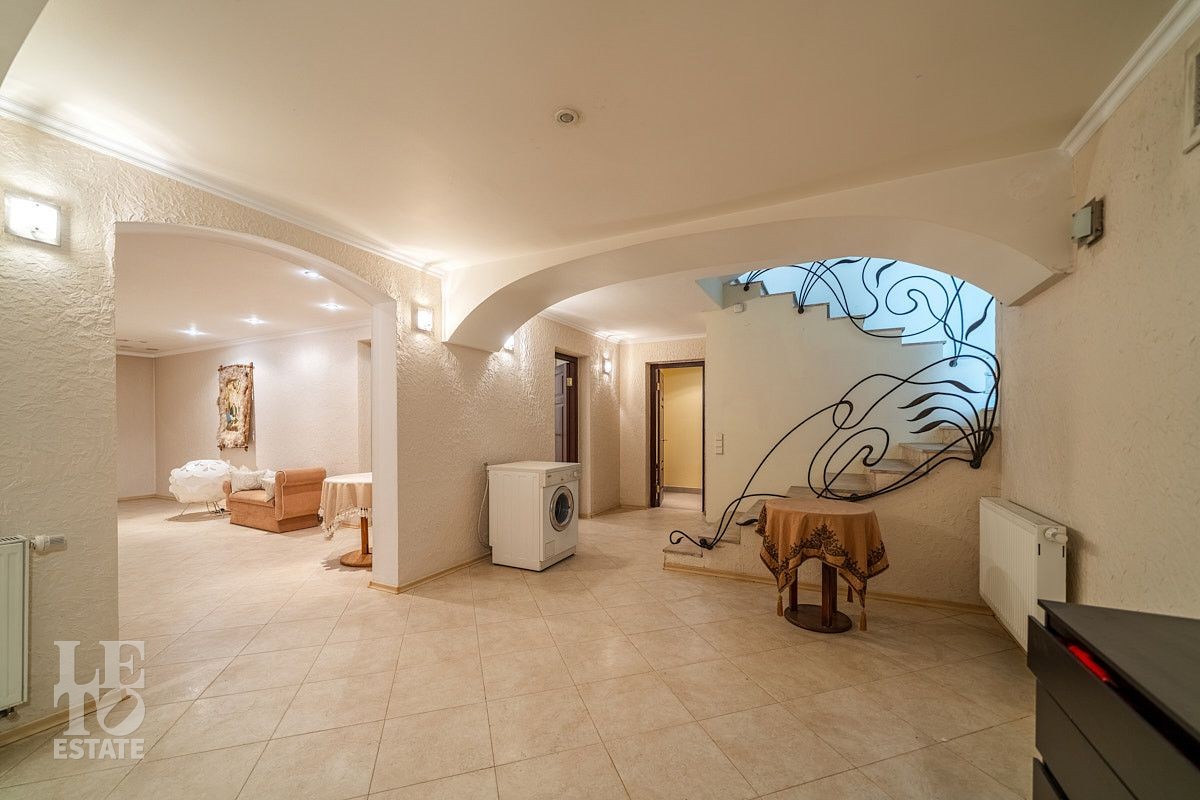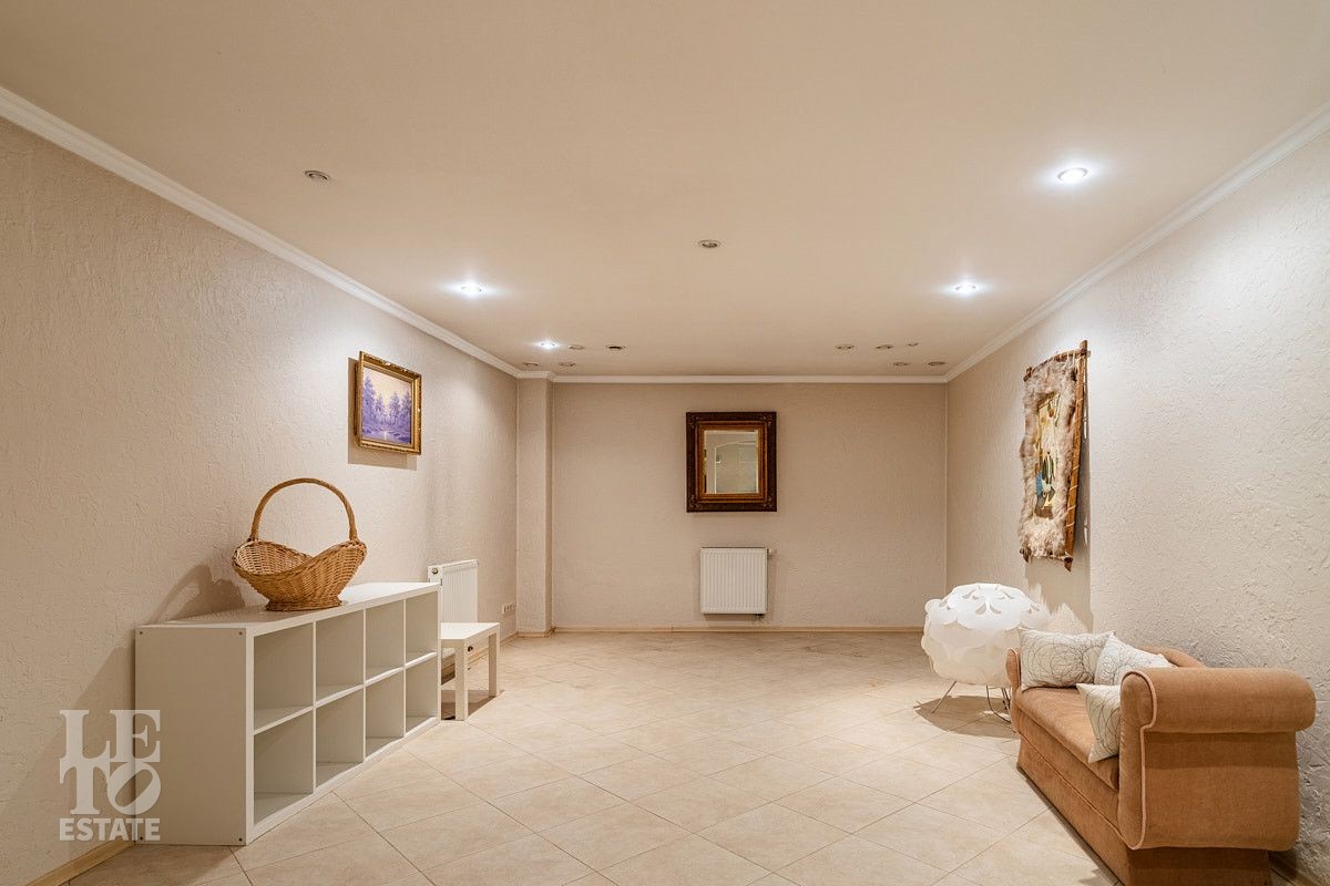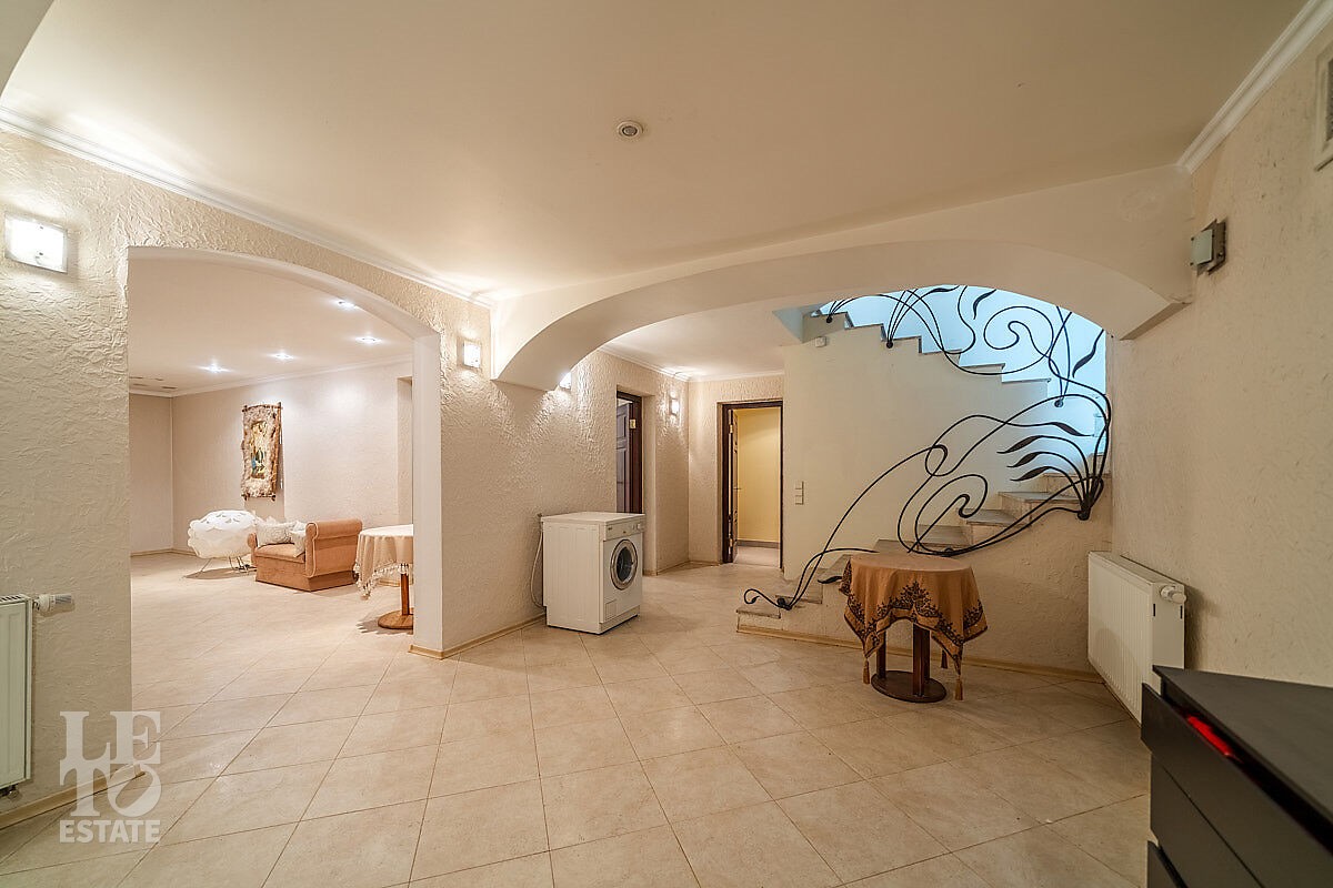 Цокольный этаж предложит вам провести досуг с семьей или гостями. Здесь вы найдете финскую сауну Harvia, комнату отдыха, душевую, санузел. Это пространство идеально подходит для отдыха и расслабления после долгого дня. Также в цокольном этаже расположились котельная и постирочная.