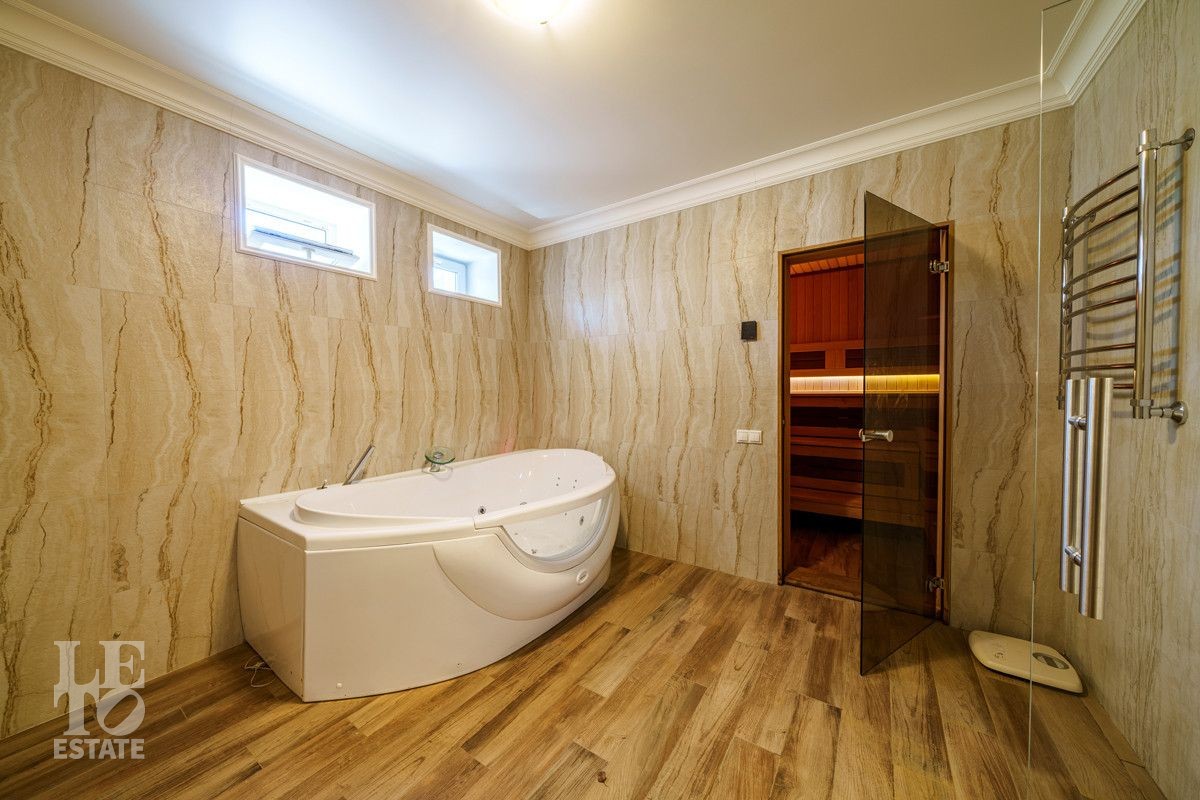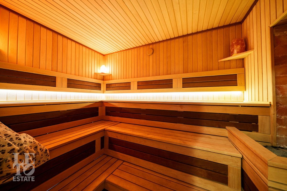 Приятным дополнением служит SPA-зона с электрической сауной от фирмы Harvia. Во внутренней отделке сауны использованы экологически чистые породы деревьев – ясень и липа. Установлена технологичная ванна с системой точечного гидромассажа.