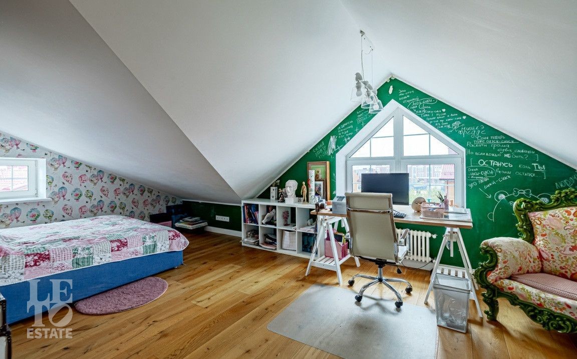 Мансардный этаж: две спальни, каждая с санузлом и гардеробной.