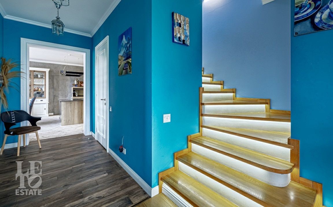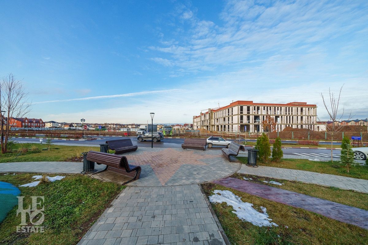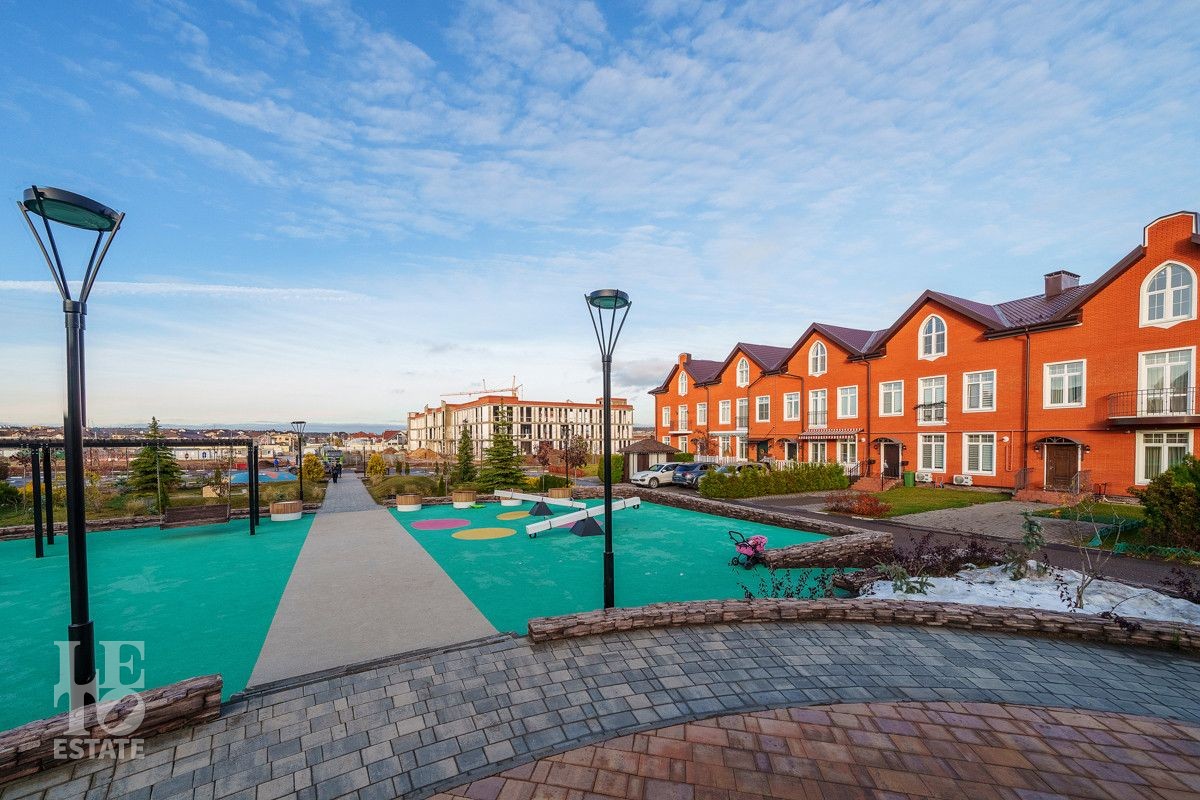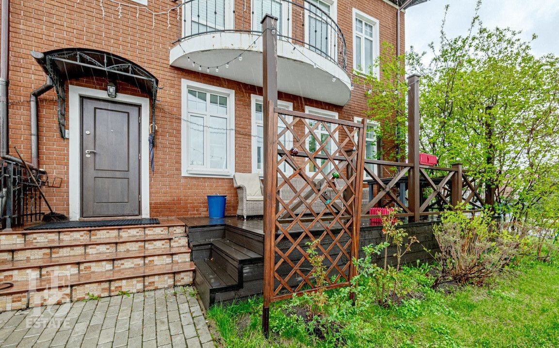 На участке выполнен ландшафтный дизайн, растут плодовые деревья, кустарники, выстелен газон. Есть открытая терраса и 4 парковочных места.