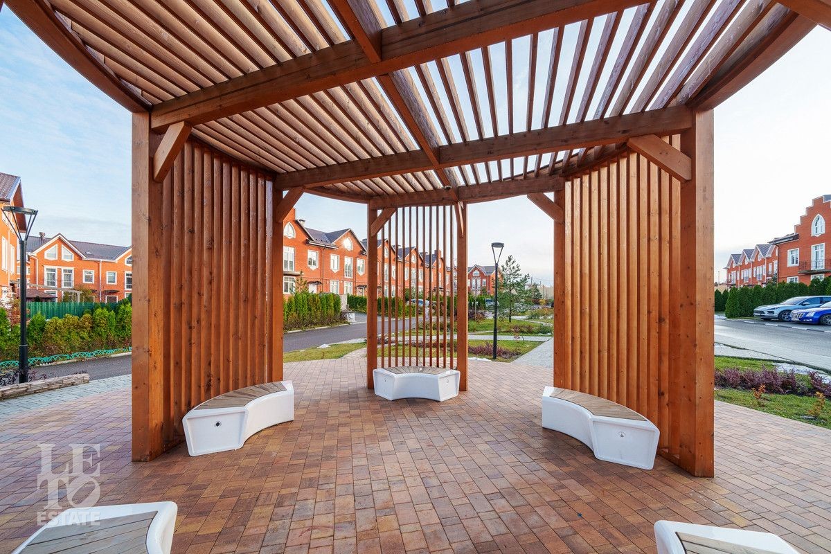 Светлая готическая архитектура с высокими шпилями и стрельчатыми арками создает величественный и уютный облик поселка. Фасады, сохраняющие единый стиль застройки, придают поселку характер и уникальность.