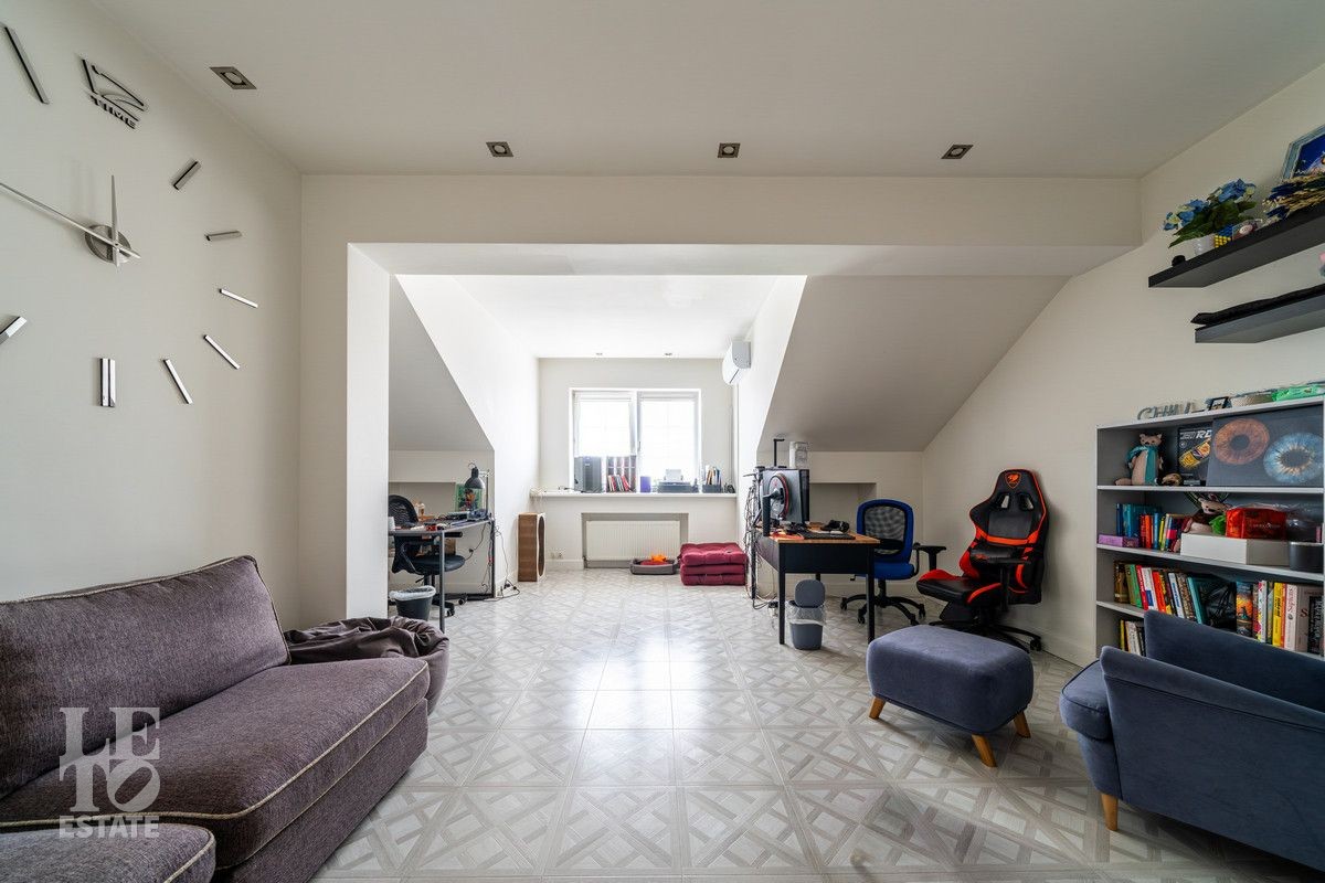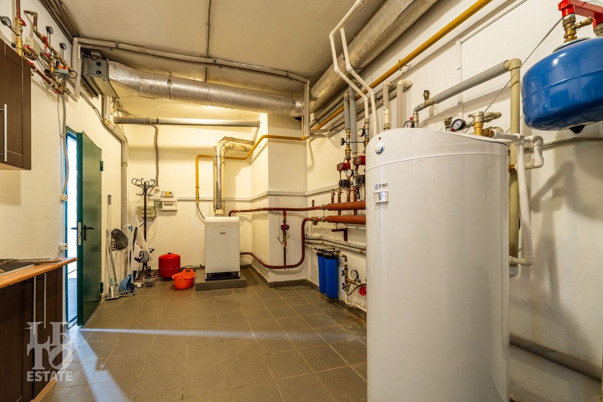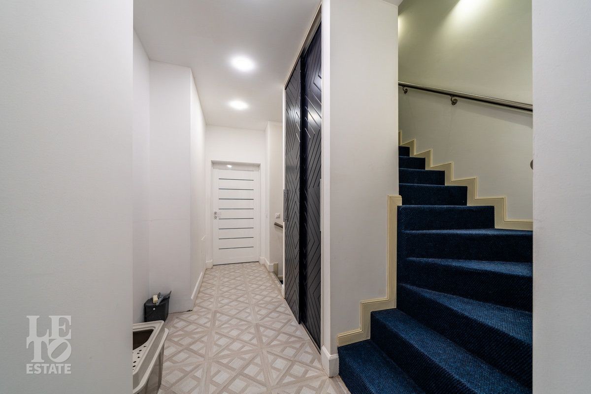 В доме выполнена качественная отделка "под ключ", имеется вся необходимая мебель и техника для комфортного проживания. В доме удобная планировка, на первом этаже вам обязательно понравится просторная кухня-гостиная с выходом на участок. Второй этаж занимают две спальни, на мансардном этаже расположилась просторная мастер-спальня с большой гардеробной и собственным санузлом. В цокольном этаже помещение для спорта или отдыха, кладовые и постирочная, котельная с отдельным входом, оснащенная современным инженерным оборудованием: мощный напольный газовый котел, большой бойлер для воды, насосные группы Grundfos. Во всем доме есть центральная система приточно-вытяжной вентиляции и кондиционирования.