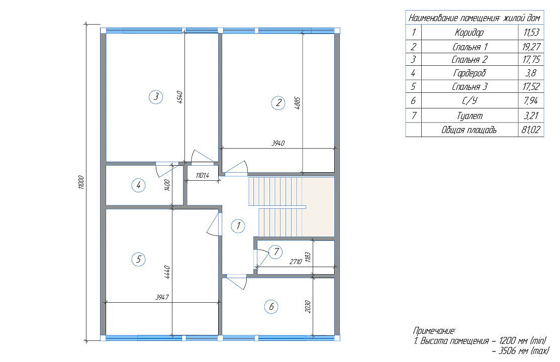 Первый этаж: Прихожая, кухня, гостиная-столовая, спальня, санузел, котельная, терраса;