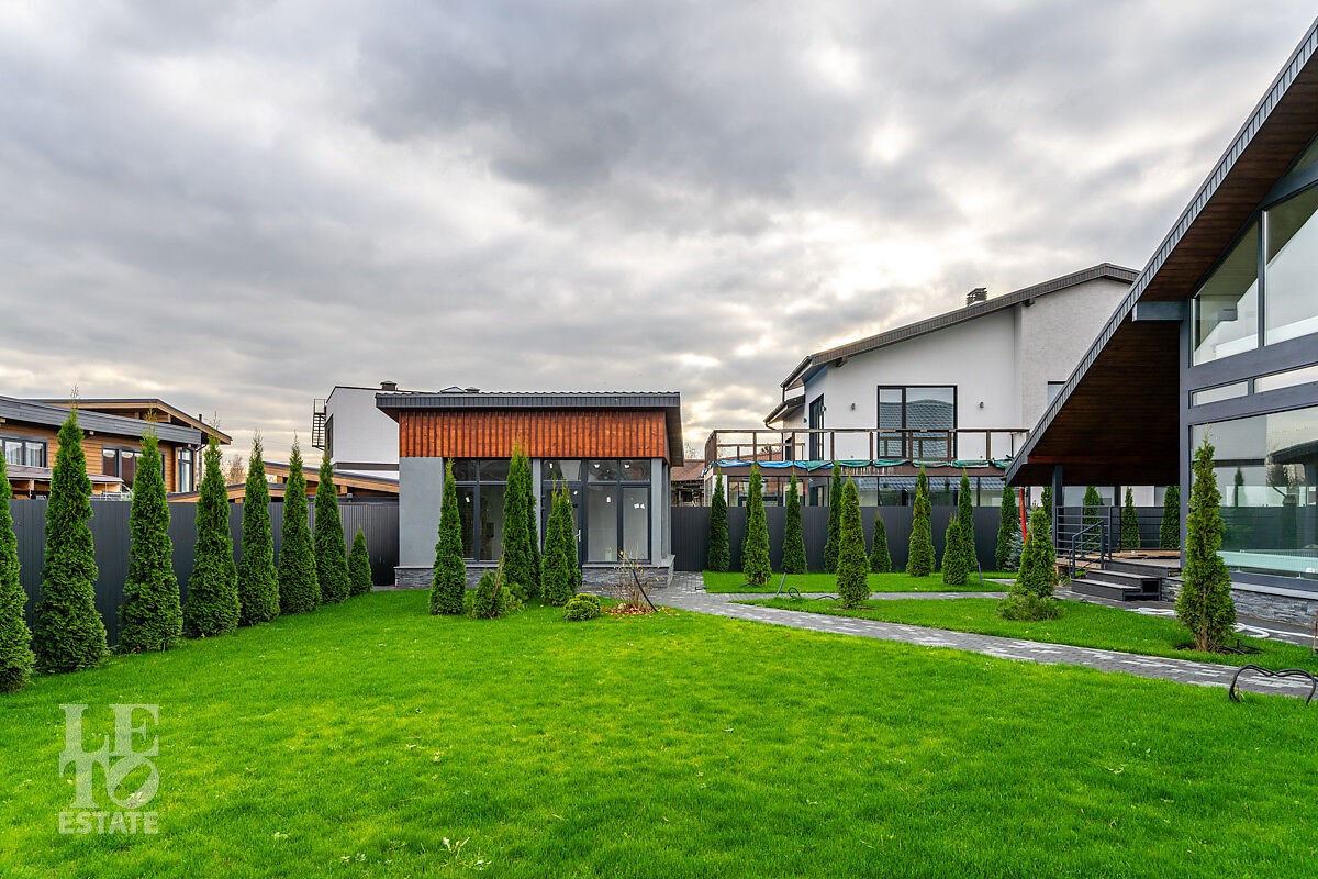На участке выполнены ландшафтные работы, предусмотрена всепогодная беседка с барбекю зоной, построен отдельно стоящий гараж.